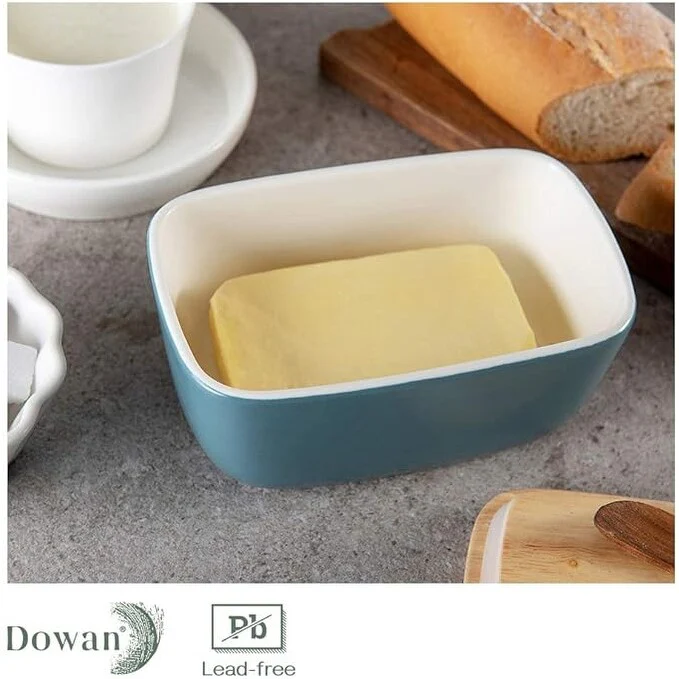 • DOWAN 6.5" Large Butter Dish - Ceramic Butter Dish with Lid, Haze Blue