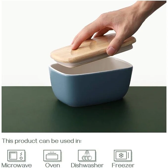 • Upgraded Wood Lid - The butter dish with a lid helps keep your butter fresh in the refrigerator without mixing other food tastes and will snap closed for odors, you can easily take off the silicone seal ring for better cleaning or replace it.