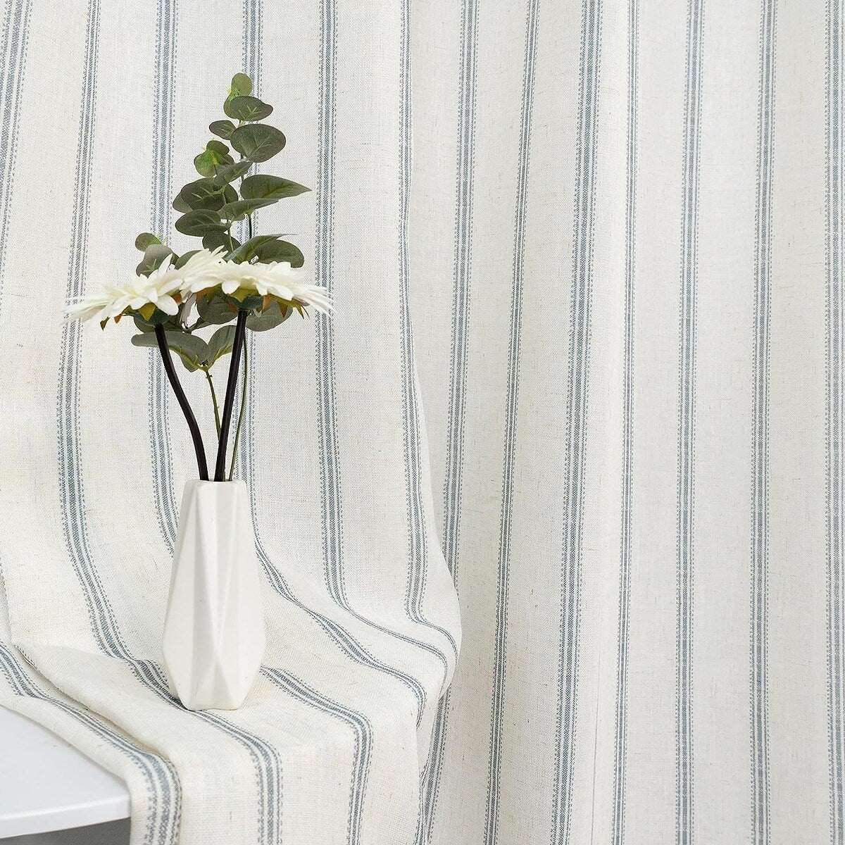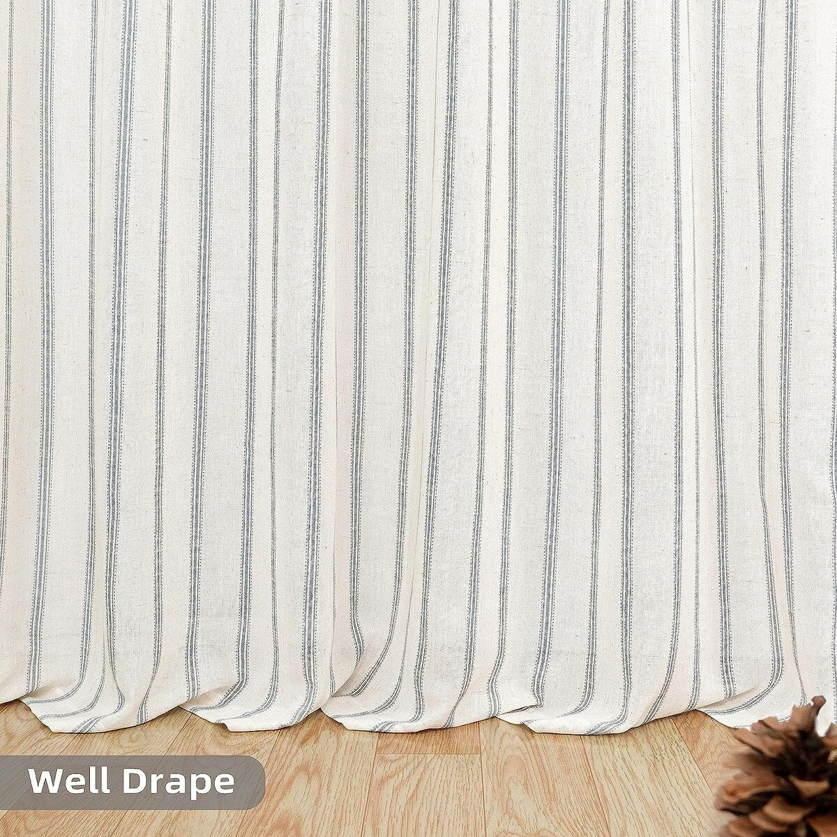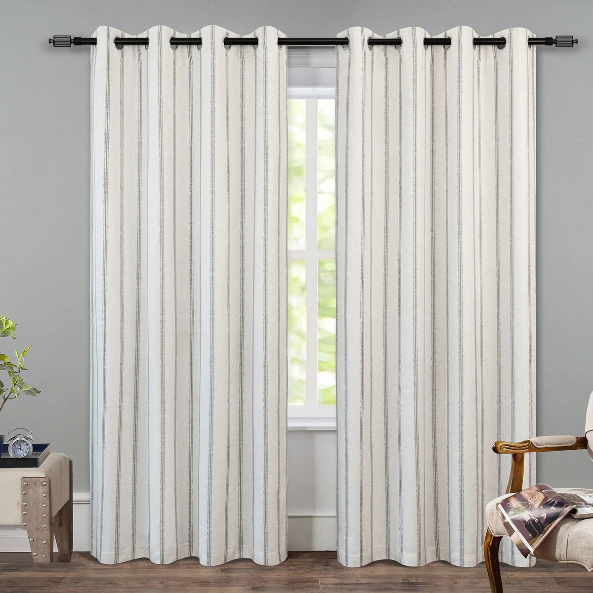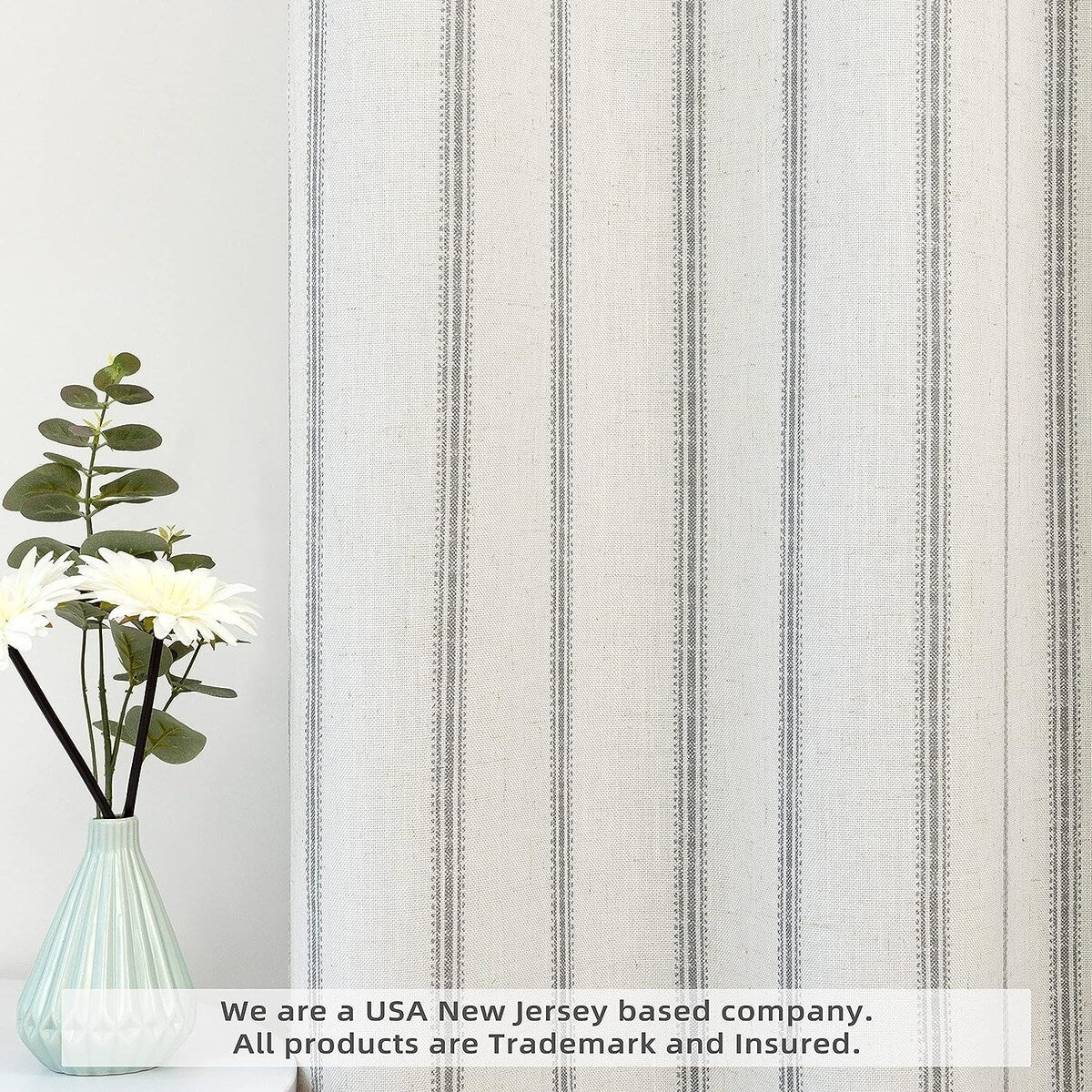 - DESIGN & STYLE: The vertical gray striped pattern window panels have a classic and elegant design, match both room color and your customized home styles, fit well for modern / antique / contemporary / trendy home decor. The linen blended fabric and simple patterns will give your window a graceful vintage look, enhance the taste of your house. Airy & Privacy: The line weave makes curtains more draped and aesthetic. Linen textured curtain creates lightweight, airy, and peaceful look, adds texture, flair and ambiance to any style of your home by allowing soft sunlight to flow through while also providing basic privacy protectio