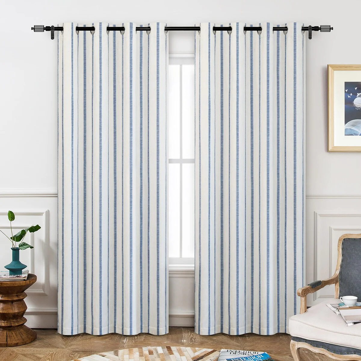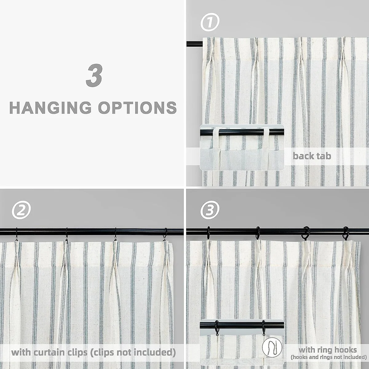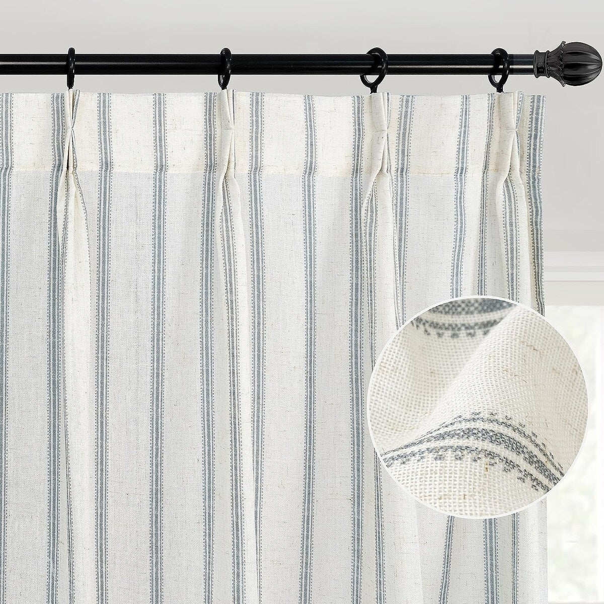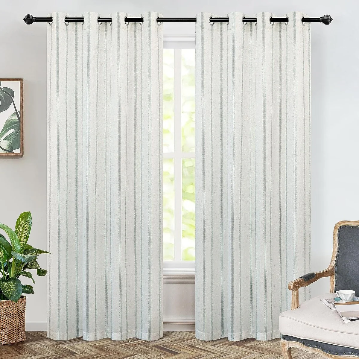 - DESIGN & STYLE: The vertical gray striped pattern window panels have a classic and elegant design, match both room color and your customized home styles, fit well for modern / antique / contemporary / trendy home decor. The linen blended fabric and simple patterns will give your window a graceful vintage look, enhance the taste of your house. Airy & Privacy: The line weave makes curtains more draped and aesthetic. Linen textured curtain creates lightweight, airy, and peaceful look, adds texture, flair and ambiance to any style of your home by allowing soft sunlight to flow through while also providing basic privacy protectio