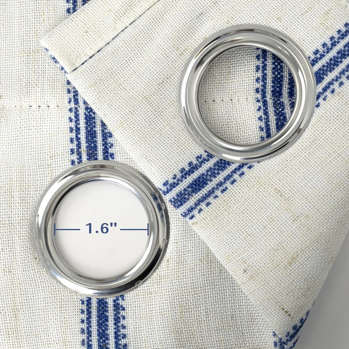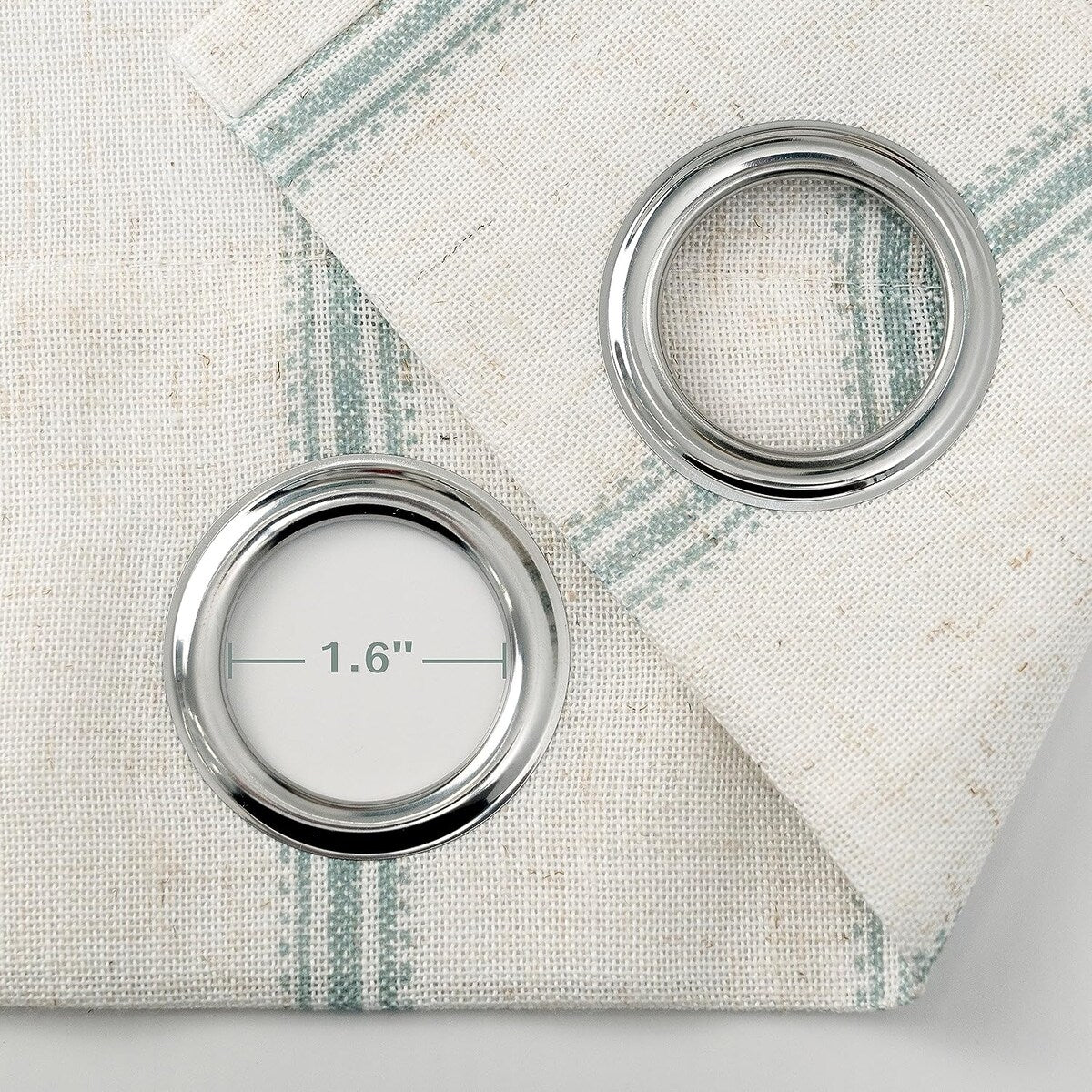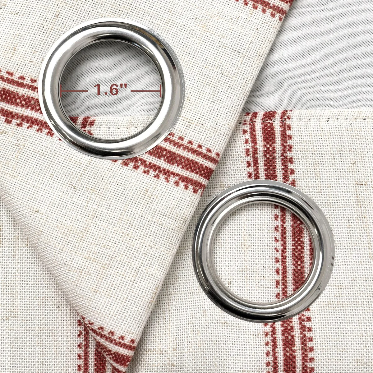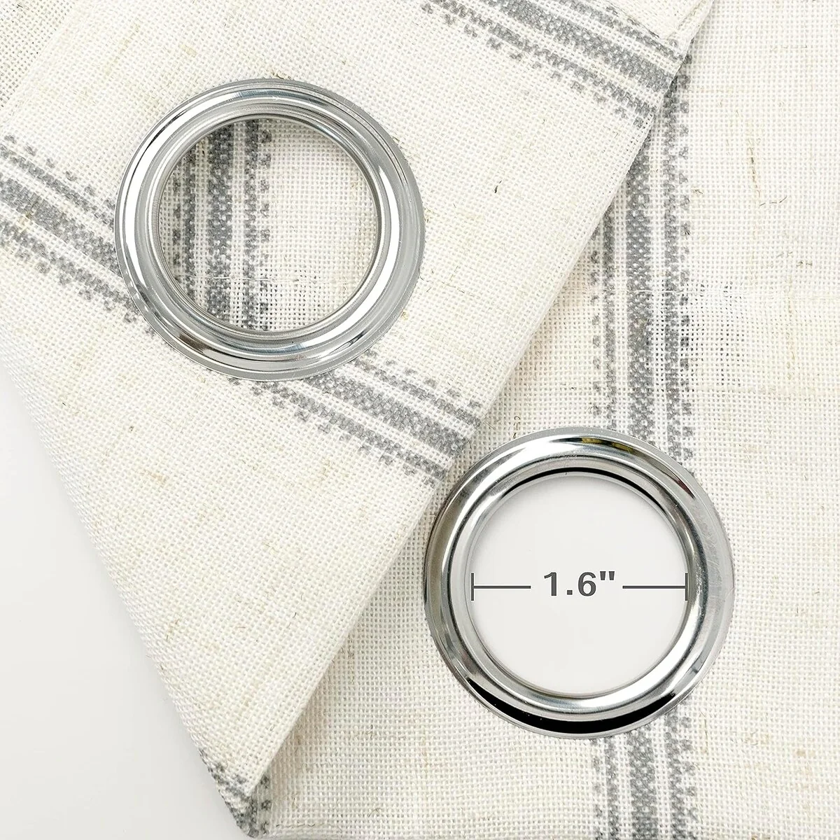 - SIZE & HEADER TYPE: 52"W X 84"L. Extremely strong silver metal grommets slides easily onto your curtain rod for quick installation. There are 8 grommets in the window treatment header of each panel. Outside diameter of each eyelet is 5.8cm (2.3'') and inside diameter of that is 4cm (1.6''), which perfectly accommodate up to 1.5'' curtain rod.n. Keep your spaces bright and cheerful without worrying about visibility from outside.