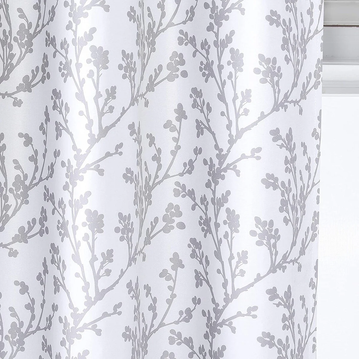 • DESIGN AND STYLE: The design pattern of the curtain is very lovely and elegant. Small flowers on tree branches will conjure up your throughs of wild nature. To make the pattern look more elegant and graceful, we use gray color to neutralize the lovely feeling of the design.