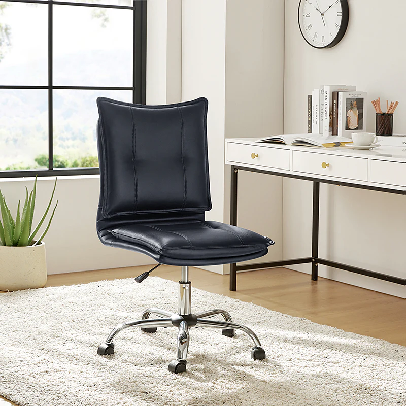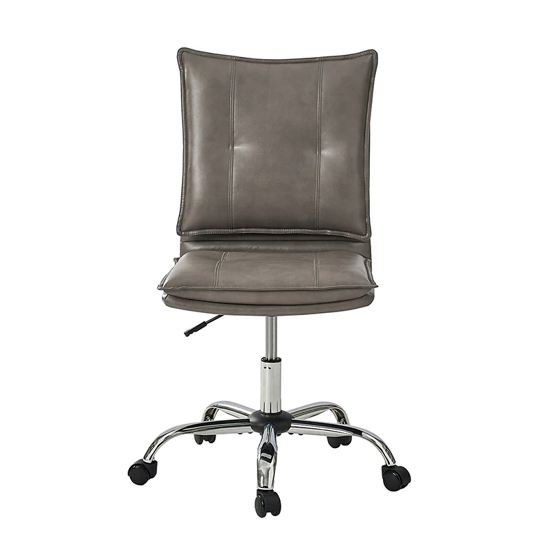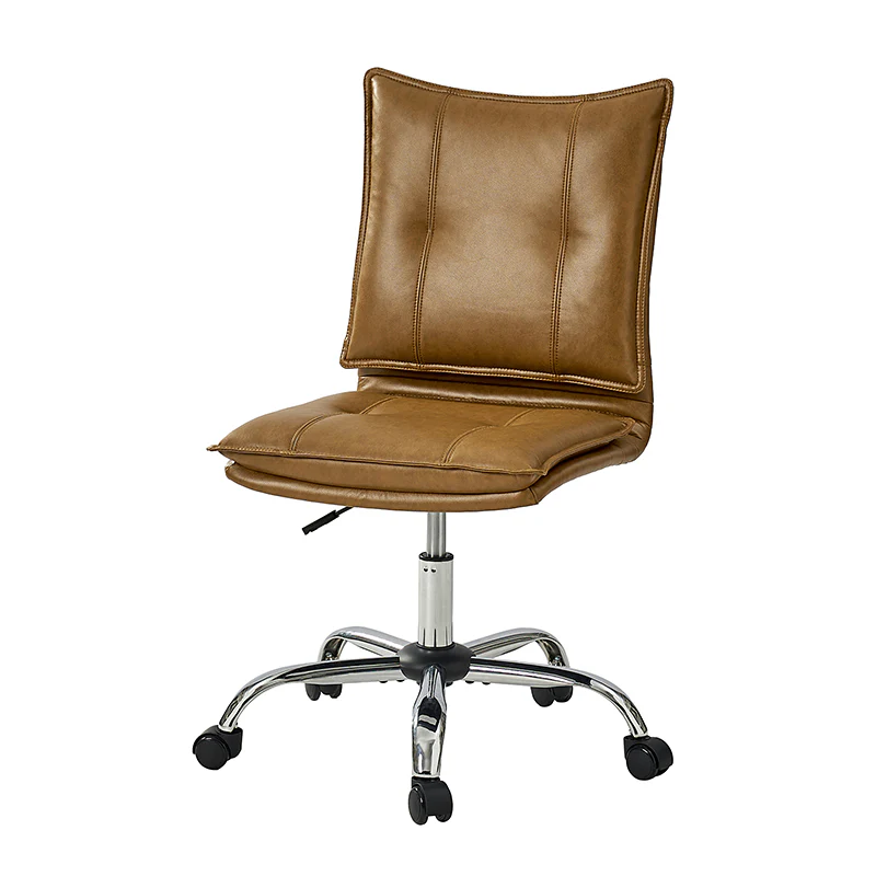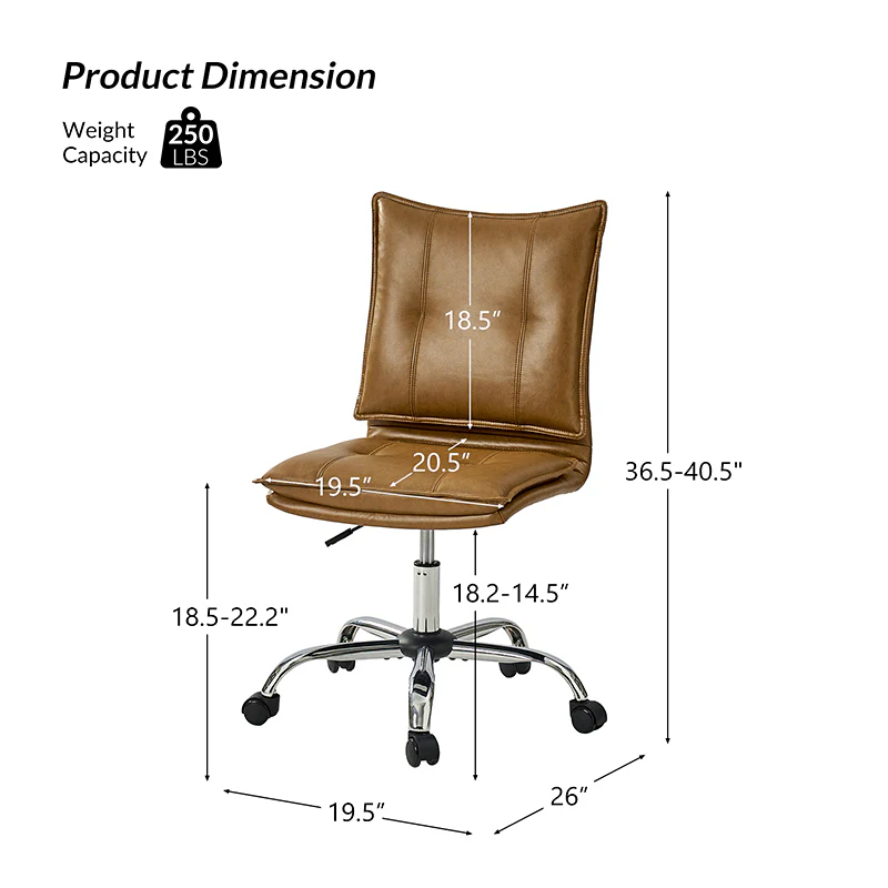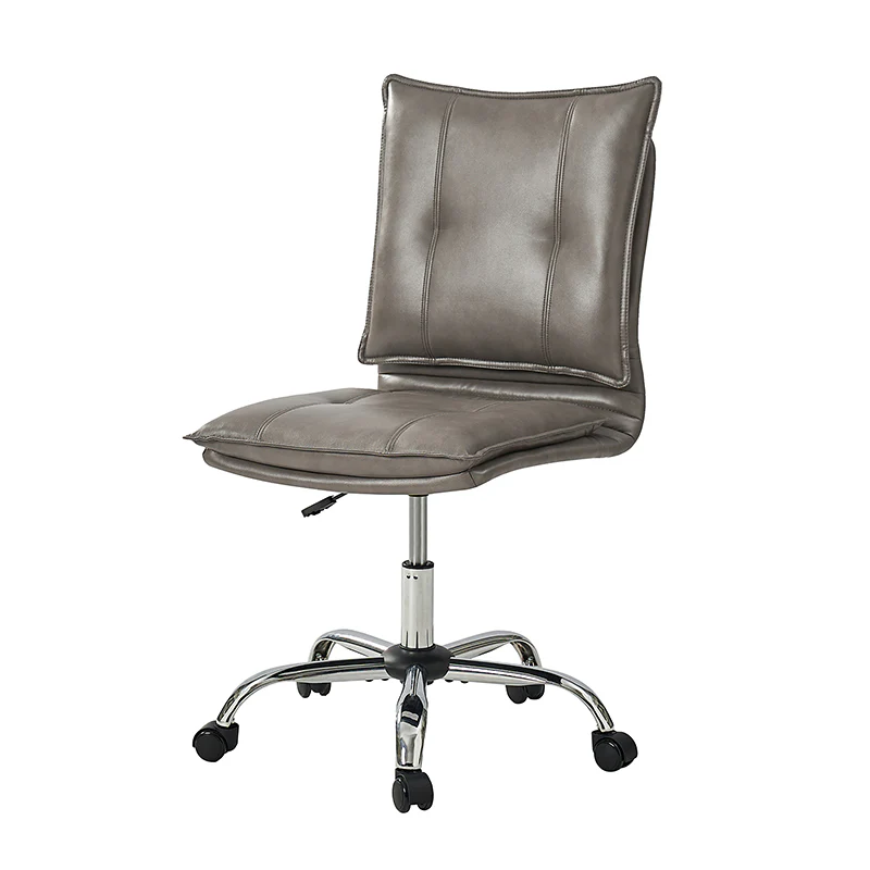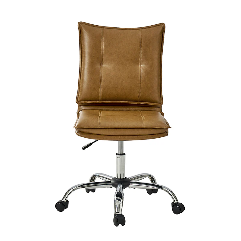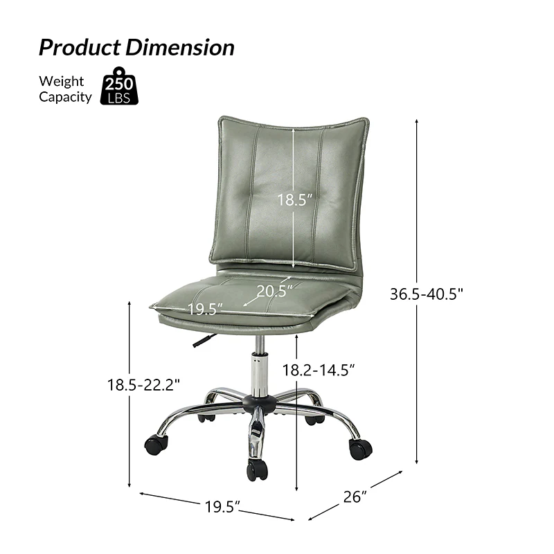 Experience modern comfort with this contemporary office chair. Upholstered in luxurious faux leather, it exudes a sleek and sophisticated vibe. The metal base ensures durability and stability, while the comfy tufted backrest adds a touch of elegance to your workspace. Enjoy flexibility with its swivel seat and easily adjust the seat height to your preference. The chair is equipped with an SGS International Certified Stainless Steel Gas Spring, providing three levels of reliable adjustment. Elevate your office aesthetics and comfort with this stylish and functional piece that seamlessly blends modern design with ergonomic features.