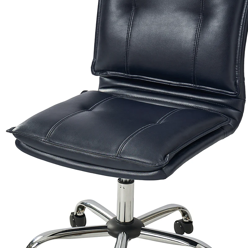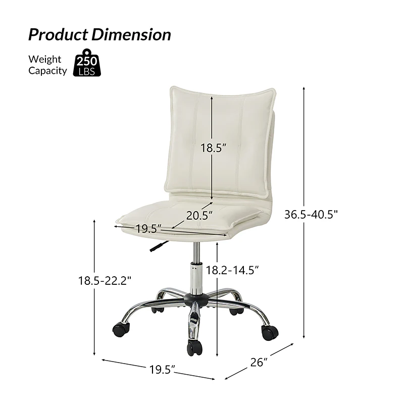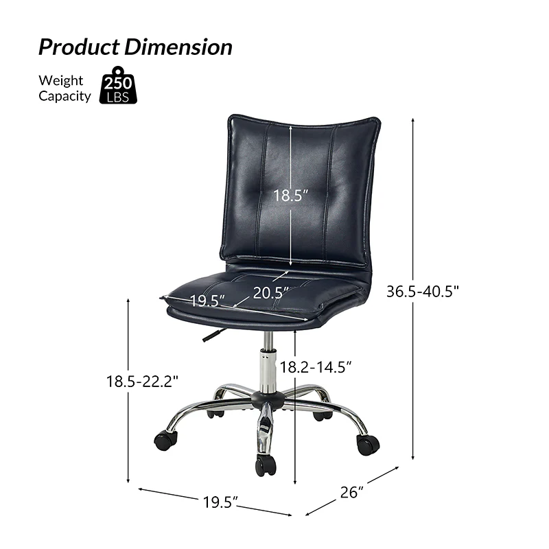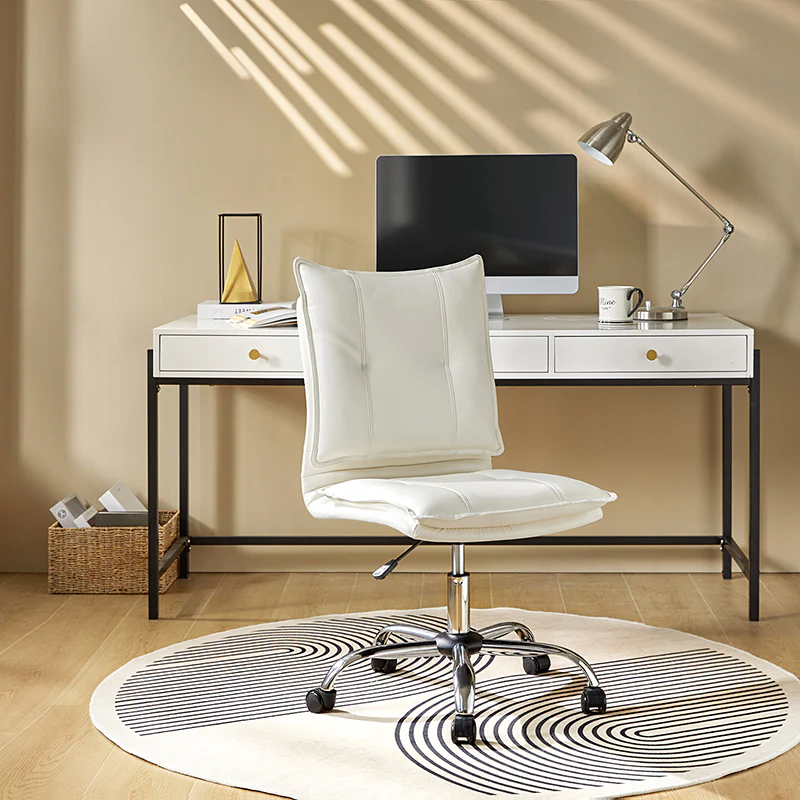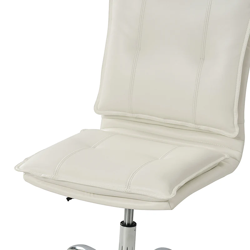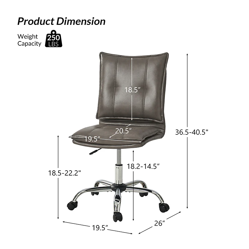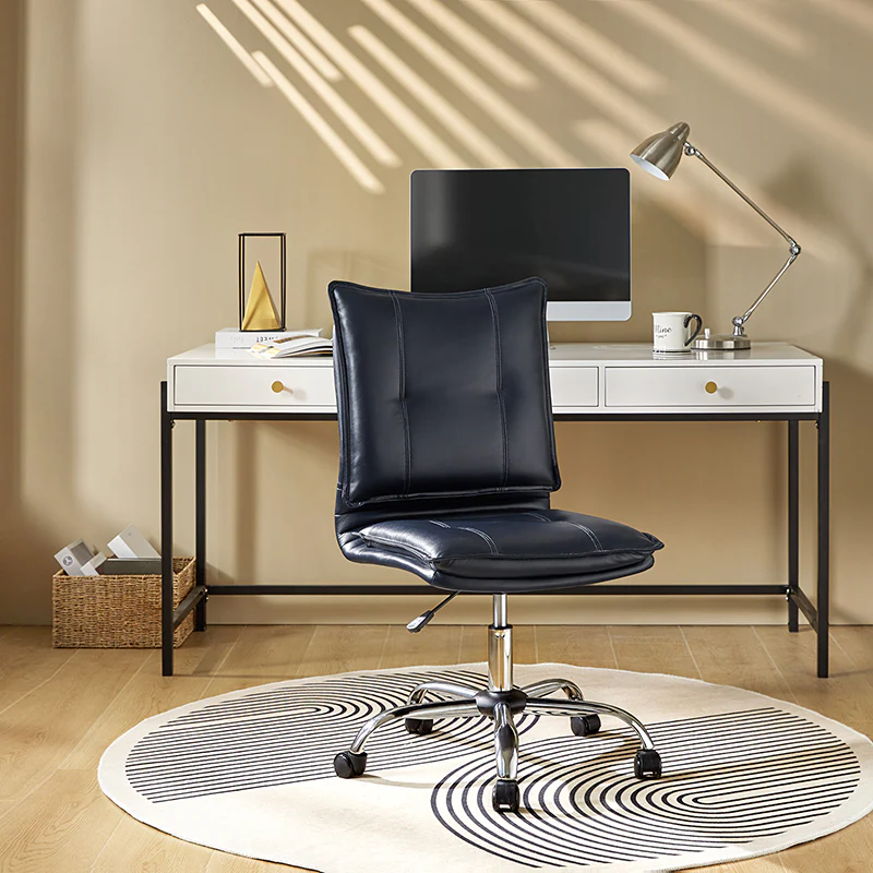Experience modern comfort with this contemporary office chair. Upholstered in luxurious faux leather, it exudes a sleek and sophisticated vibe. The metal base ensures durability and stability, while the comfy tufted backrest adds a touch of elegance to your workspace. Enjoy flexibility with its swivel seat and easily adjust the seat height to your preference. The chair is equipped with an SGS International Certified Stainless Steel Gas Spring, providing three levels of reliable adjustment. Elevate your office aesthetics and comfort with this stylish and functional piece that seamlessly blends modern design with ergonomic features.