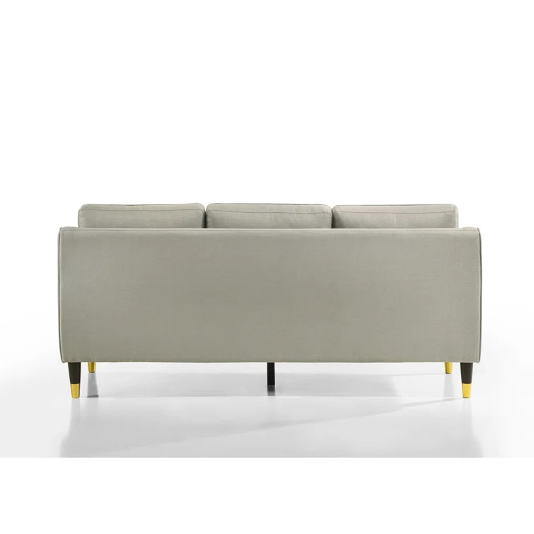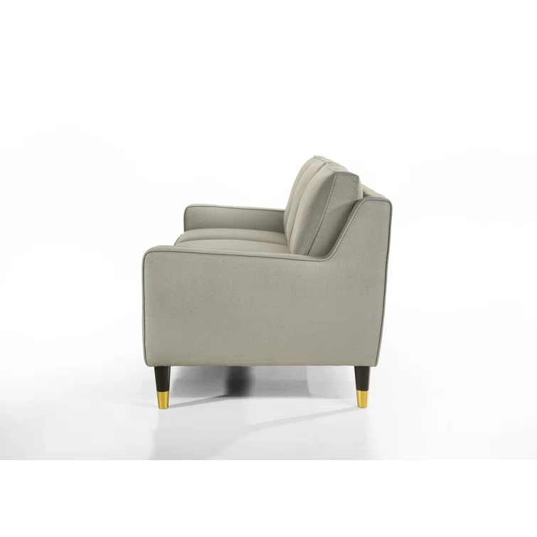 This Wendel 78.2" Round Arm Sofa anchors your living room in glam style with its gleaming, gold-colored feet and sleek silhouette. It's made with a solid and engineered wood frame that sits on tapered, solid wood legs. This couch is wrapped in soft and comes in your choice of color to suit your space. Its removable, foam-filled back cushions provide just the right support while you read or relax. Plus, this sofa is resistant to water, stains, mildew, scratches, tears, and fading, so it's great for homes with pets and kids.
