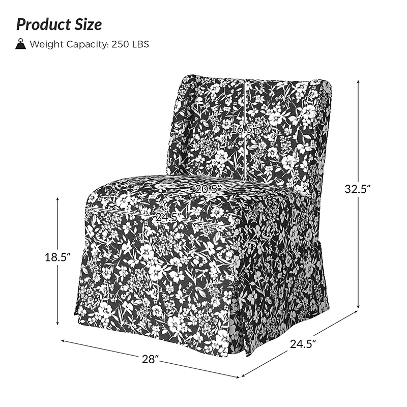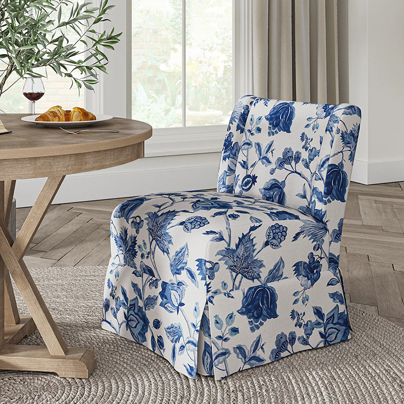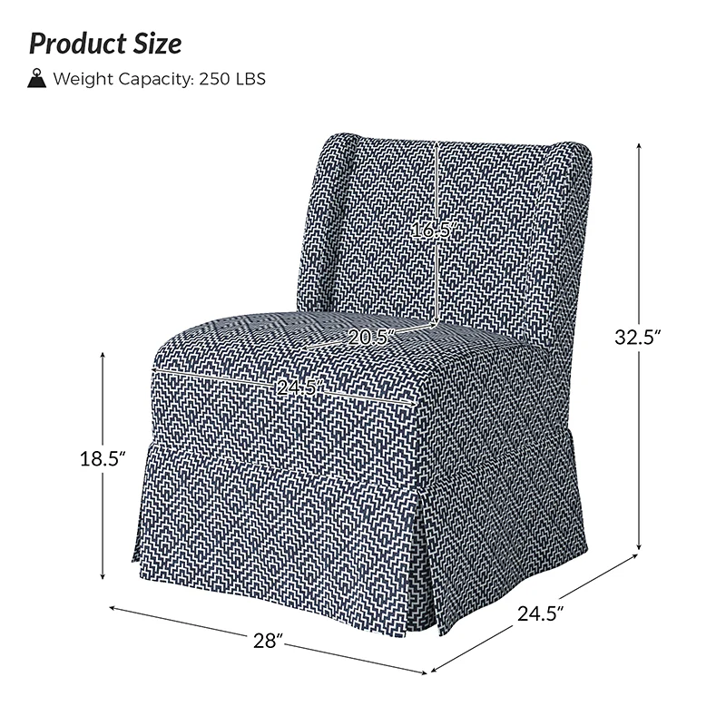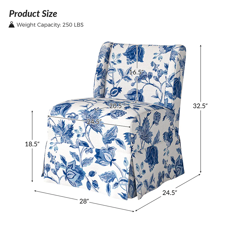The upholstered accent chair seamlessly blends transitional style and practicality. Designed as a slipper chair, it effortlessly complements various dining settings. The chair features a washable slipcover, ensuring easy maintenance and longevity. Its solid wood legs provide sturdy support and a touch of natural elegance. The versatility extends to the choice of four different fabrics, allowing customization to suit individual preferences. With its combination of style, convenience, and durability, this traditional dining chair is a suitable addition to the dining space, embodying both aesthetic appeal and functional practicality.