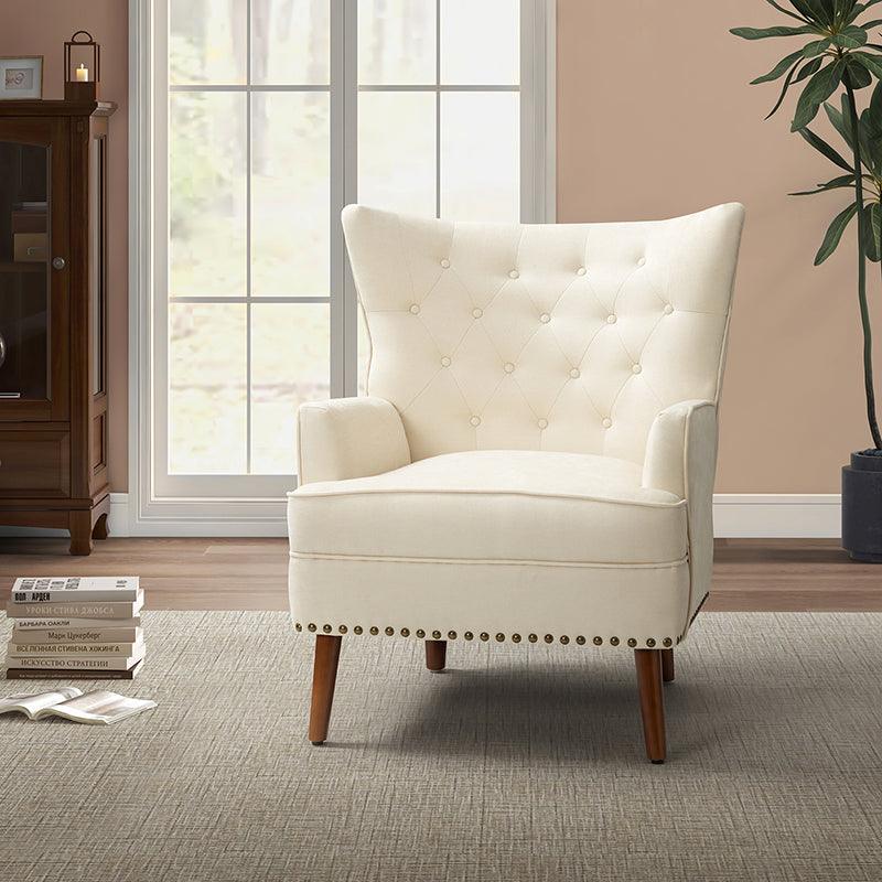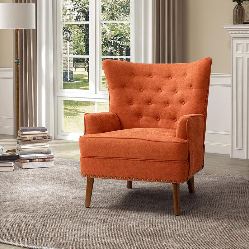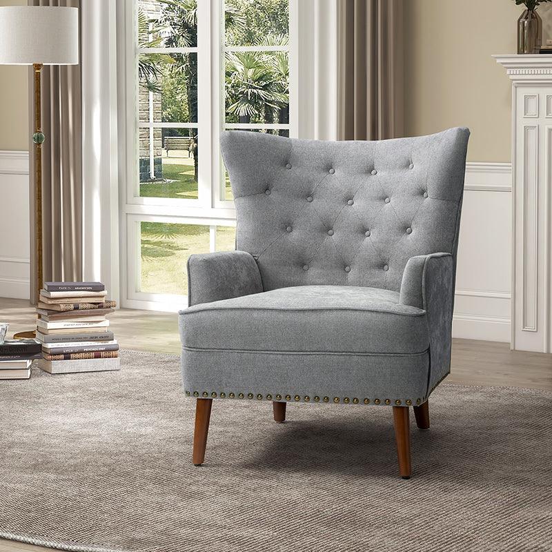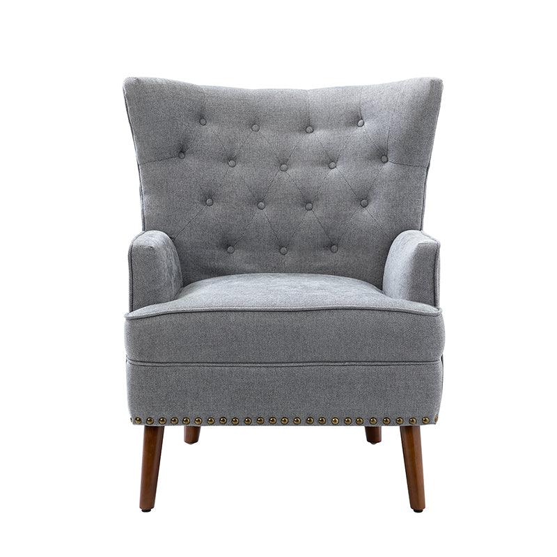 Are you still looking for an armchair to decorate your space? This armchair is the best choice for you. This armchair has a transitional style with a tight back, nailhead trim body and unique recessed arms adding texture and sophisticated upholstery. It is supported by a sturdy solid and manufactured wood frame and a built-in S-spring, and it showcases the visual effect of the combination of different materials that bring about a collision of softness and hardness. This sturdy construction is covered by polyester and padded by thick foam, providing the right choice for long-lasting comfort, with a construction that will stand the test of time. This armchair is suitable for all decors that you need.