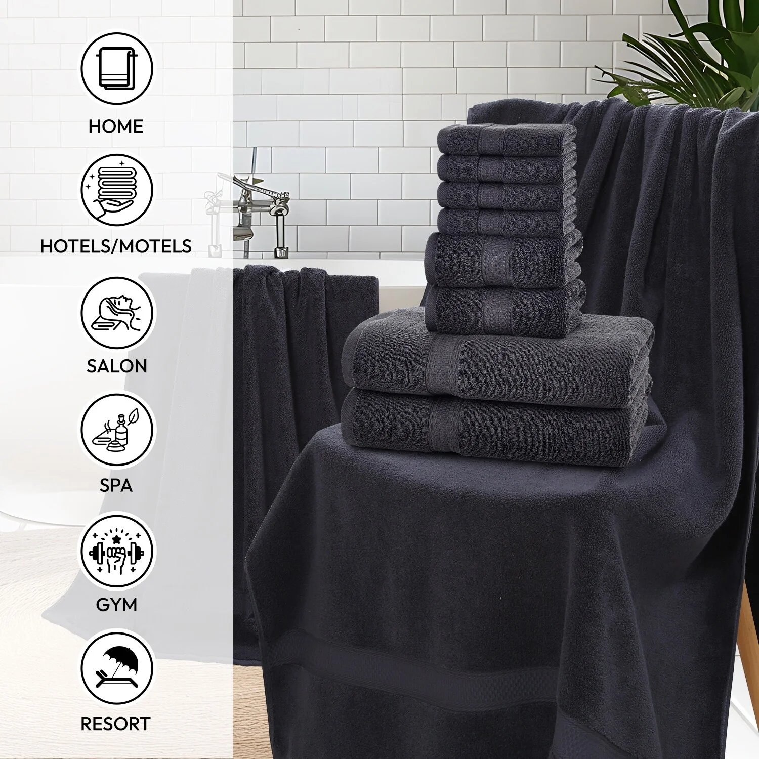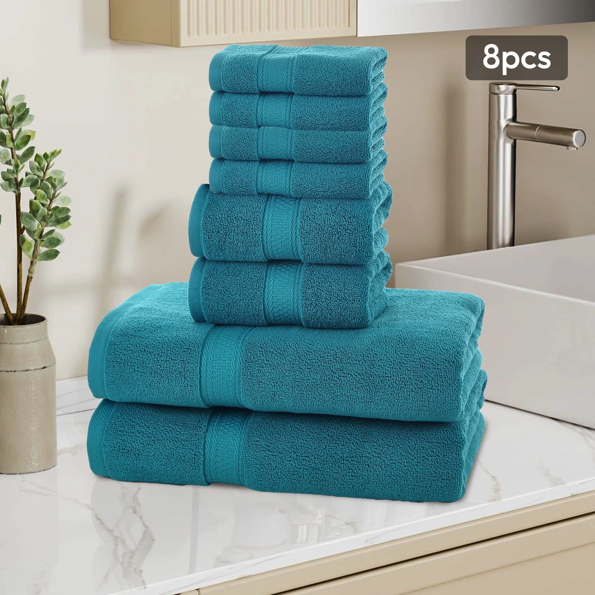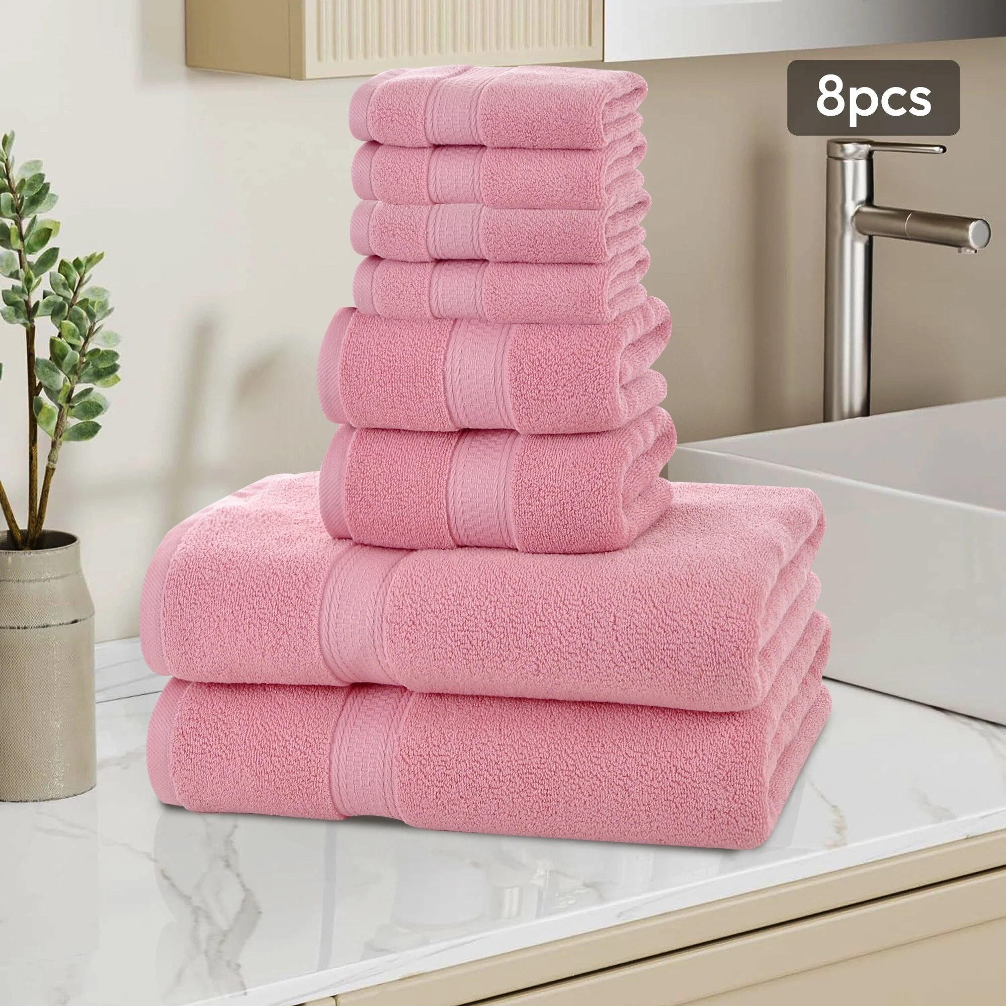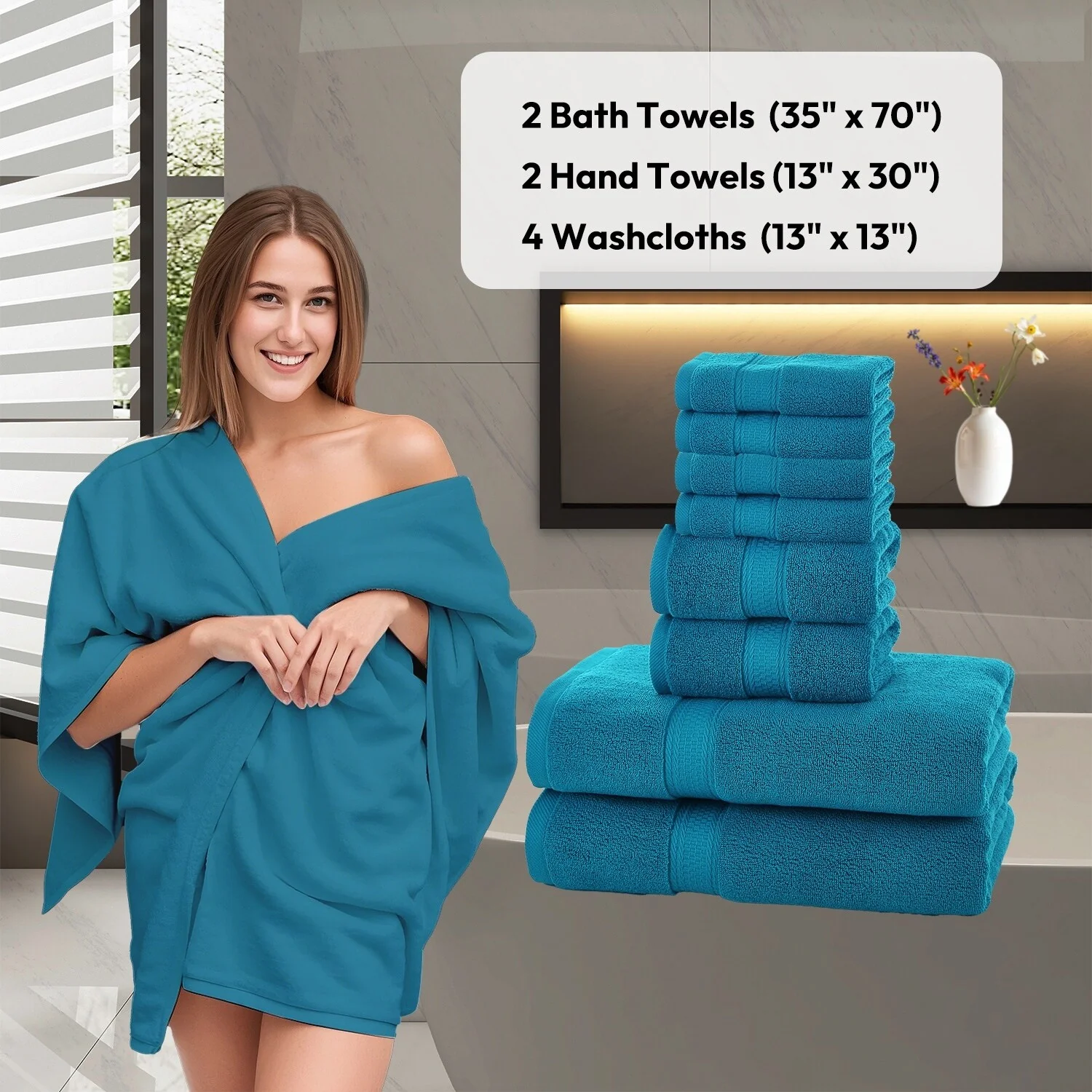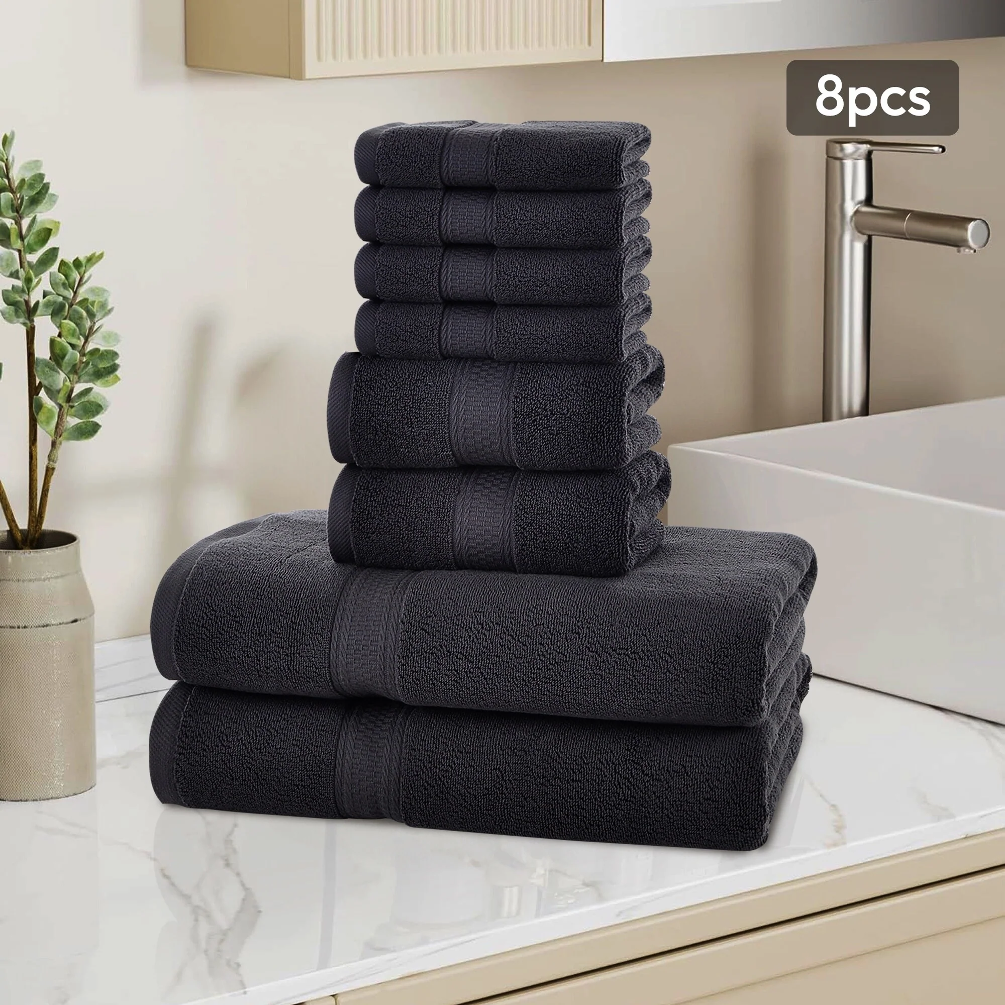 Hotel Collection - 8-Piece bathroom towel set contains 2 EXTRA LARGE bathroom towels (35 x 70 inches), 2 hand towels (13 x 30 inches), and 4 washcloths (13 x 13 inches); Each towel is spun from 100% cotton - durable, quick-dry, and wonderfully absorbent.
