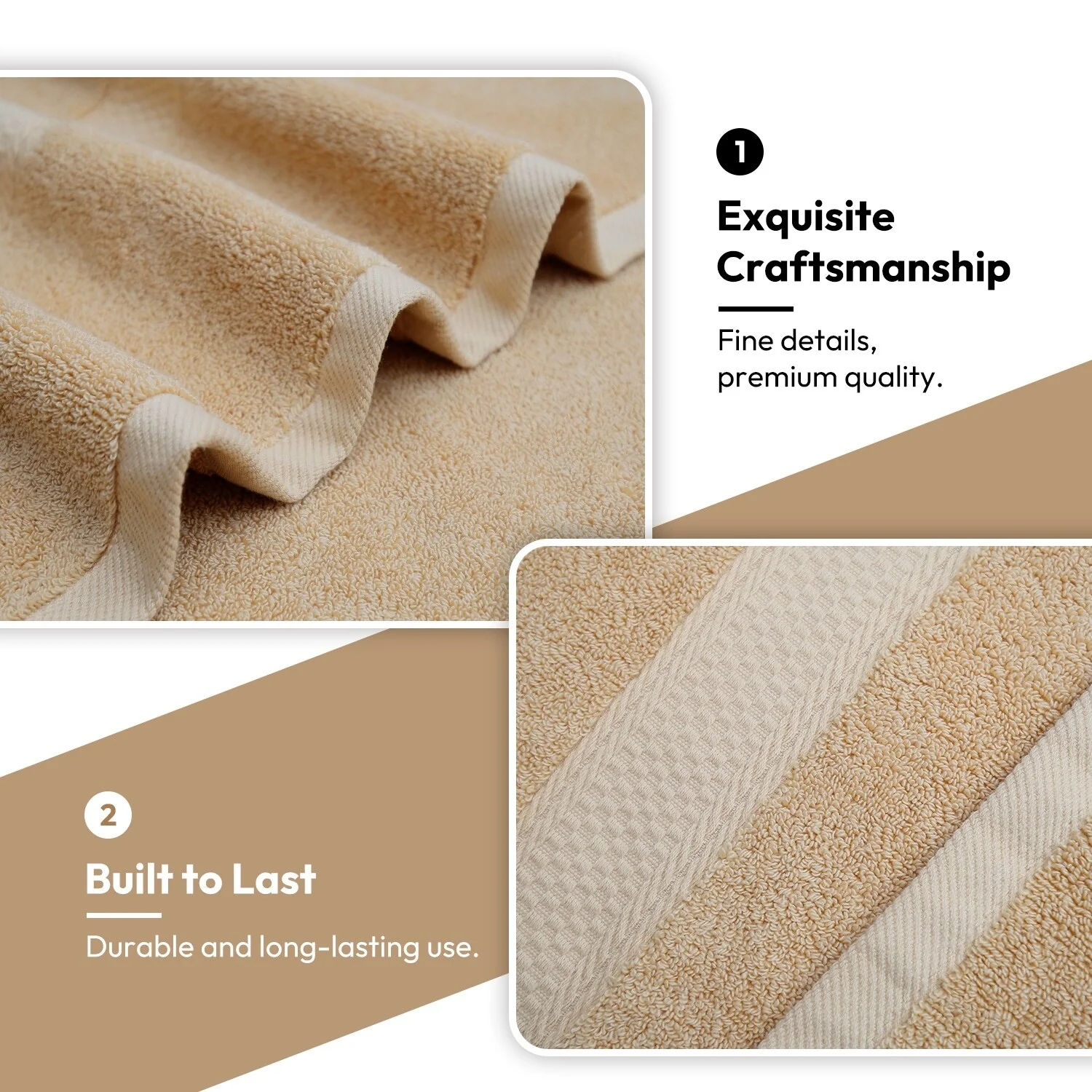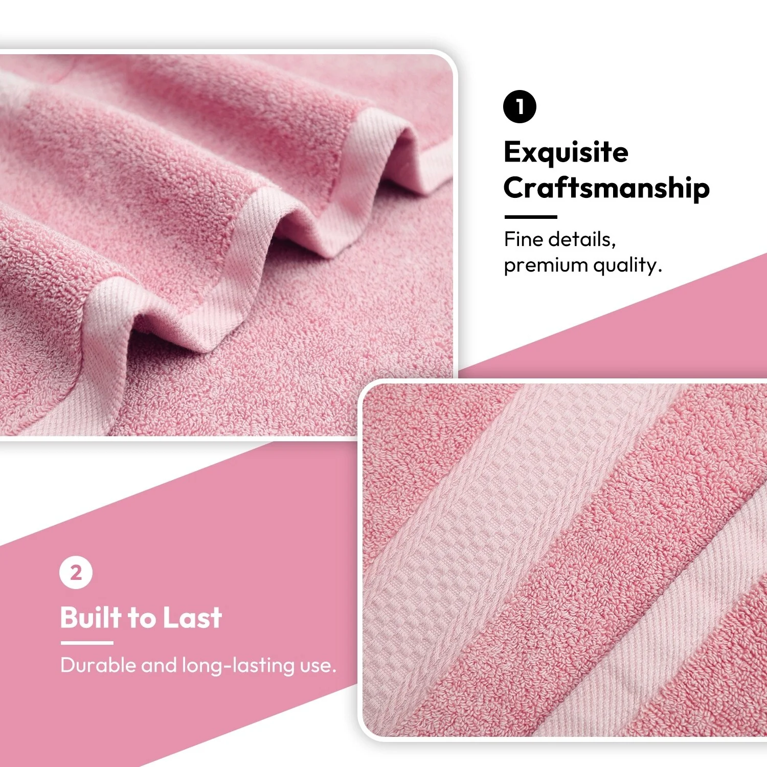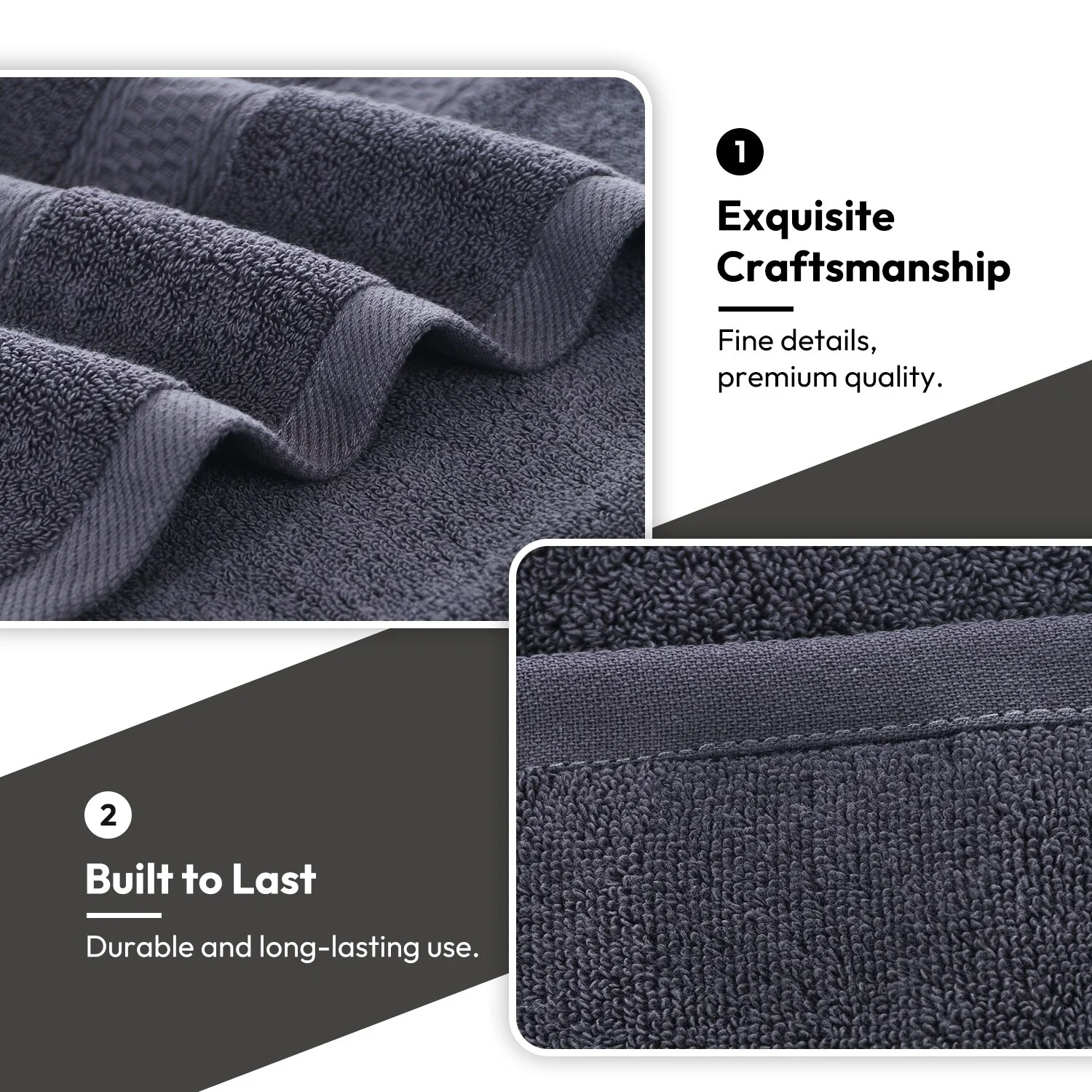 True Luxury and Super Soft Feel Every Time - The surface is smooth and not easy to shed, adding to our bath towel sets durability; Edges are reinforced with double needle embroidered stitching to prevent fraying from long-term use and laundering.