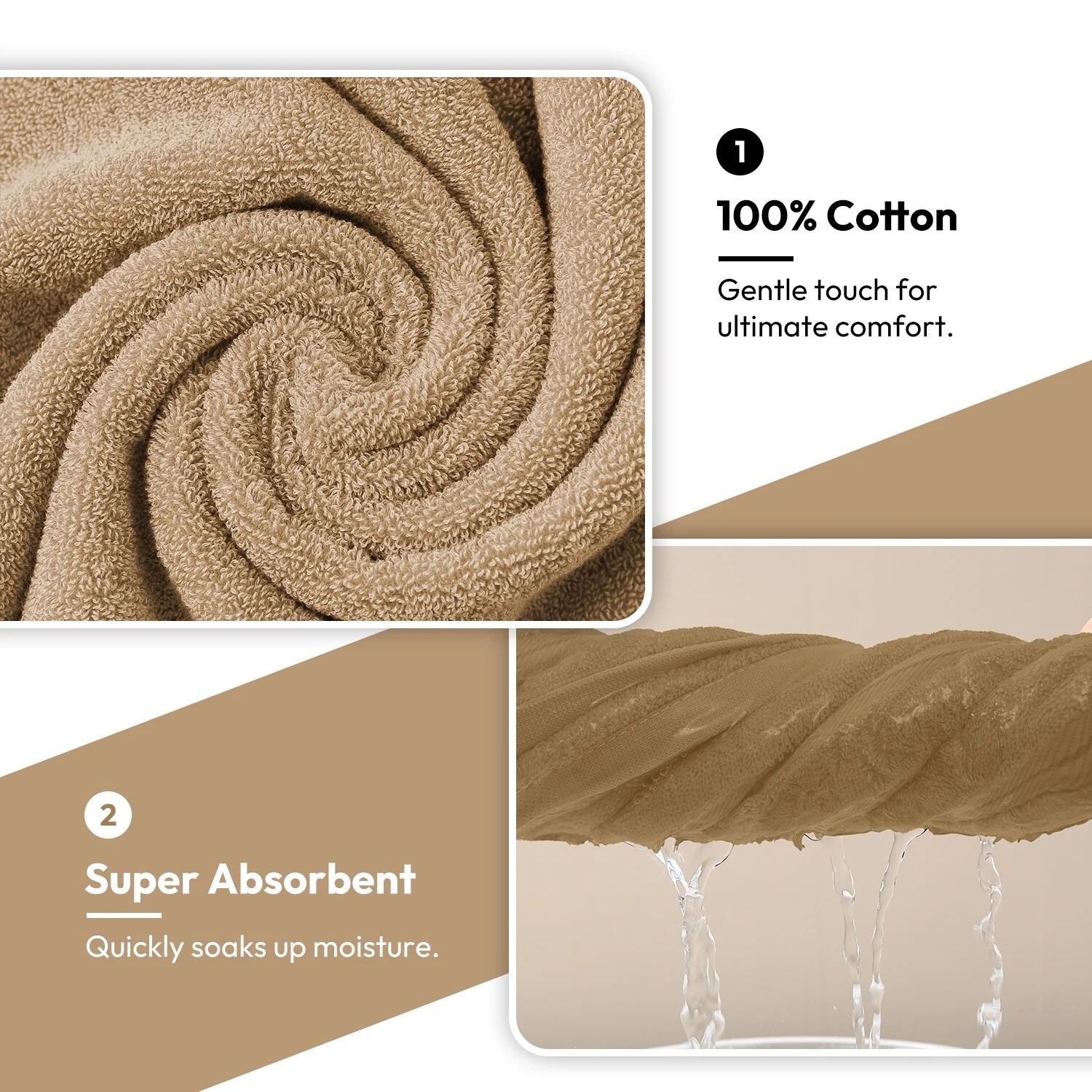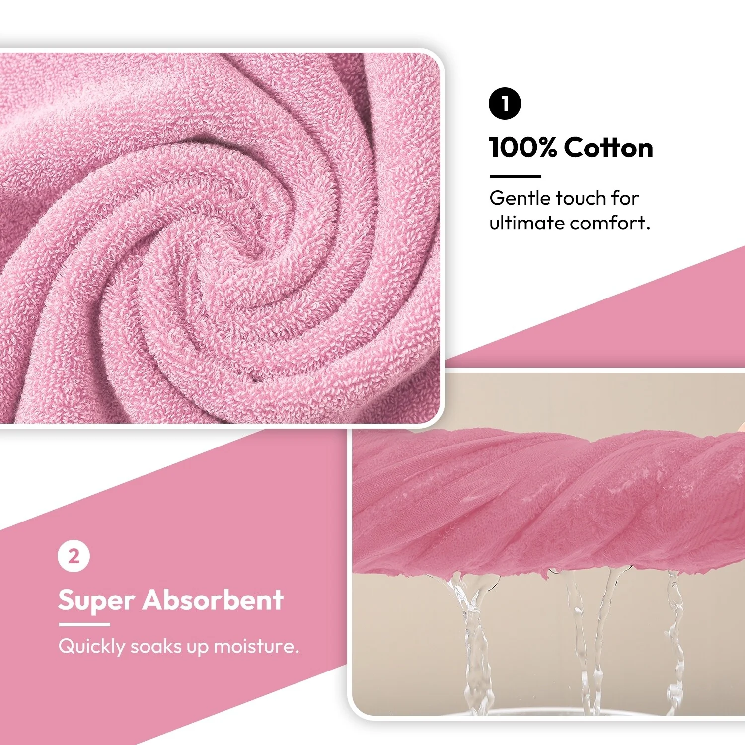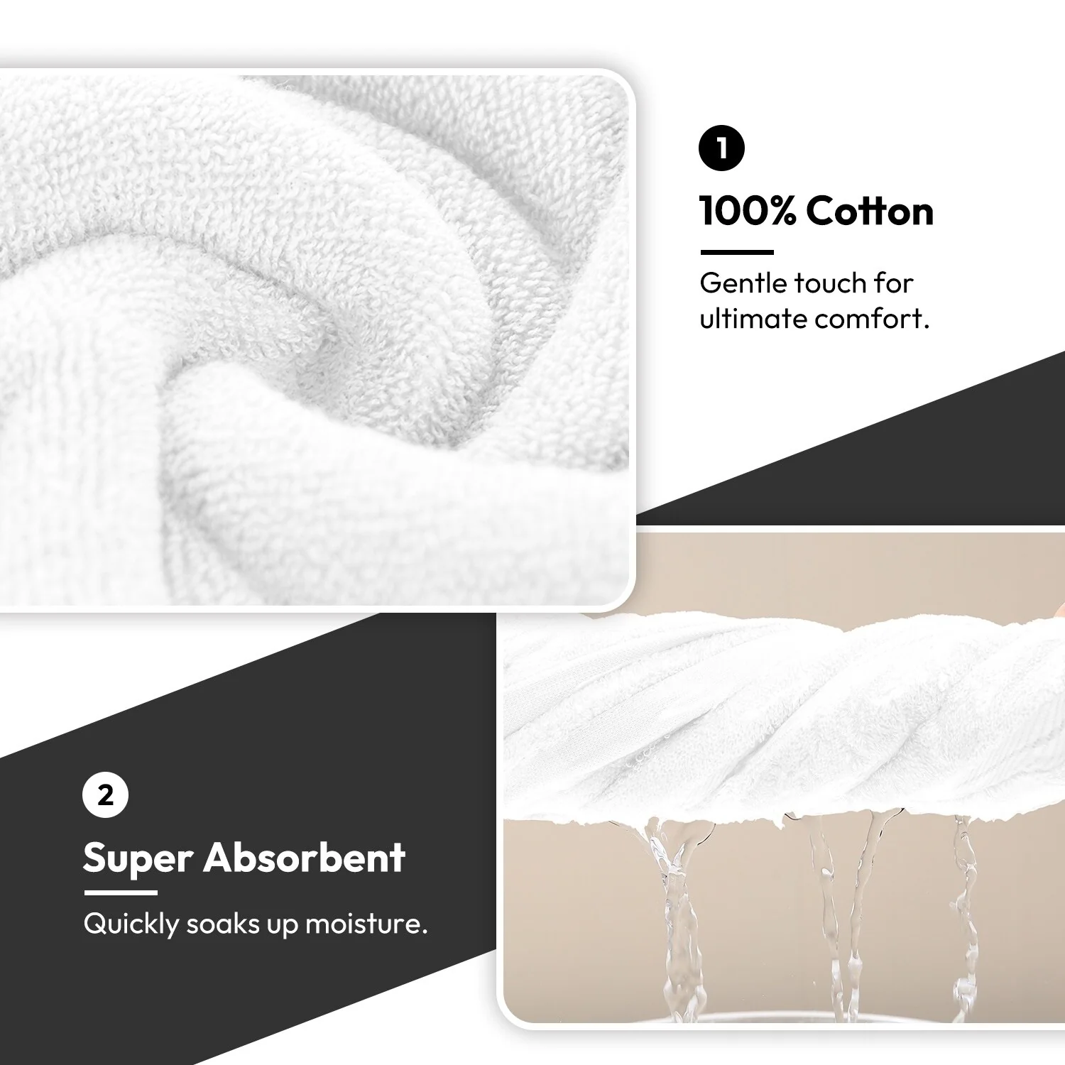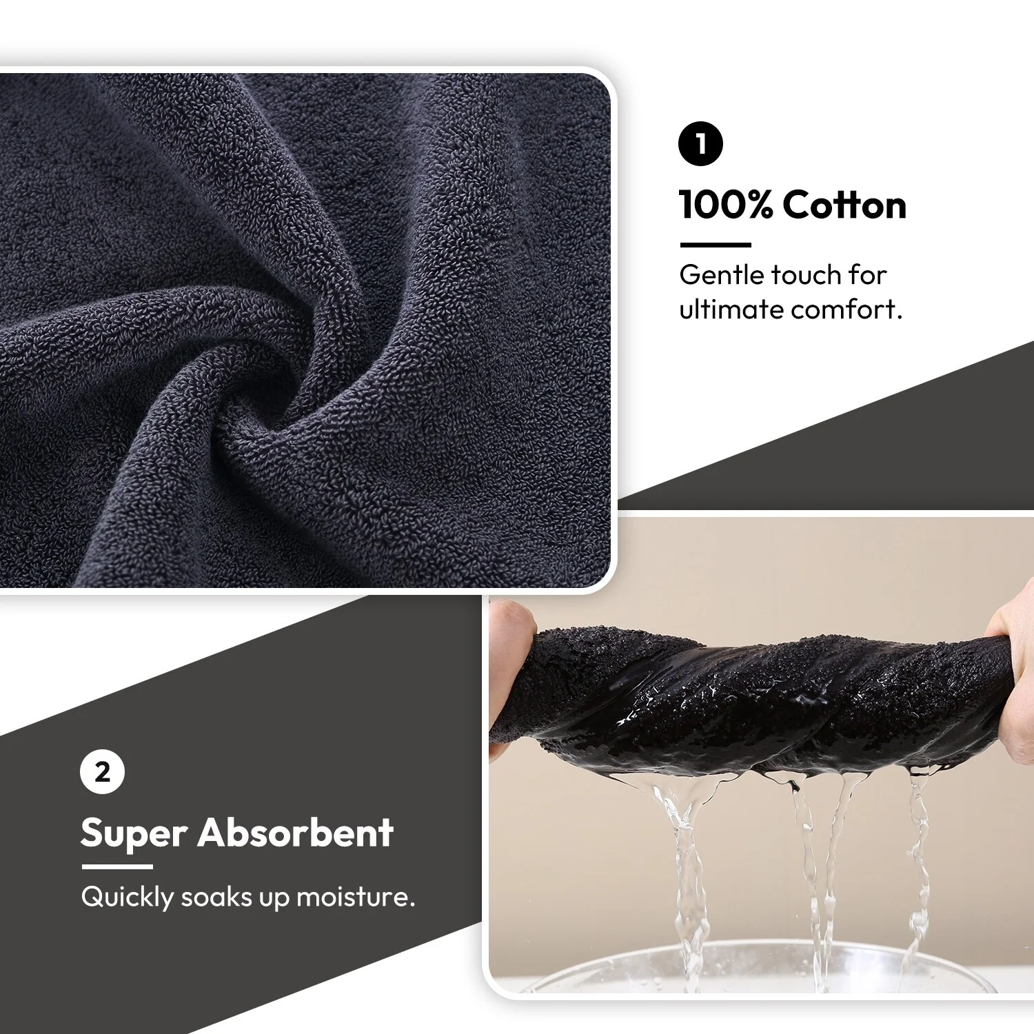 Highly Absorbent, Fast Drying, No Lint - Our plush towels and washcloths sets, made from top-grade cotton, boast exceptional absorbency and quick-drying features, complemented by a lint-free experience.