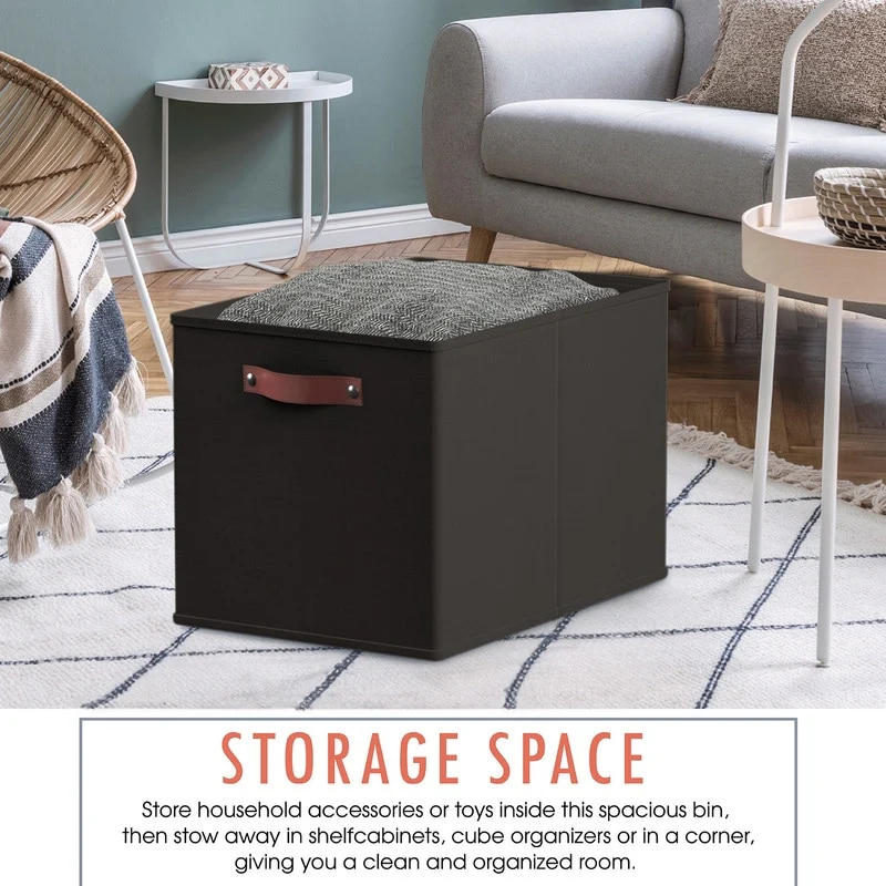 Crafted with durable materials, ensures the storage bin place in your home for a long time. The styling of the piece matches numerous decor styles, allowing you to continue using the storage bin when you update your furnishings and your home's decorative accent pieces. From media accessories to books and magazines, this piece stores items so that you can declutter your living area, and enjoy lounging in style.