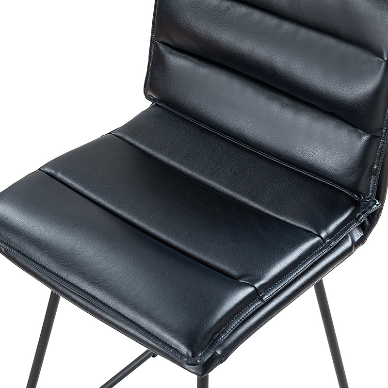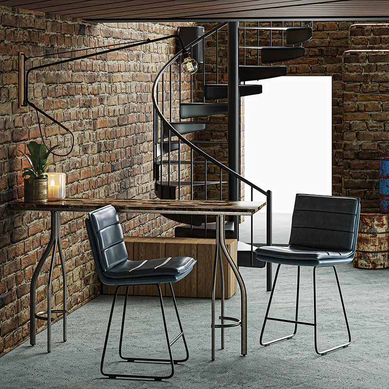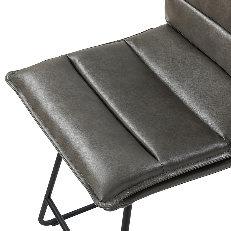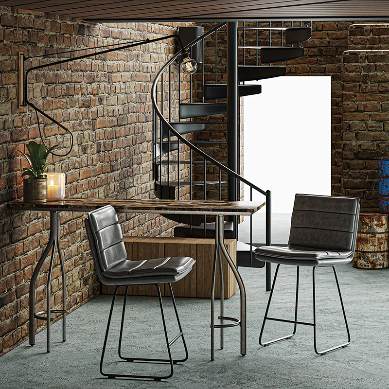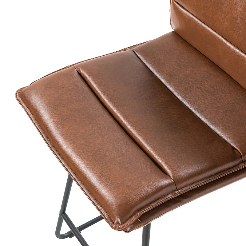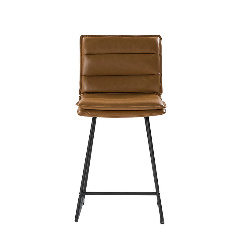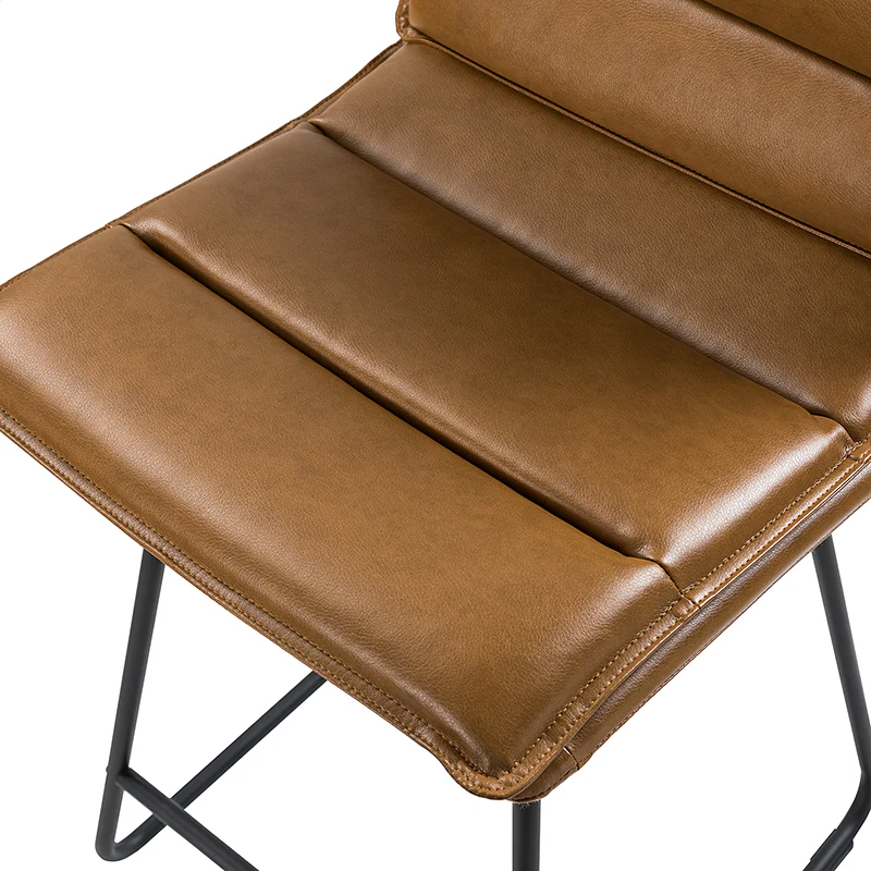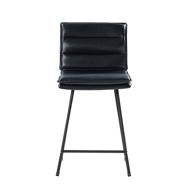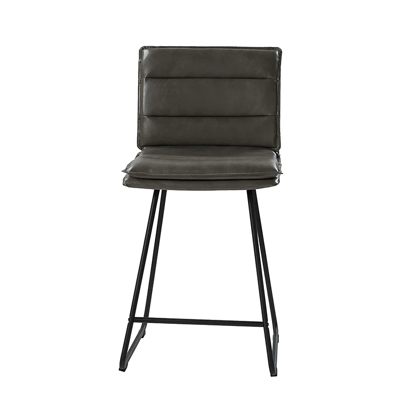 Elevate your bar area with this stylish set of 2 industrial-inspired counter stools. These stools boast a sturdy metal frame and sleek vegan leather upholstery, creating a contemporary and edgy appearance. The backrest and seat cushion are skillfully upholstered in quality 3-proof fabric, ensuring both comfort and durability. The unique design detail of the double quilted design on the backrest and seat cushion enhances the industrial aesthetic and adds a touch of sophistication. Additionally, the footrest design allows users to comfortably place their feet, offering extra support and relaxation. The counter stools complement various styles, including modern, casual, transitional, and contemporary. Whether you're entertaining guests or enjoying casual meals, these pieces are the perfect addition to your bar or kitchen island, offering a trendy seating option.