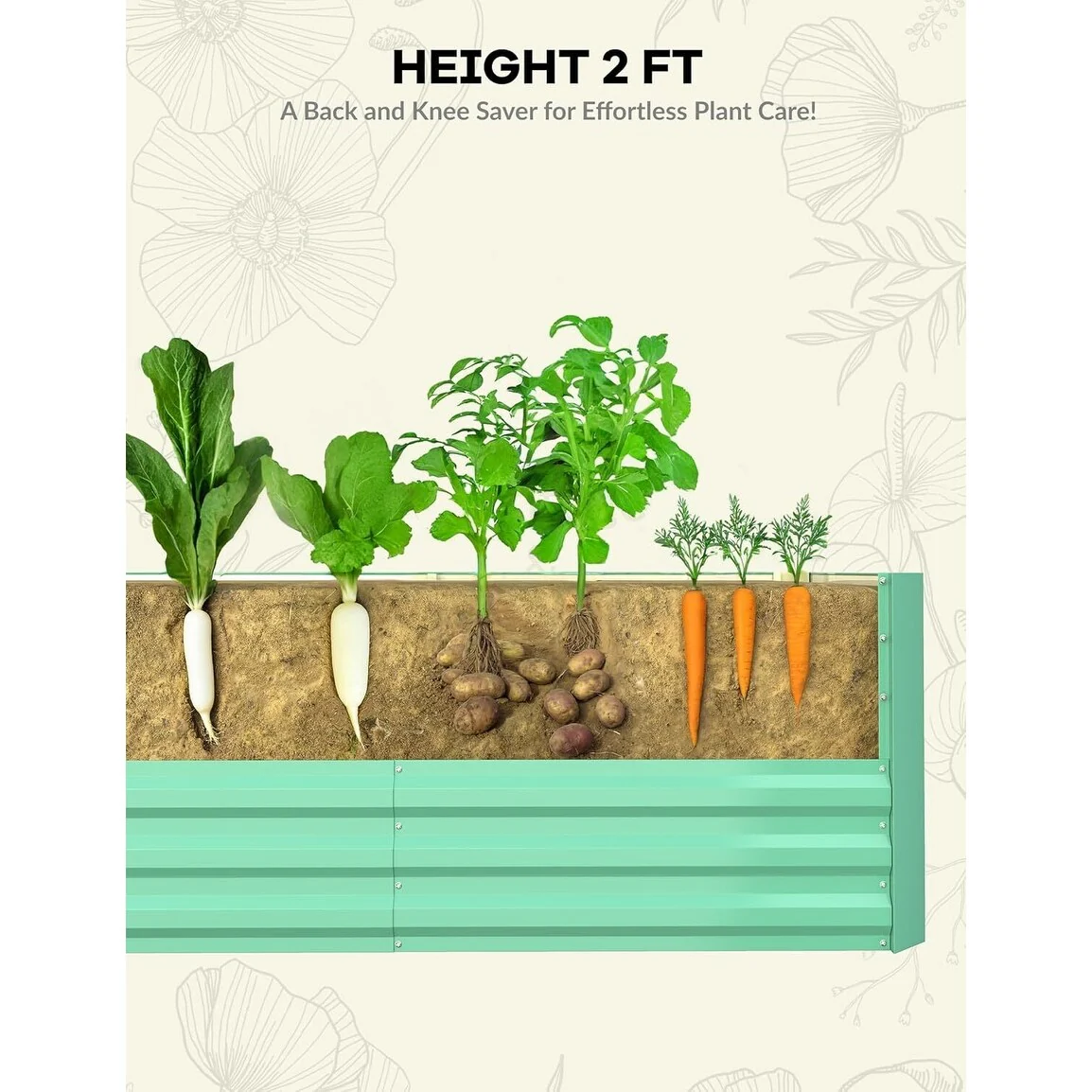 Open Bottom Design: Featuring an open bottom, this raised planting bed promotes effective drainage, preventing plant roots from suffering from excess moisture. This design allows the roots to absorb a variety of nutrients from the soil, encouraging healthier plant growth.