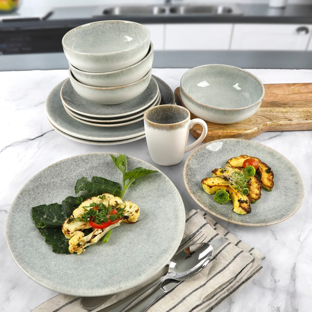 The Gibson Elite Kashmir 16 Piece Dinnerware set is part of a collection of artisinal reactive glaze dinnerware sets that will enrich your dining experience. Handcrafted with timeless elegance, these plates, bowls, and mugs will add a surreal and magnificent backdrop to any meal or dining event. The generous coupe shape is the perfect size for all types of meals and this set is conveniently also microwave and dishwasher safe. You will love the incredible quality and beautiful design of the Gibson Elite Kashmir 16 Piece Dinnerware Set.