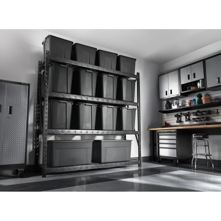 When it comes to superior strength and size, look no further than the 90" x 90" Gladiator® Heavy Duty Mega Rack. With over 50 sq ft (4.7 sq meters) of storage space and up to 8,000 lbs weight capacity,* our largest freestanding rack yet can handle the heaviest tools, parts and equipment you pack on it. Plus, its four adjustable shelves can easily be arranged at various heights to fit all your bulky gear in one convenient location.