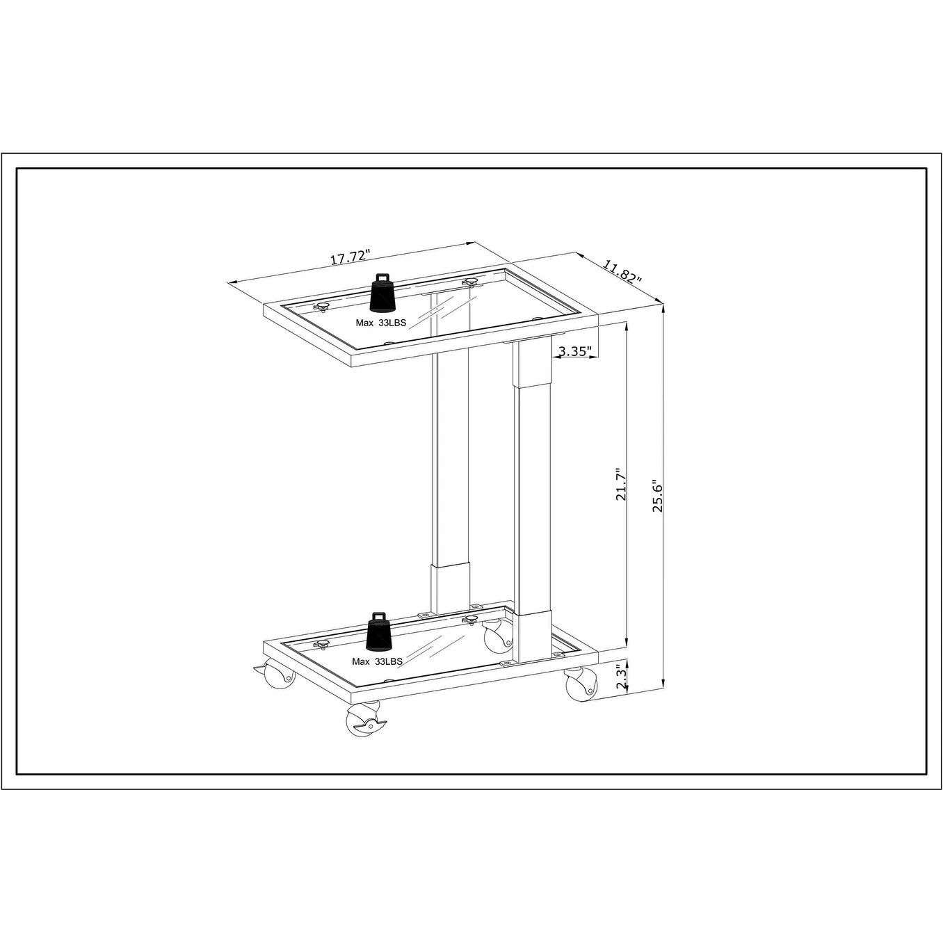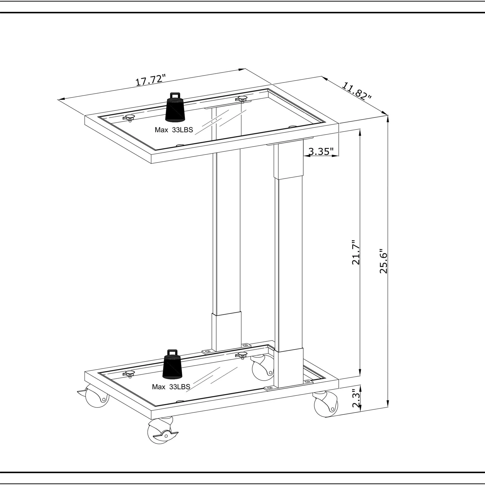 - Overall Dimension : 17.72’’L x 11.82’’W x 25.6’’H