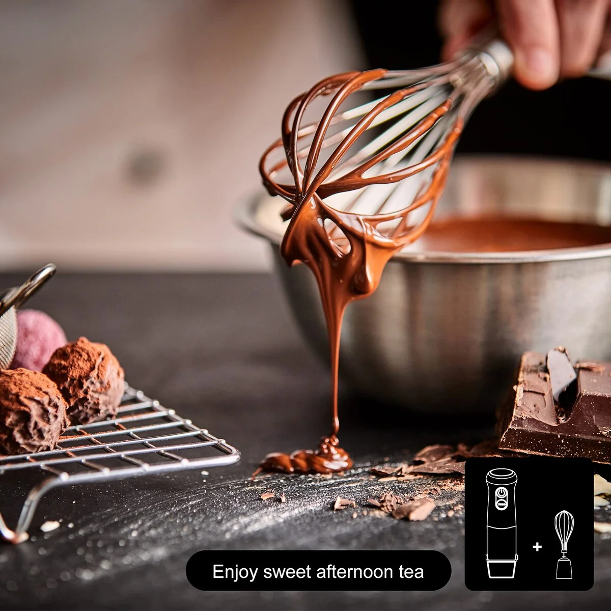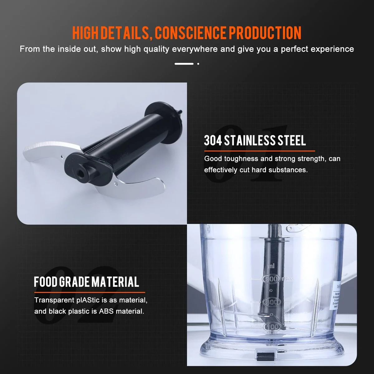 【For Attachments】:Include 500ml Chopping Bowl, Milk Frother, Egg Whisk, 600ml Beaker for Puree Infant.The 4 blades on the cutting head feature 4 cutting edges to achieve suitable mixing and crushing results, with a blade guard for reduced splashing.