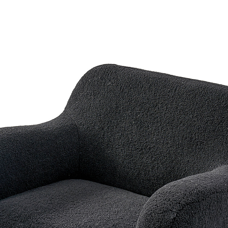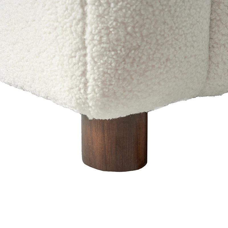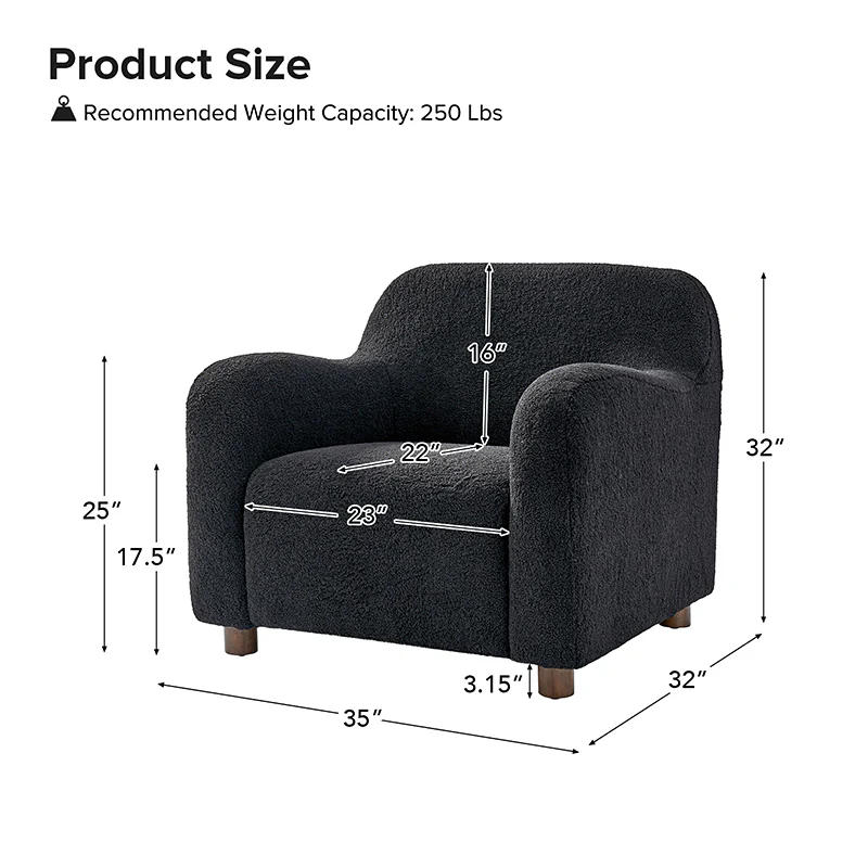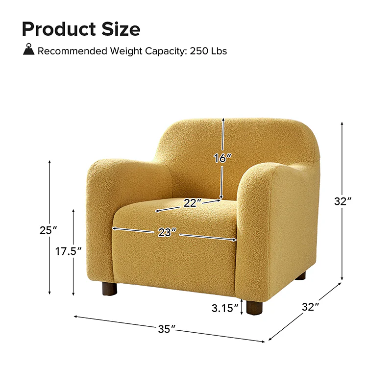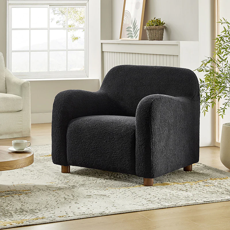 Presenting a contemporary upholstered armchair seamlessly adaptable to both living room and bedroom. Embodying the appeal of creamy style, this accent chair features quality lamb wool cloth upholstery, creating an inviting and cozy atmosphere. The solid wood legs add a touch of natural elegance and ensure sturdiness and stability. Designed for convenience, the armchair boasts a three-minute assembly, requiring only the attachment of the rubber wood legs. This time-saving design enhances the overall user experience, making it a choice for various spaces. Elevate your space with this modern armchair, where style meets functionality for moments of relaxation.