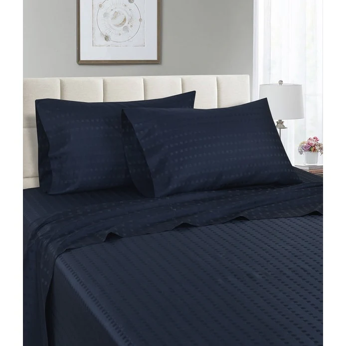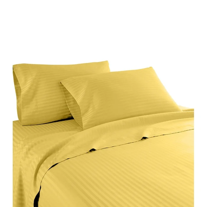 Drift off to sleep wrapped in the luxury and comfort of these Egyptian cotton sheets from Porch & Den. Crafted from 100-percent Egyptian cotton with a dense, 1200 thread count, these sheets are soft, breathable, and durable. The simple tone-on-tone stripe design is available in a variety of stylish colors, completing the lavish appeal of these cozy sheets.Features: Made from 100-percent Egyptian cotton 1200 thread count Durable fabric Striped pattern Gets softer after every wash Accommodates mattresses up to 15 Inches Machine washable—wash separately in cold water on a gentle cycle for approximately 15 minutes. Do not wash with other items. Do not bleach. Tumble dry on low. Iron as needed.  Twin Dimensions:  1 Flat Sheet 66 inches wide x 96 inches long 1 Fitted Sheet 39 inches wide x 75 inches long 1 Pillowcase 20 inches wide x 30 inches longTwin XL Dimensions:  1 Flat Sheet 66 inches wide x 96 inches long 1 Fitted Sheet 39 inches wide x 80 inches long 1 Pillowcase 20 inches wide x 30 inches longFull Dimensions:  1 Flat Sheet - 81 inches wide x 96 inches long 1 Fitted Sheet - 54 inches wide x 75 inches long 2 Pillow Case - 20 inches wide x 30 inches longQueen Dimensions:  1 Flat sheet: 90 inches wide x 102 inches long 1 Fitted sheet: 60 inches wide x 80 inches long 2 Pillowcases: 20 inches wide x 30 inches longKing Dimensions:  1 Flat sheet: 102 inches wide x 108 inches long 1 Fitted sheet: 78 inches wide x 80 inches long 2 Pillowcases: 20 inches wide x 40 inches longCalifornia King Dimensions:  1 Flat Sheet 102 inches wide x 108 inches long 1 Fitted Sheet 72 inches wide x 80 inches long 2 Pillow Case 20 inches wide x 40 inches long