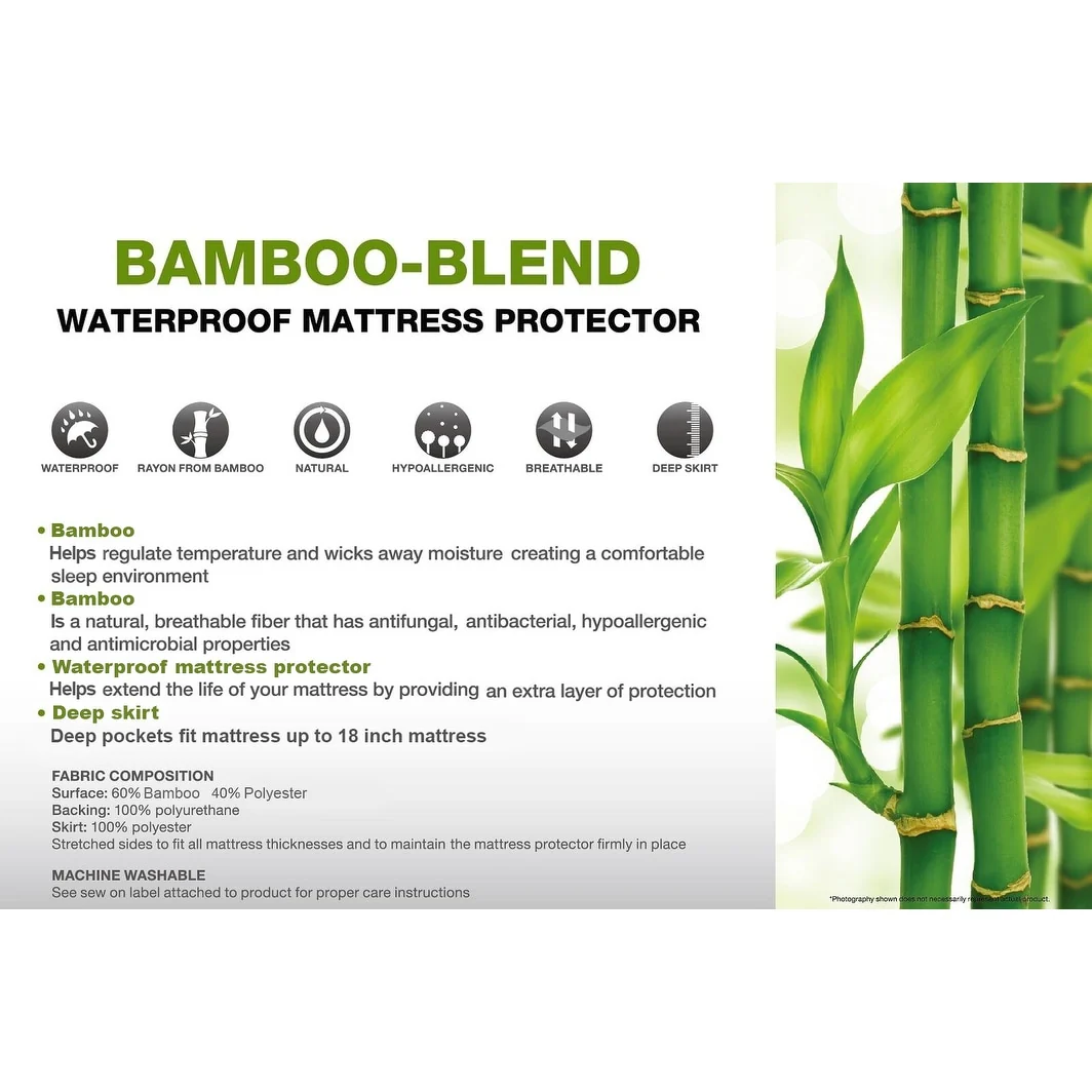 This bamboo mattress pad features a super-soft fabric to add a cloud like surface to the bed. The pad is made from bamboo and polyester fabric. Sewn with deep pockets that fit up to 18 inch mattresses, as a mattress protector, and it fits even deep mattresses like pillow-tops. Designed to go in the washer or dryer for simple care. This exclusive and extraordinary technology gives you the look and feel of bamboo only better, and makes the cover hypoallergenic and 100% washable. The expandable skirt allows the cover to fit any thicker pillow top mattress with ease.