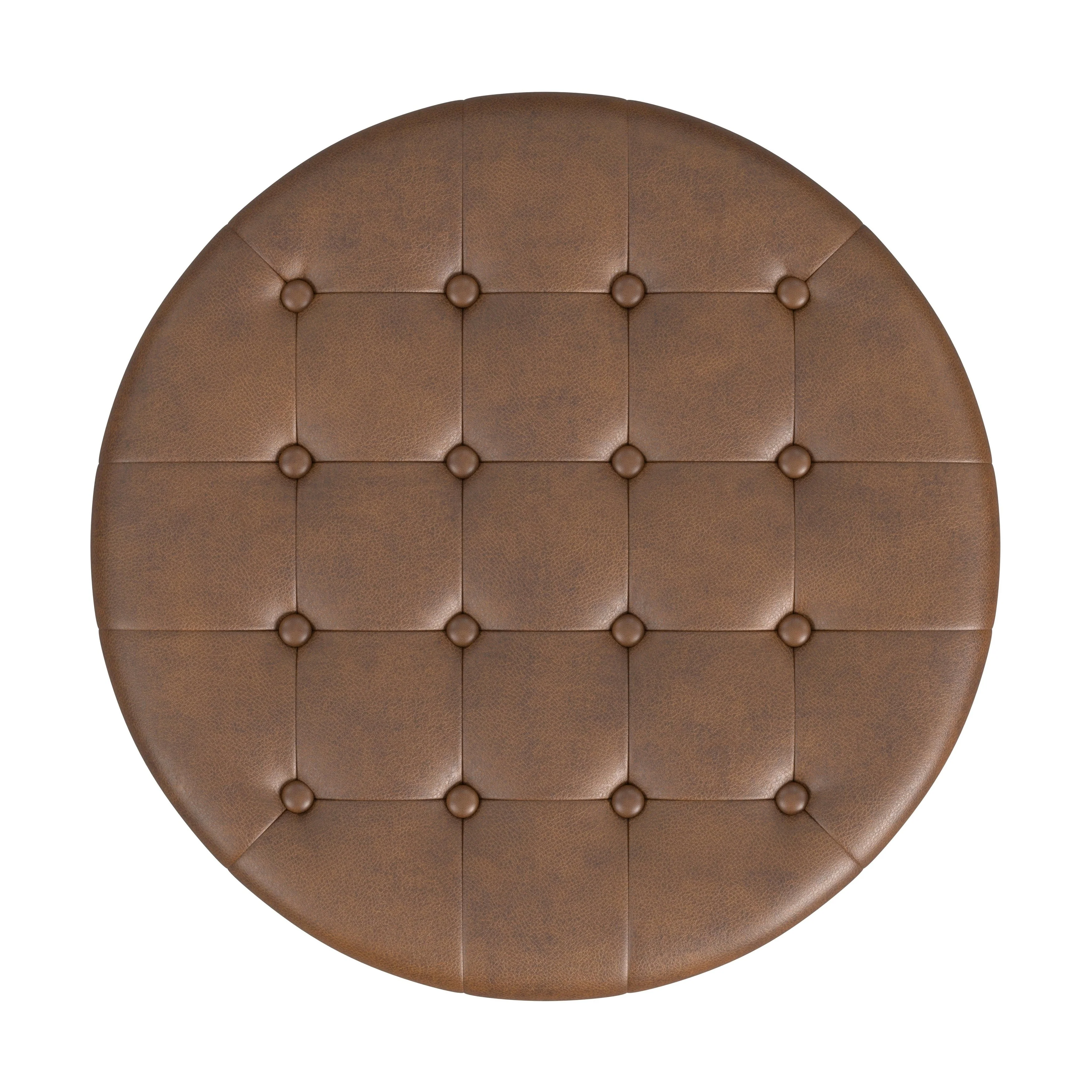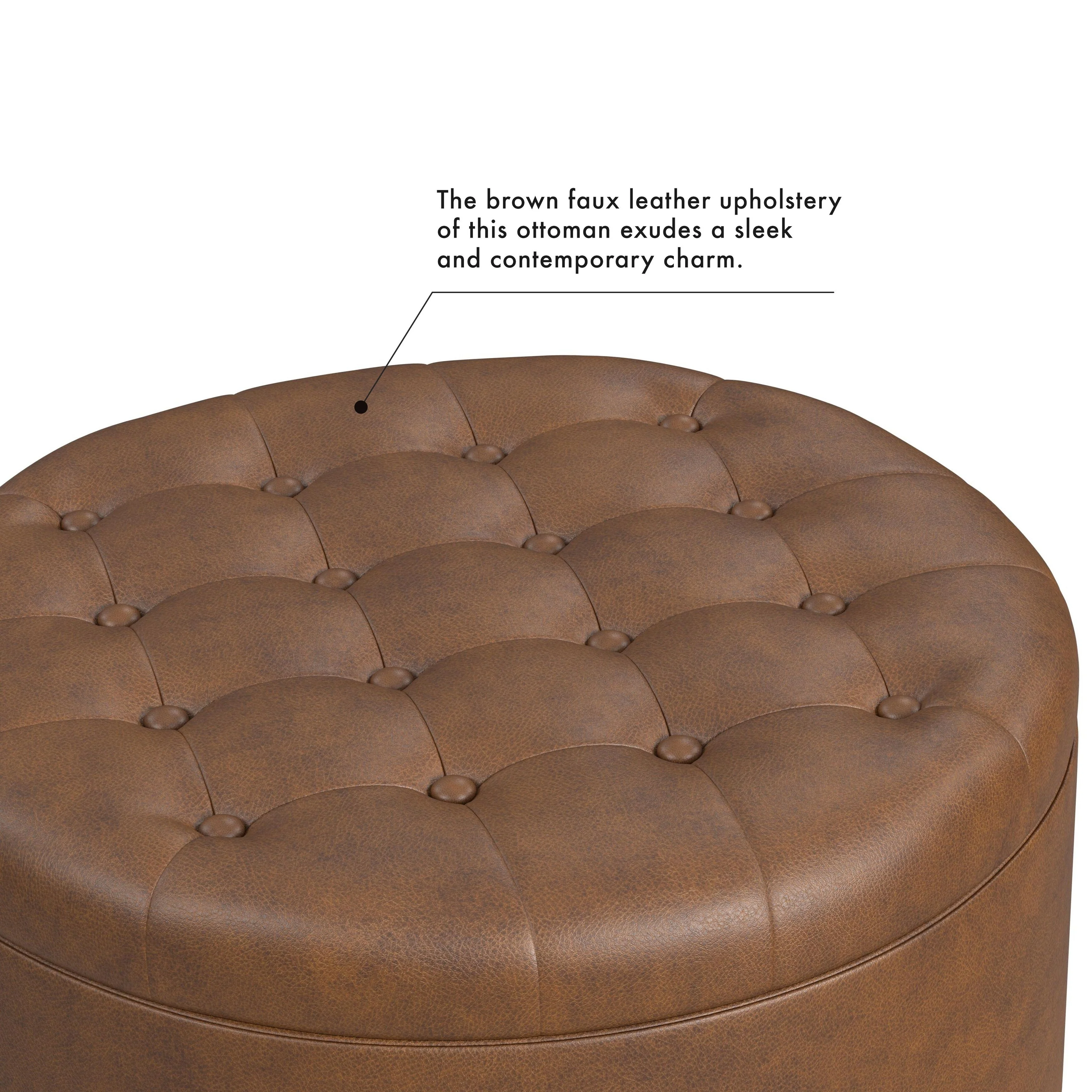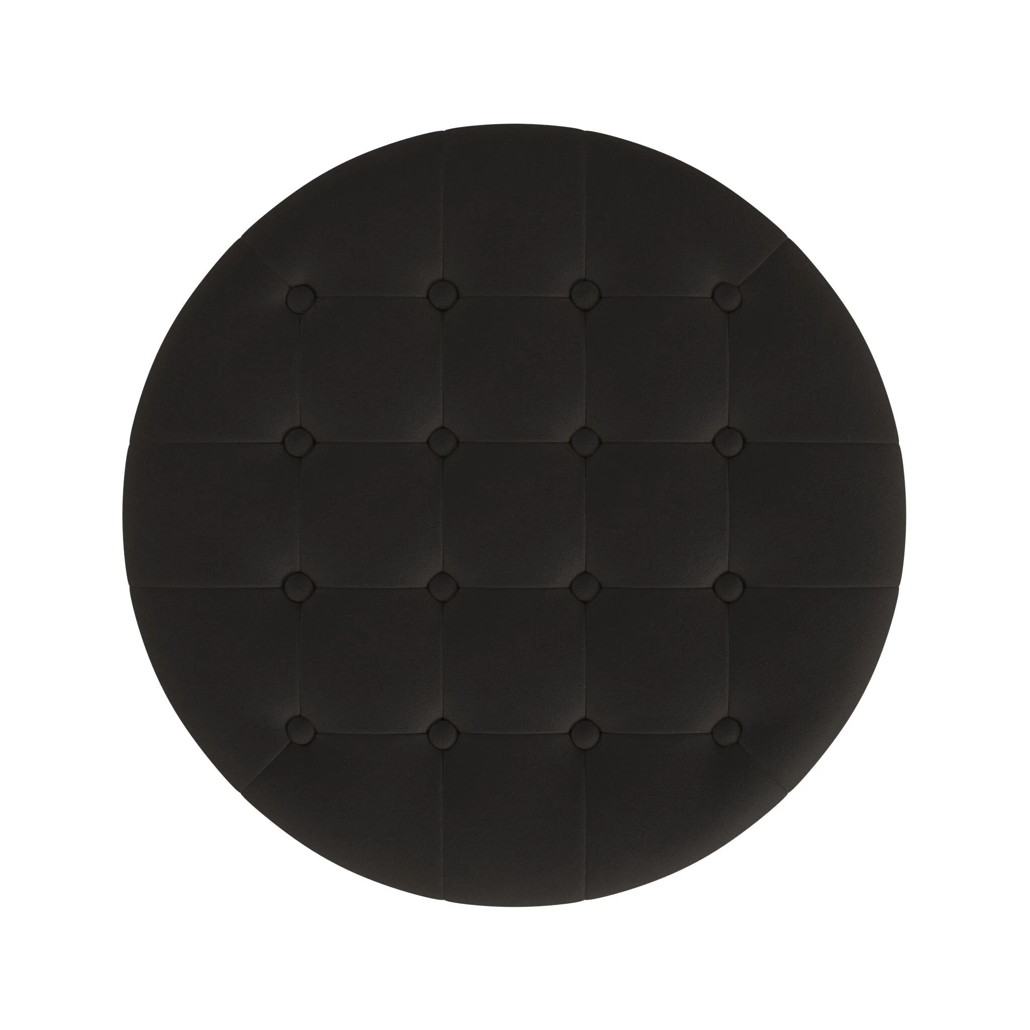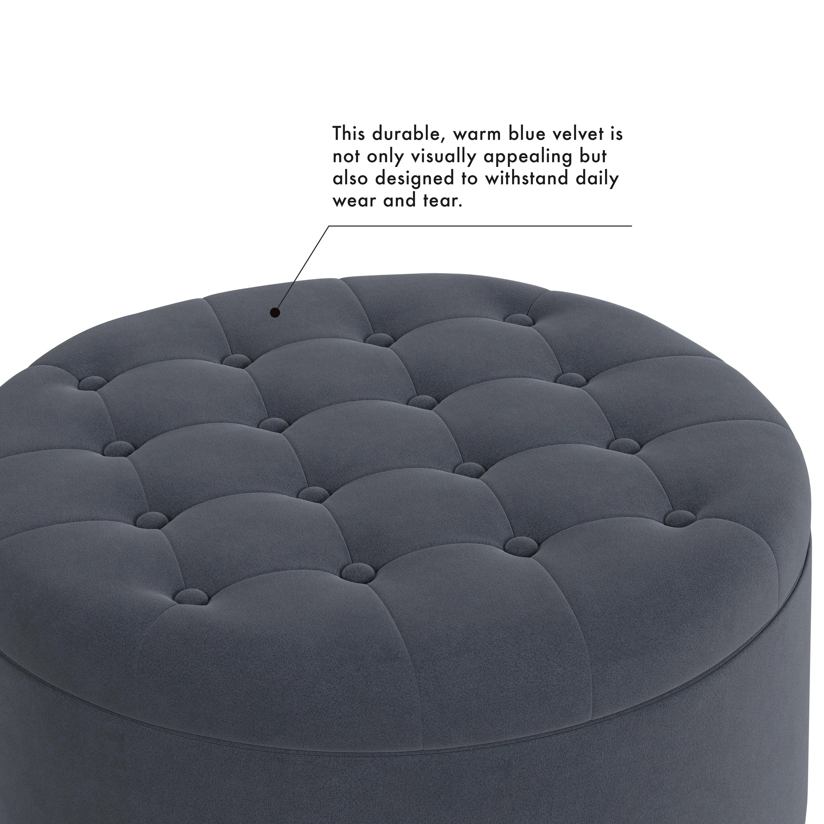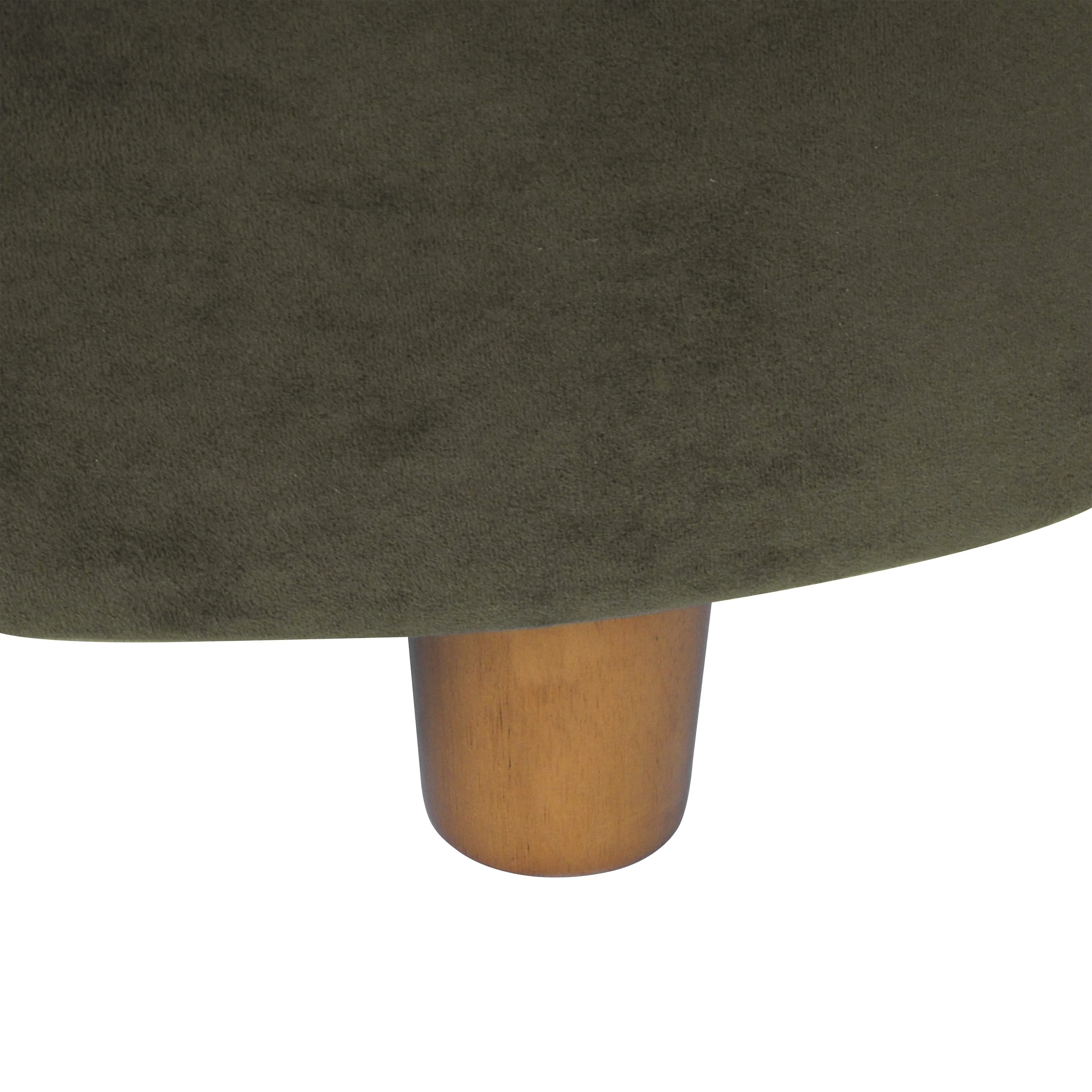 Our large round ottoman offers interest, seating and a stylish storage solution for everything from blankets to toys. With a button tufted lift off lid this modern ottoman has a relaxed feel. Enjoy in your living room as a pair or in front of an accent chair for a comfortable seating arrangement. This storage ottoman with a lift off top and honey oak finished legs is easy to assemble and maintain.