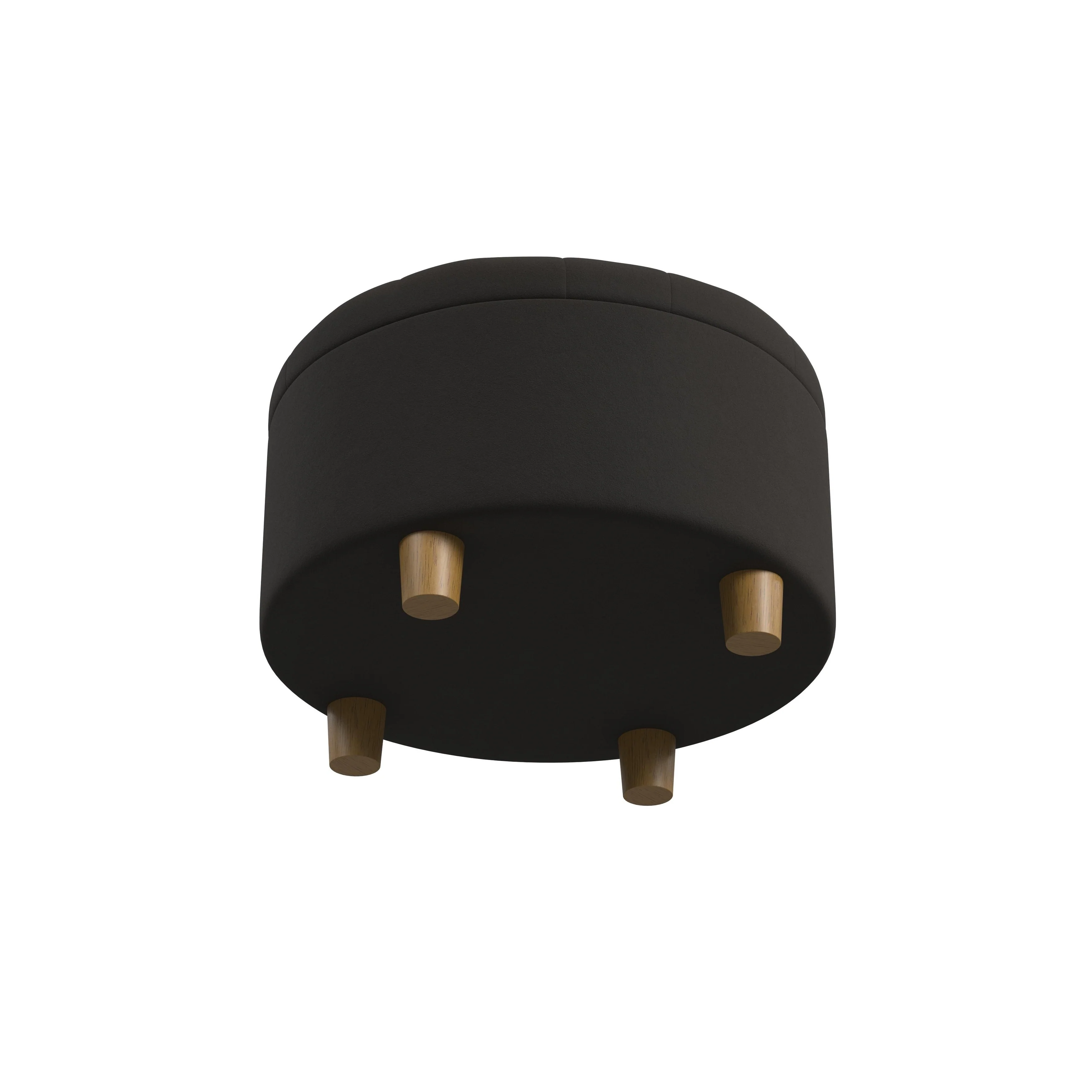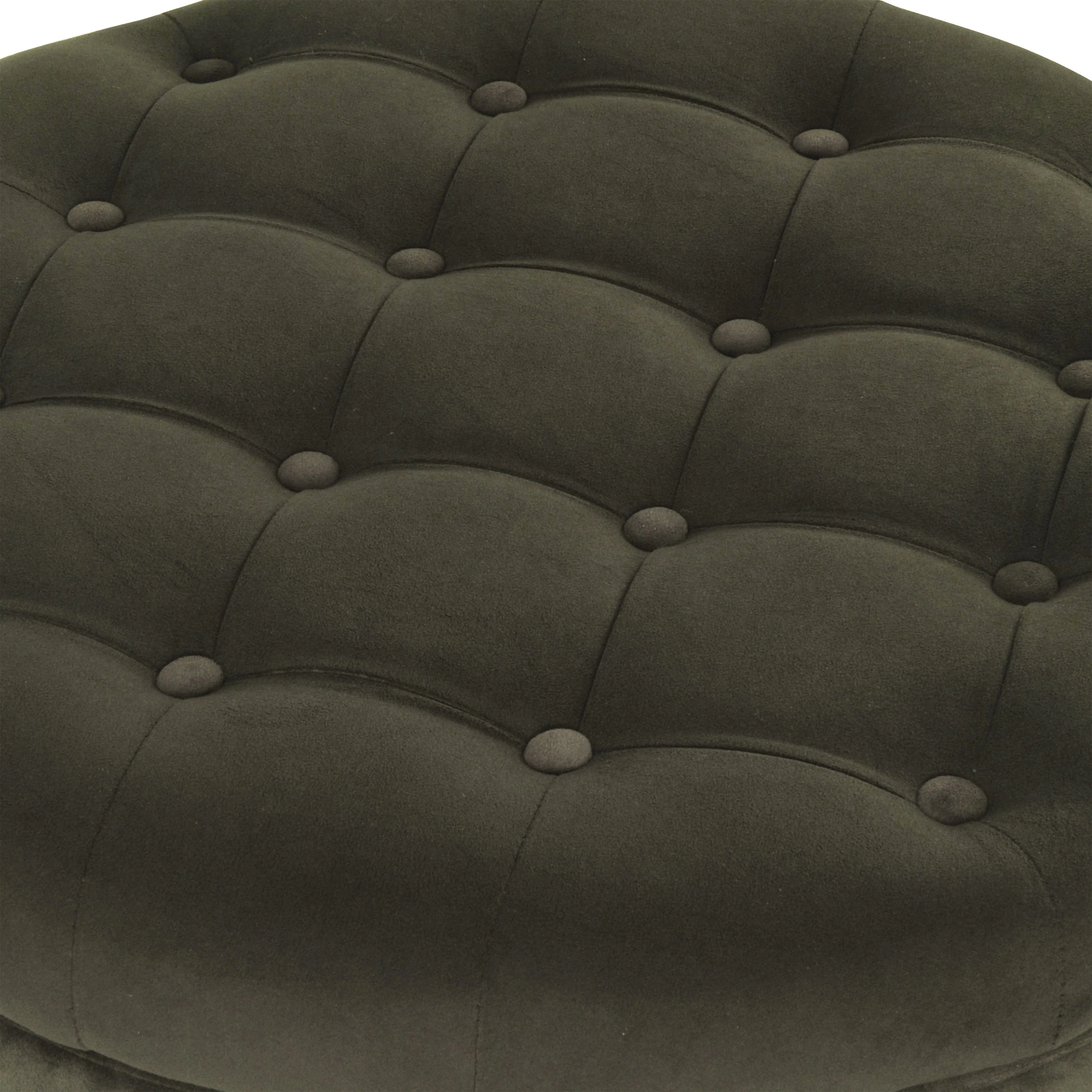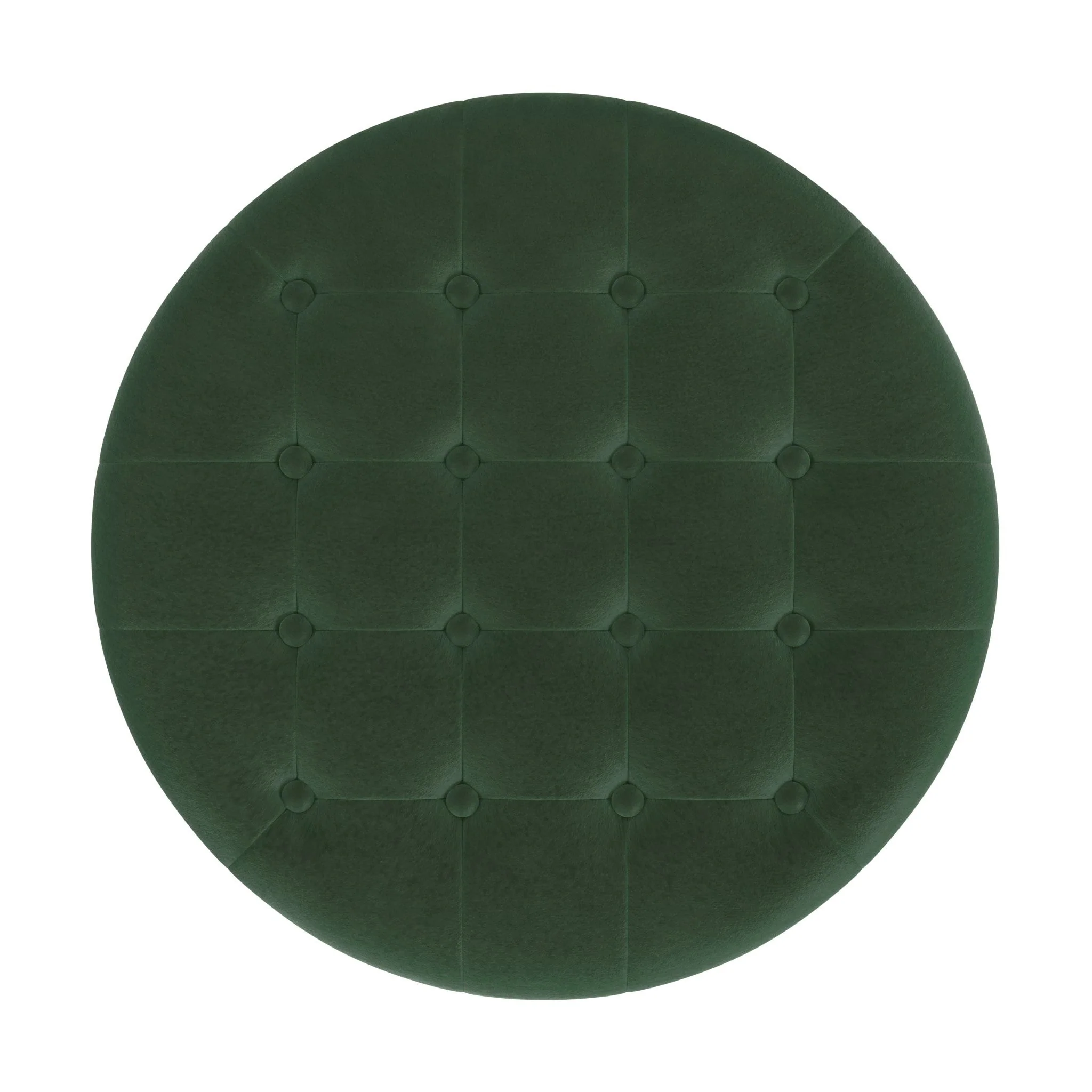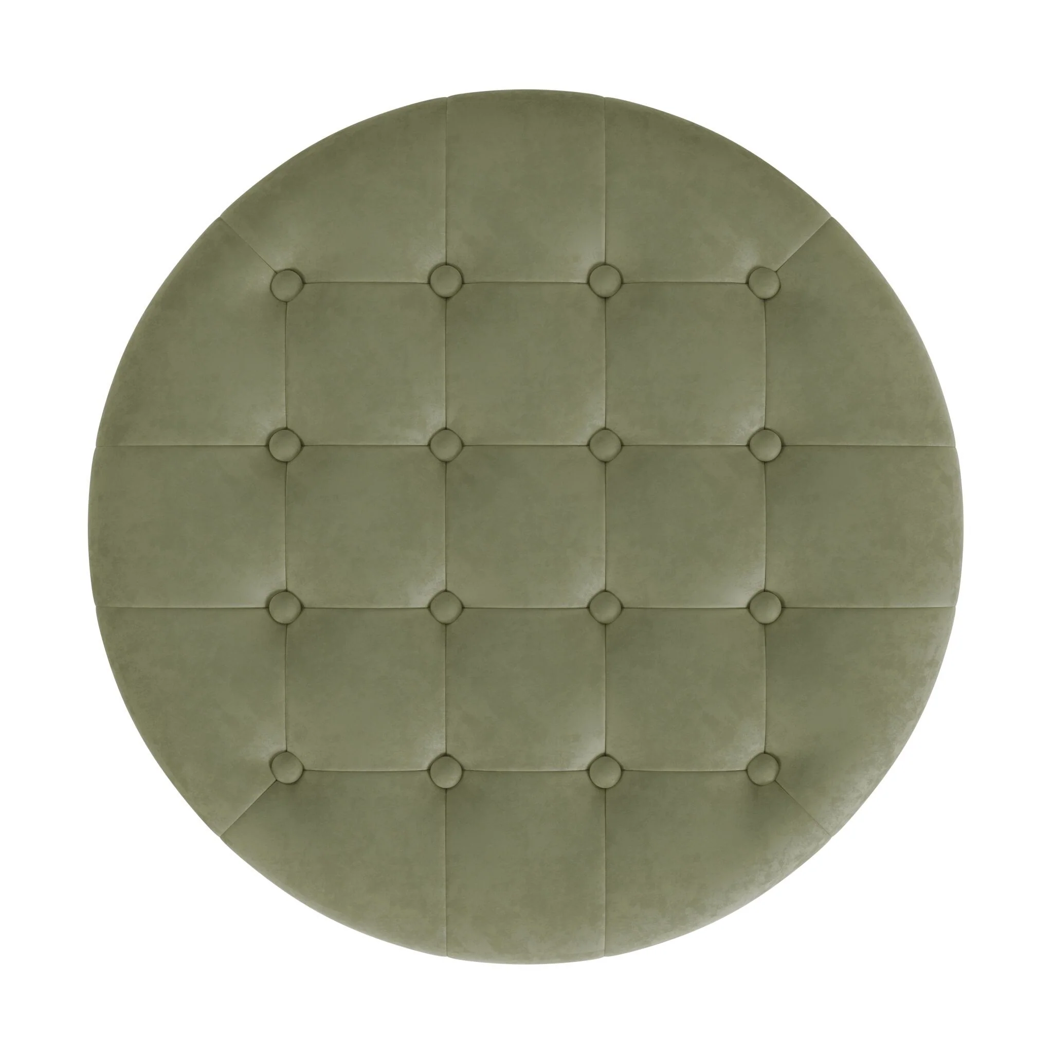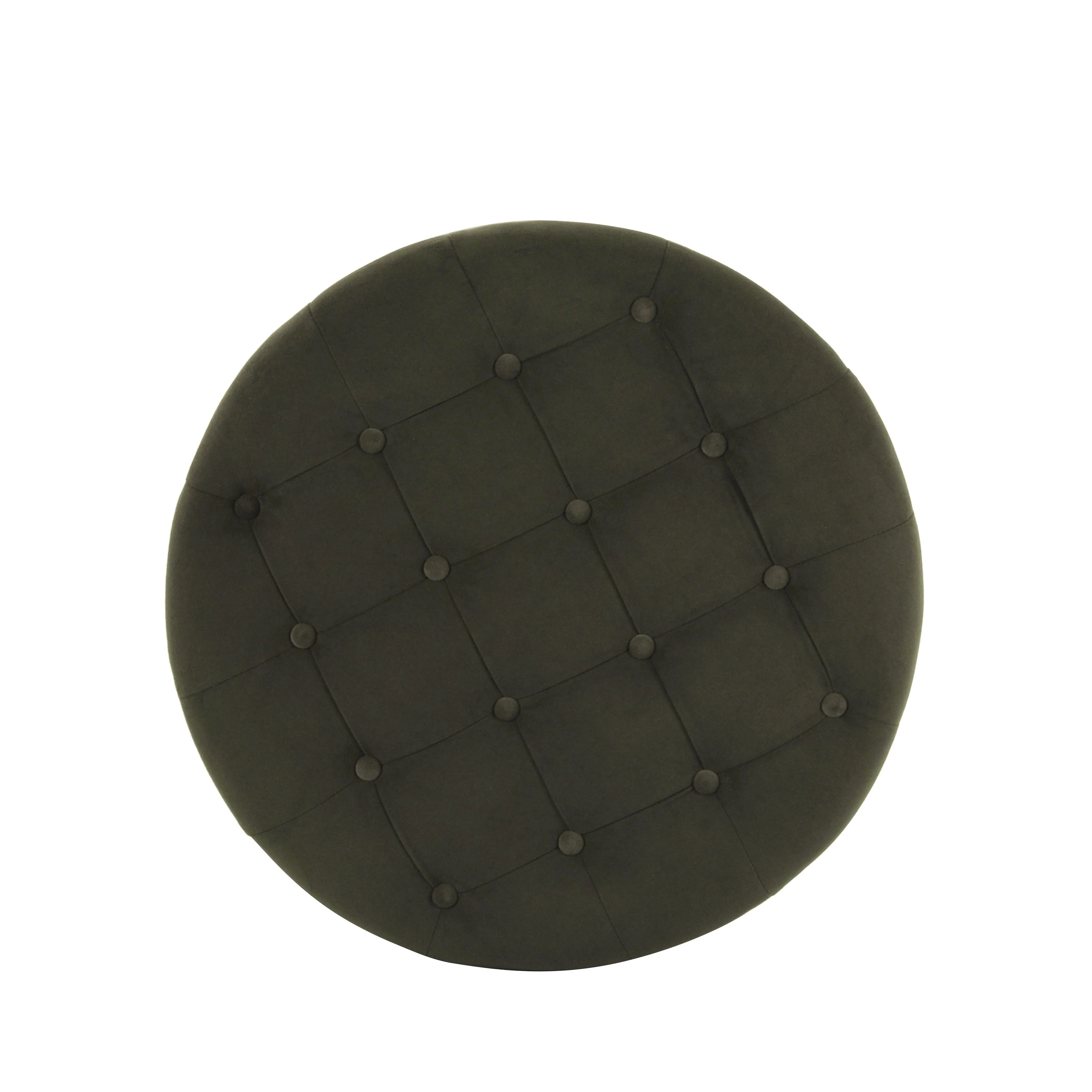Our large round ottoman offers interest, seating and a stylish storage solution for everything from blankets to toys. With a button tufted lift off lid this modern ottoman has a relaxed feel. Enjoy in your living room as a pair or in front of an accent chair for a comfortable seating arrangement. This storage ottoman with a lift off top and honey oak finished legs is easy to assemble and maintain.