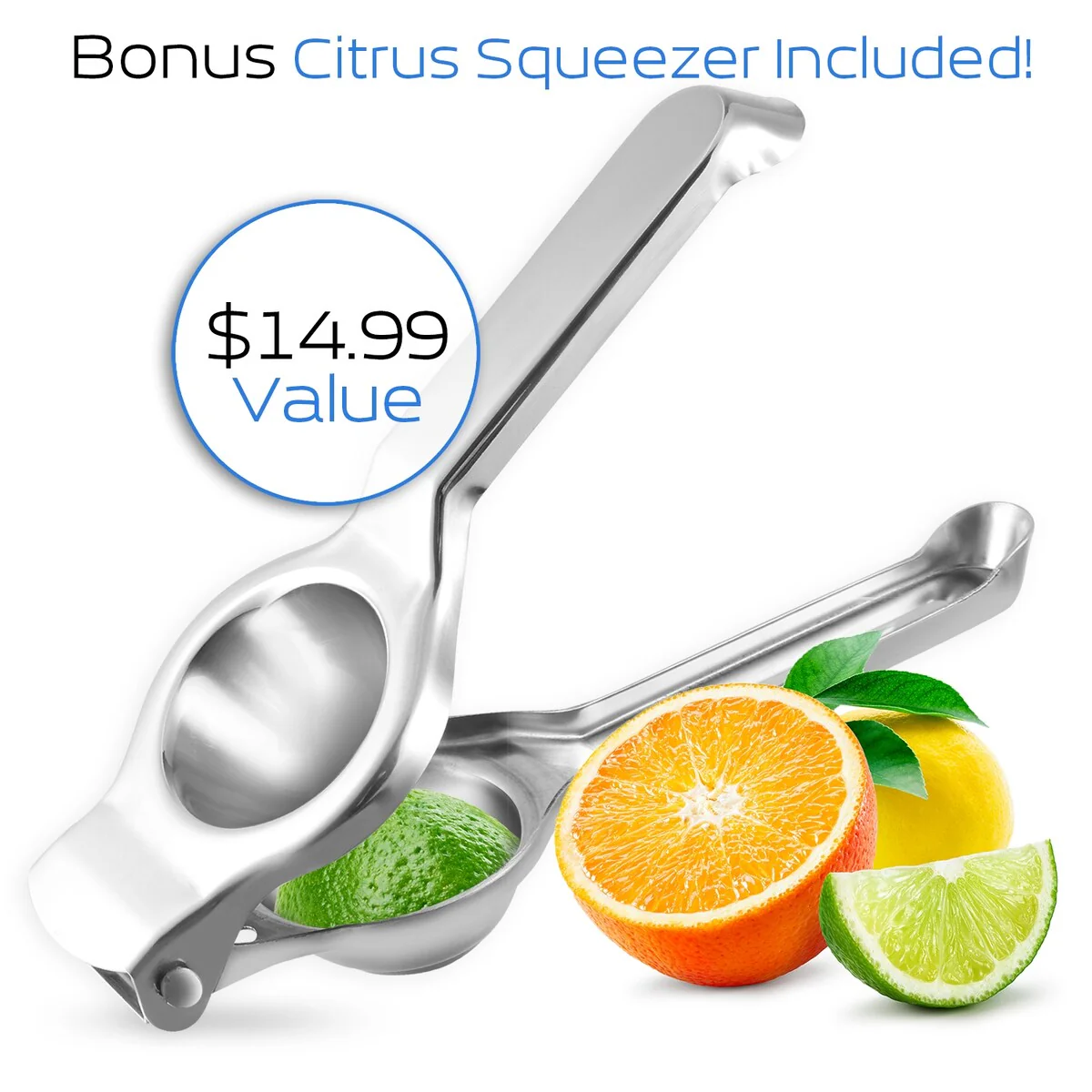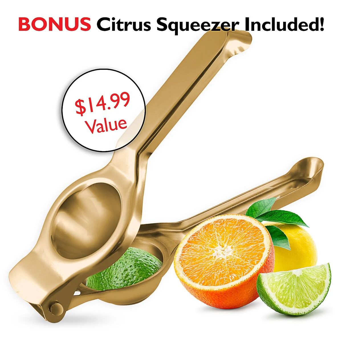 - 16 Piece + Stand Set: 6 Rubber Pourers, 2 Shot Glasses 3oz, Cobbler Shaker with Strainer Cover (26oz), Double Jigger (0.5oz & 1oz), Flat 2-Sidded Bottle Opener, Hand-Held Citrus Squeezer, Bar Spoon (also serves as a Muddler), Hawthorne Strainer, Organized Stand and Cocktail Recipe Book.