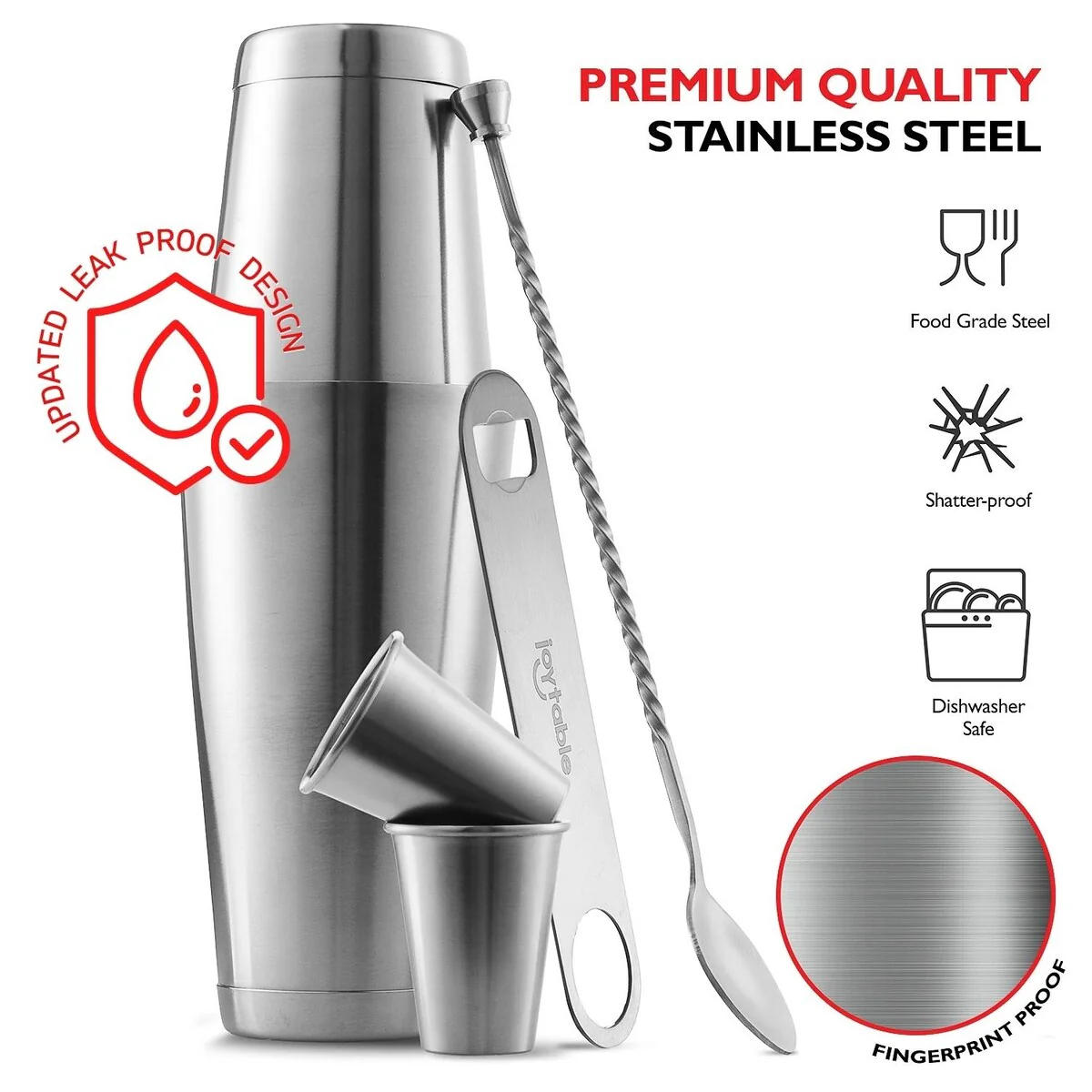 Are you ready to set up the home bar set of your dreams? Create your favorite drinks in style with this beautiful, affordable martini shaker set. Our professional bar tools are crafted with top-quality, commercial-grade stainless steel, featuring a sleek, mirrored finish. Rustproof and dishwasher safe, this restaurant-quality bartending kit is durable, reliable, and built to last!