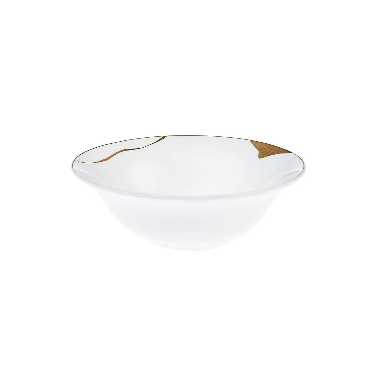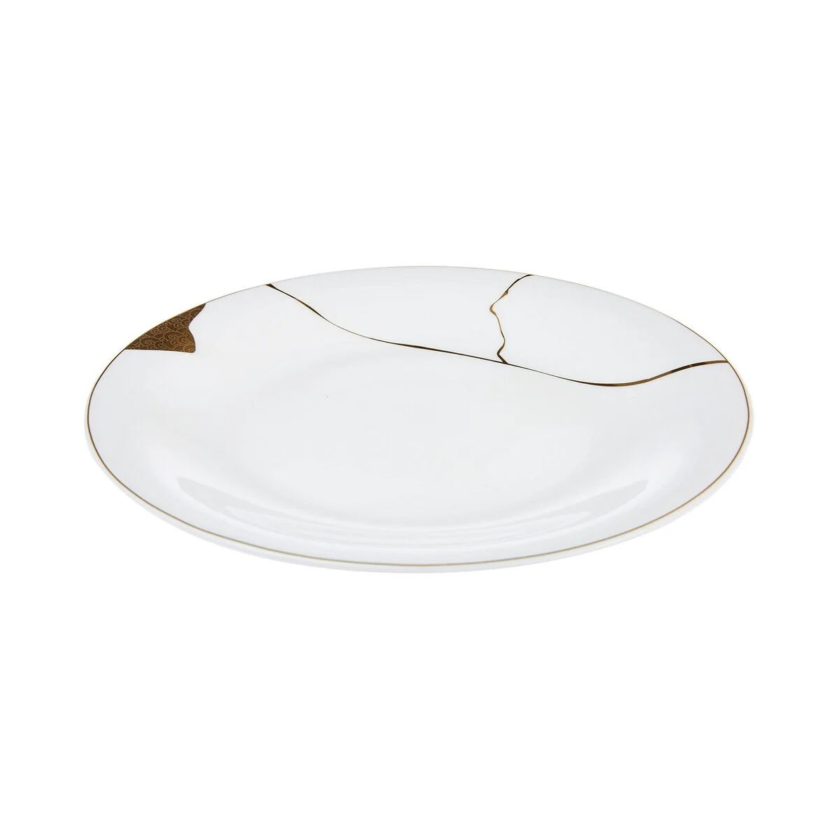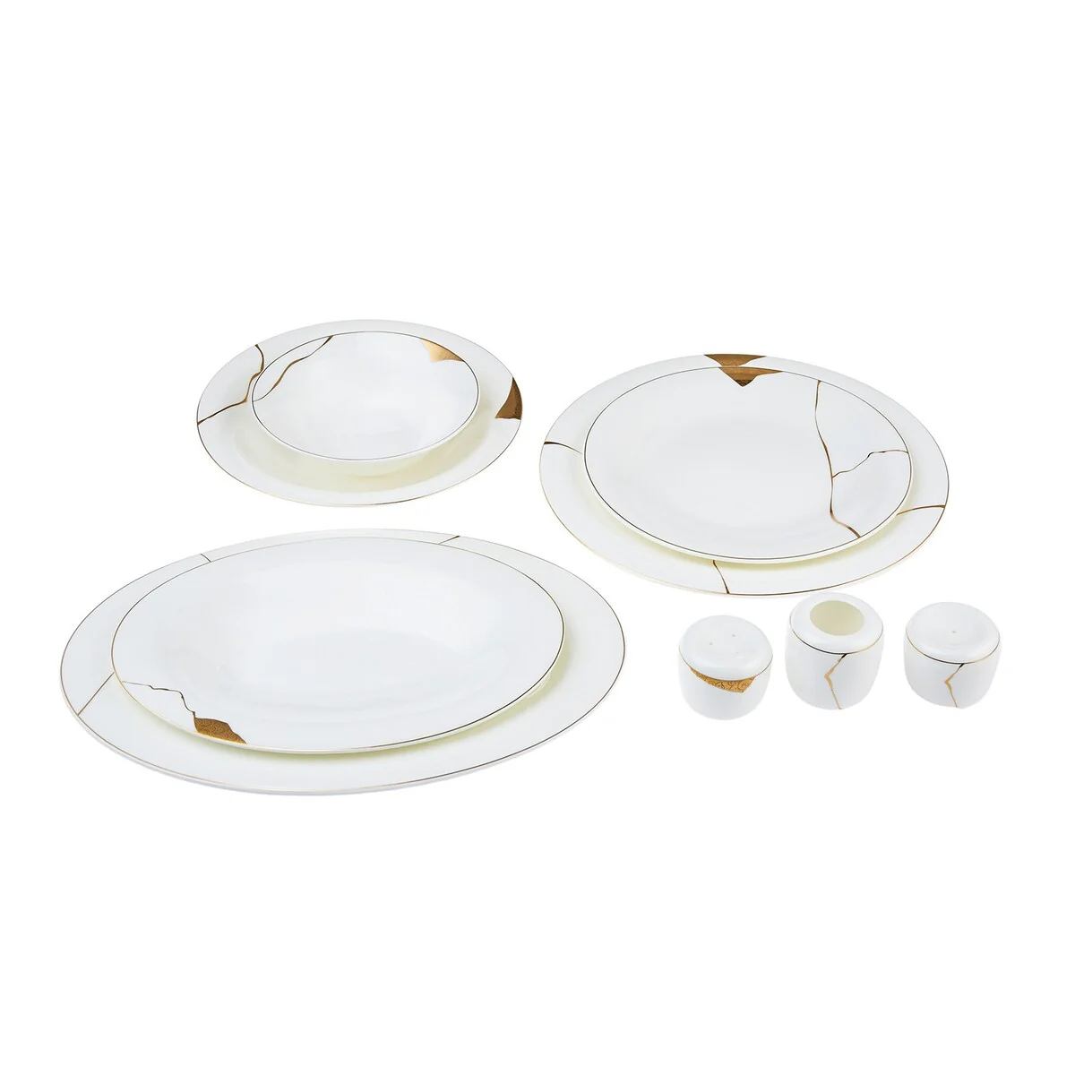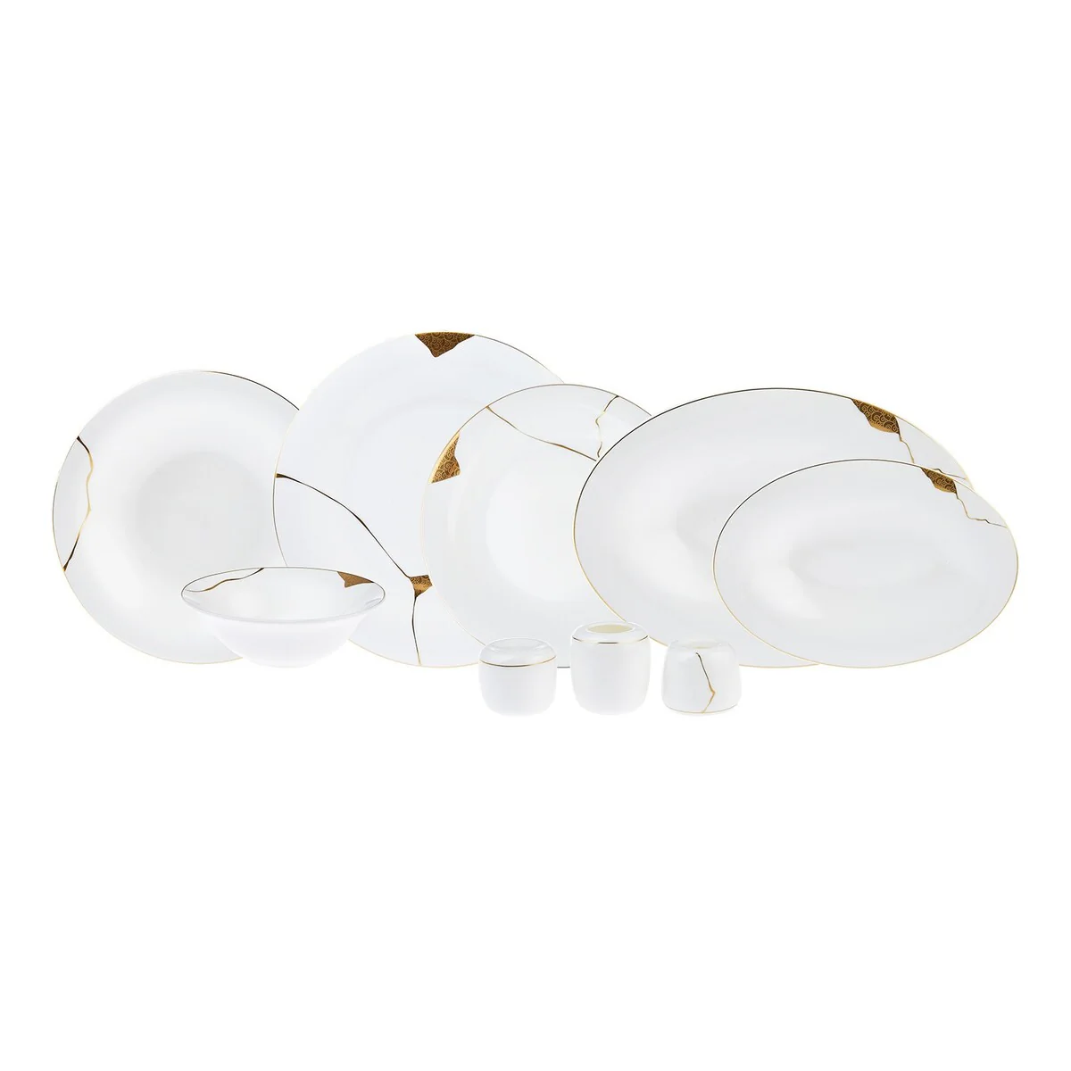 Upgrade your dining experience with Karaca Karat Fine Pearl Dinnerware Set of 58 for 12 guests. This unique and patented set features Karat gold on pearl white bone china, elegantly designed with round forms and graceful gold broken patterns. The set contains 12 serving plates, dinner plates, cake plates/dessert deep plates, and bowls, along with small and large boat plates, spice racks, and soup bowls for a complete presentation. Made of high-grade new bone china and real pearl powder, this eco-friendly and safe product is durable and lightweight. The gilding is maintained with firing twice at a special temperature.