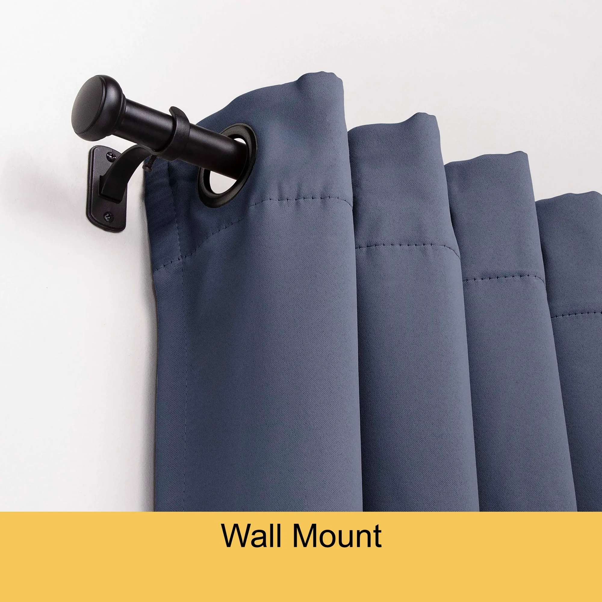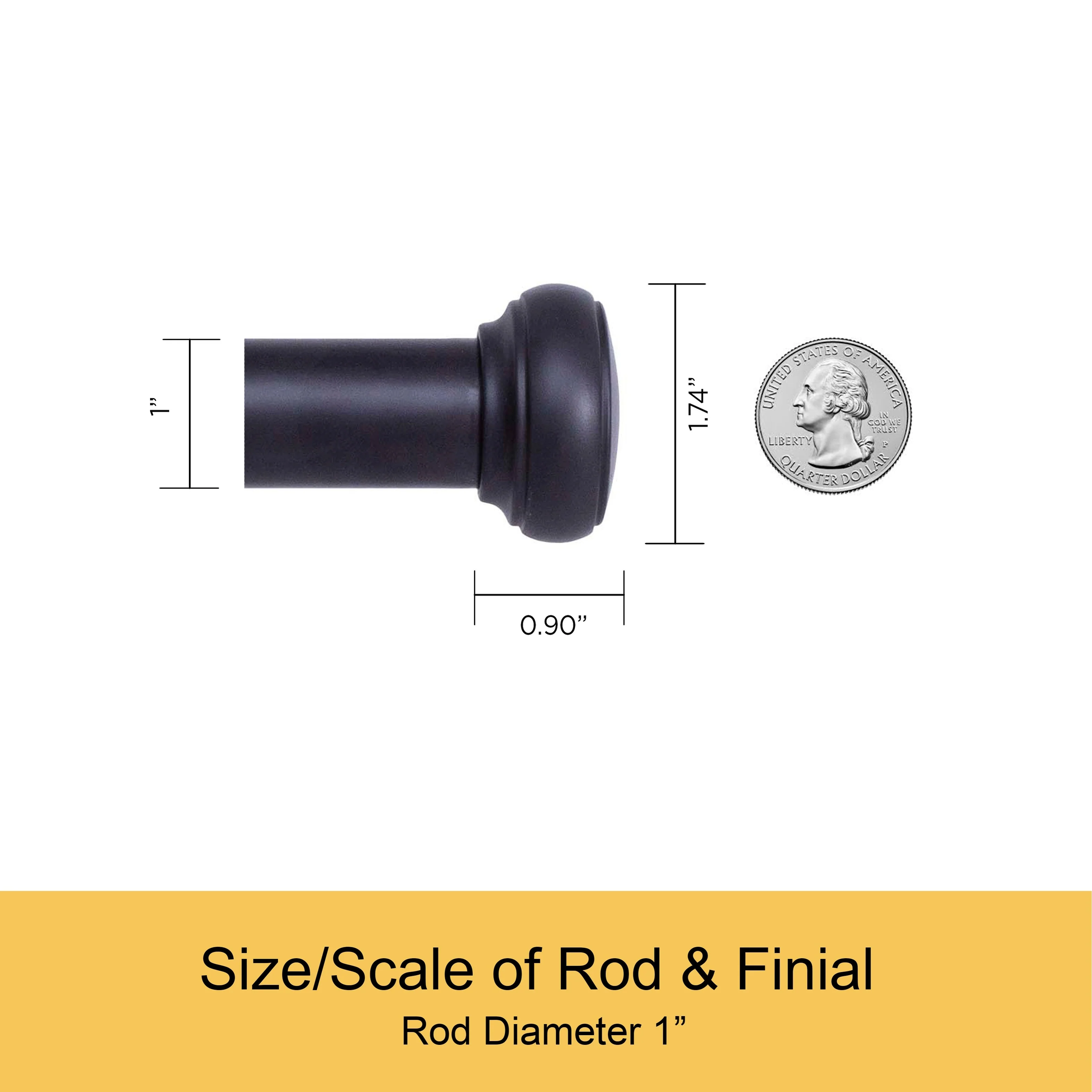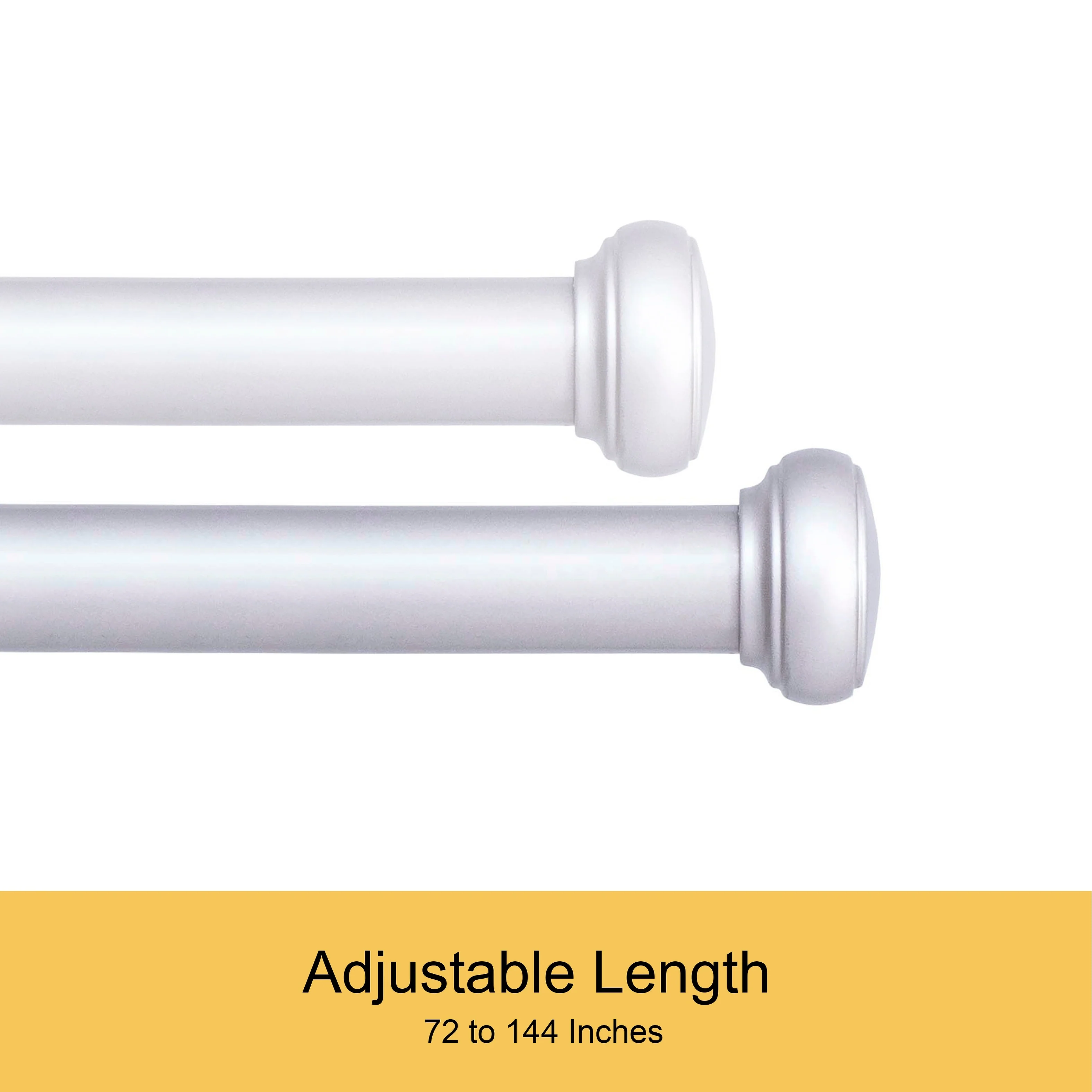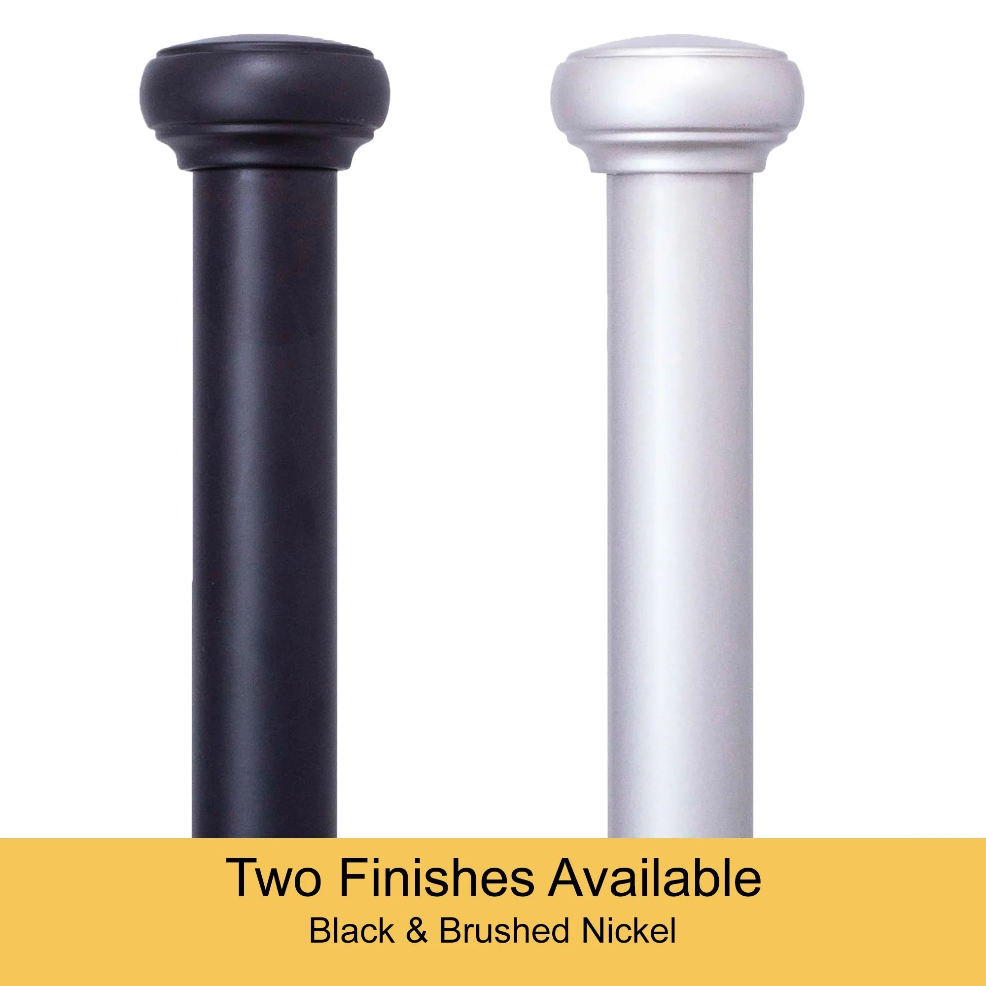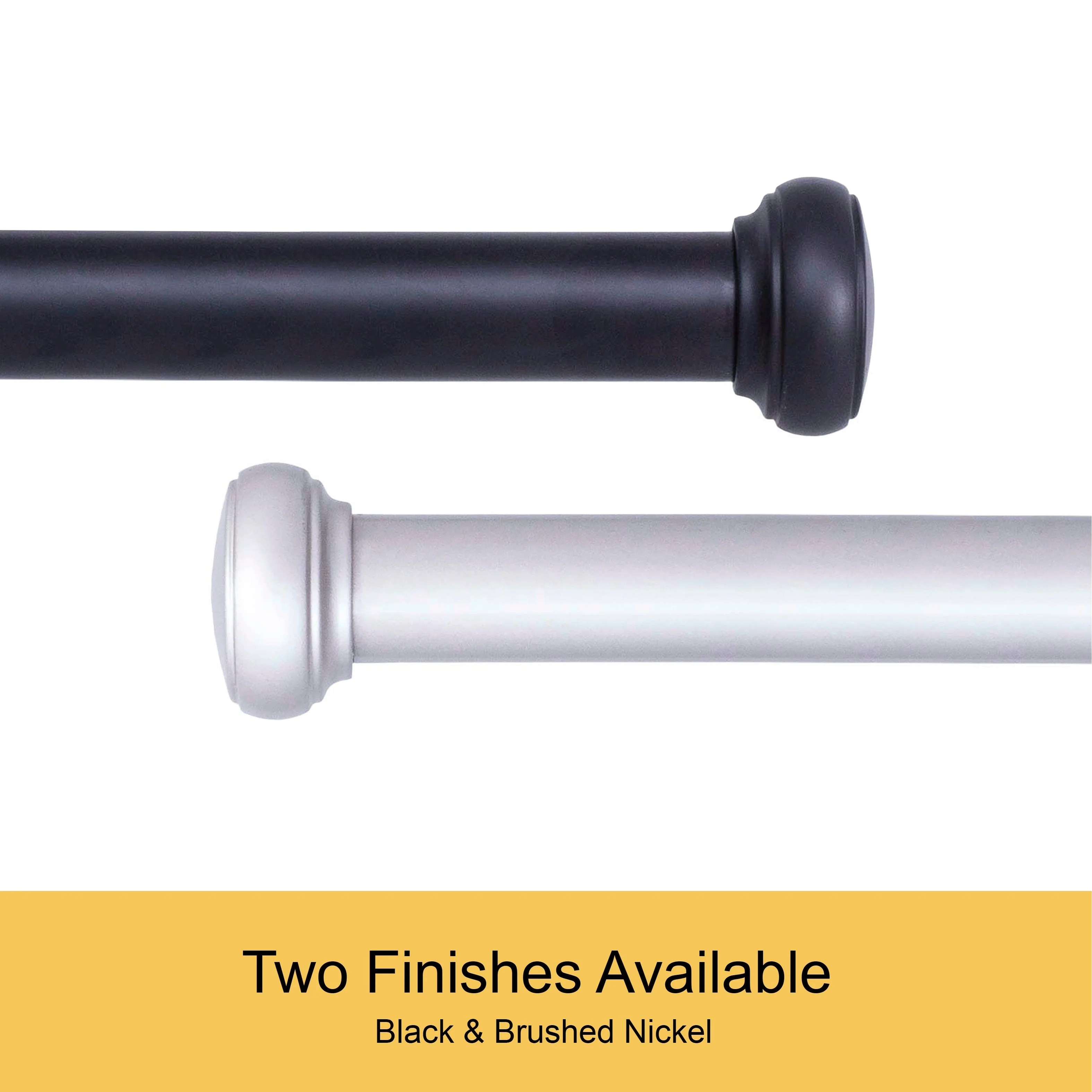 Add a touch of style inside or outside of your home with the Weaver Indoor/Outdoor Rust-Resistant Curtain Rod by Kenney.The 1 inch diameter Weaver curtain rod has a rust-resistant coating and secure brackets, making this an ideal solution for inside or outside your home. Ceiling or wall mount this rod on larger windows, in larger rooms, on your deck, or in a pergola to hang light to heavyweight curtains. The telescoping rod adjusts to fit your window and projects 3.4 inches from the wall. It is ideal for hanging curtains with pockets, grommets, back tabs, and tab tops, but can also be used with clip rings. Available in two adjustable lengths of 37-72 inches and 72-144 inches. Available in two finishes black and brushed nickelDrapery Hardware Set Includes: one telescoping steel curtain rod with decorative metal finials (0.9" L x 1.74" W x 1.74" H), two mounting brackets, one center support, screws, drywall anchors, and installation instructions.