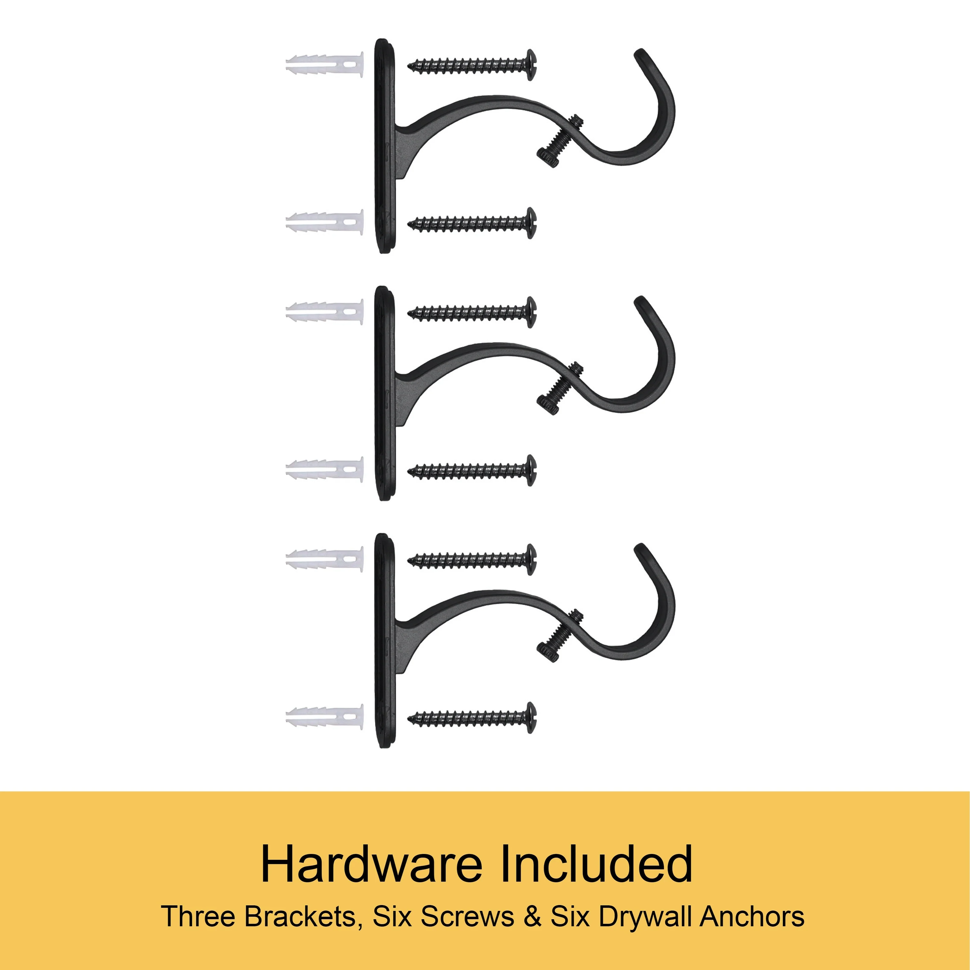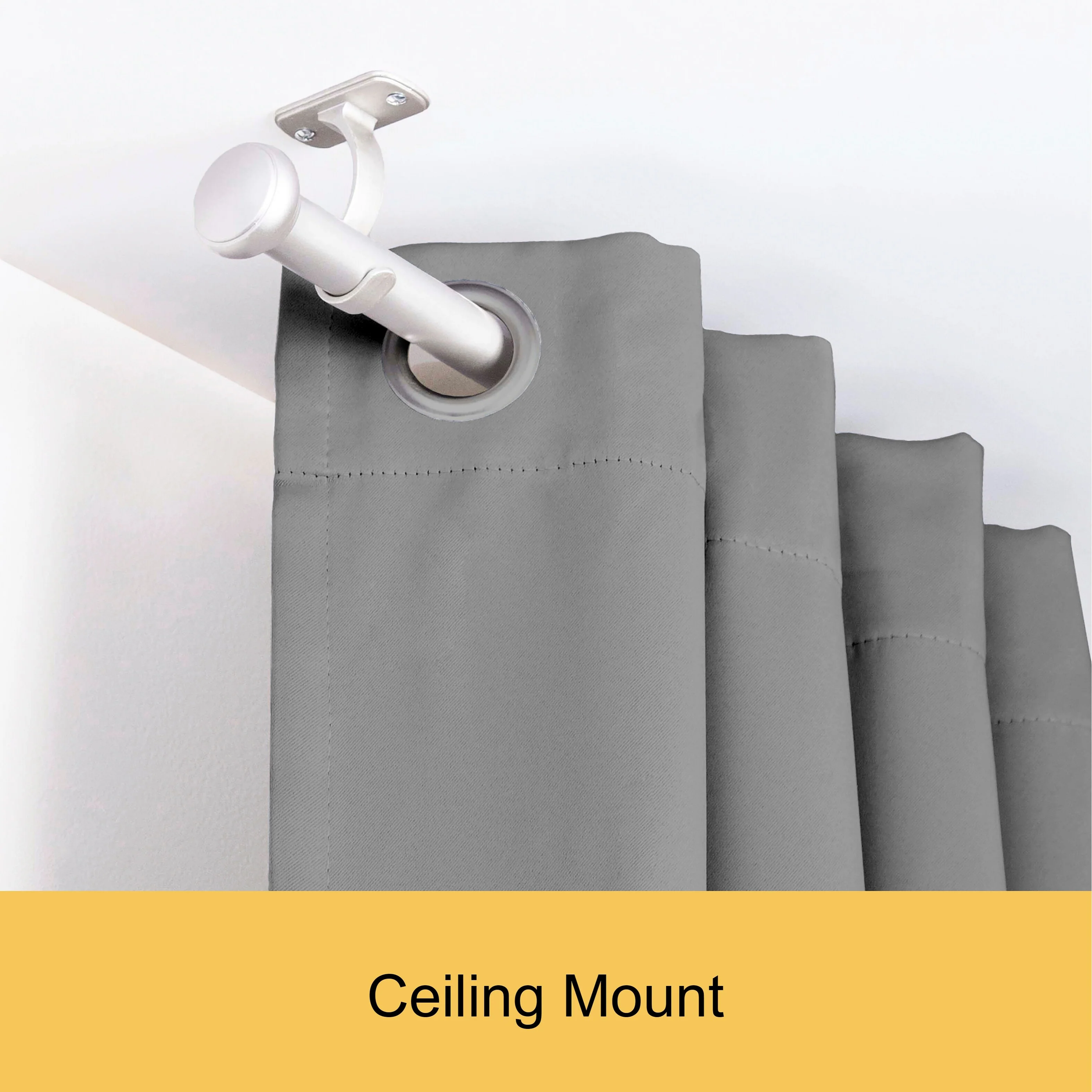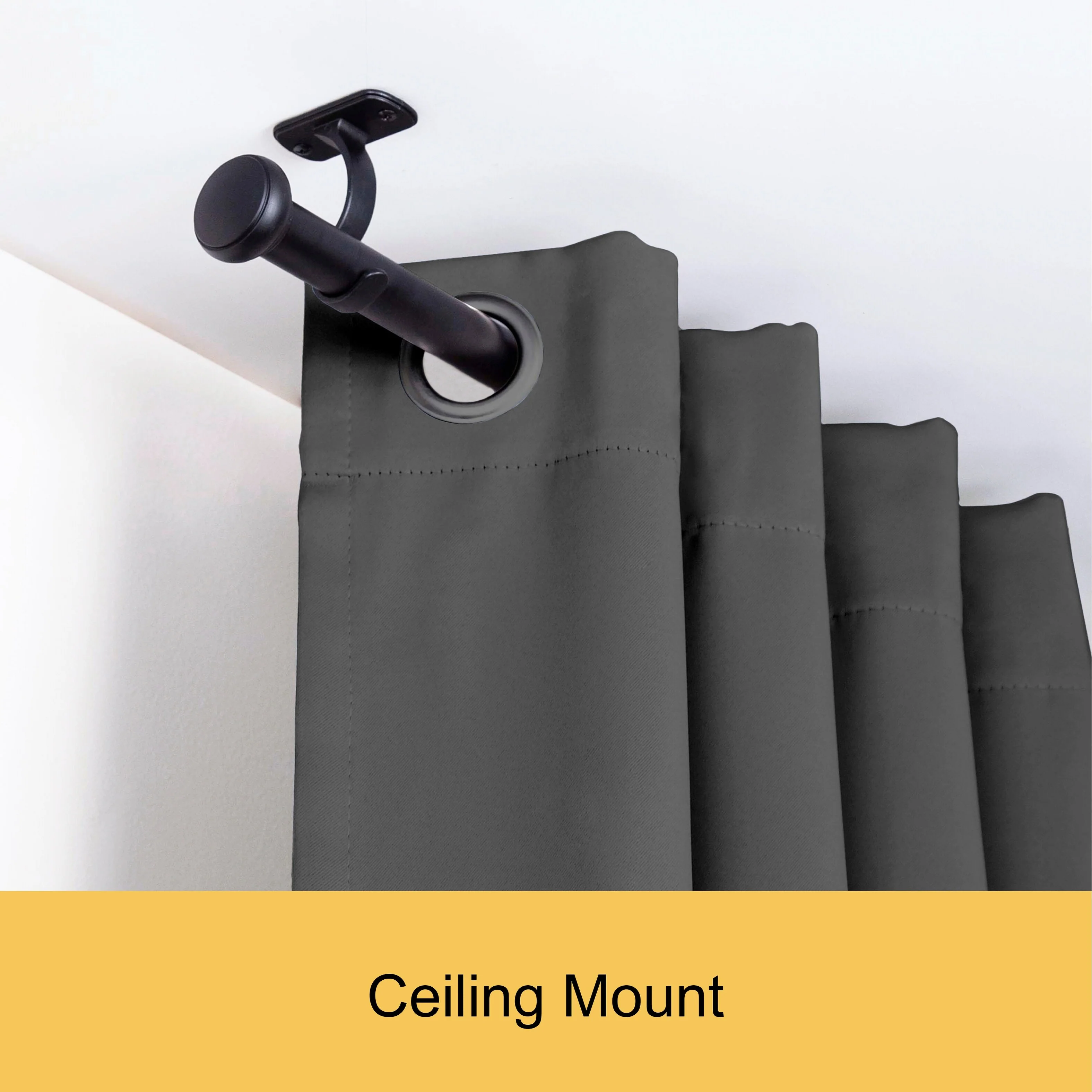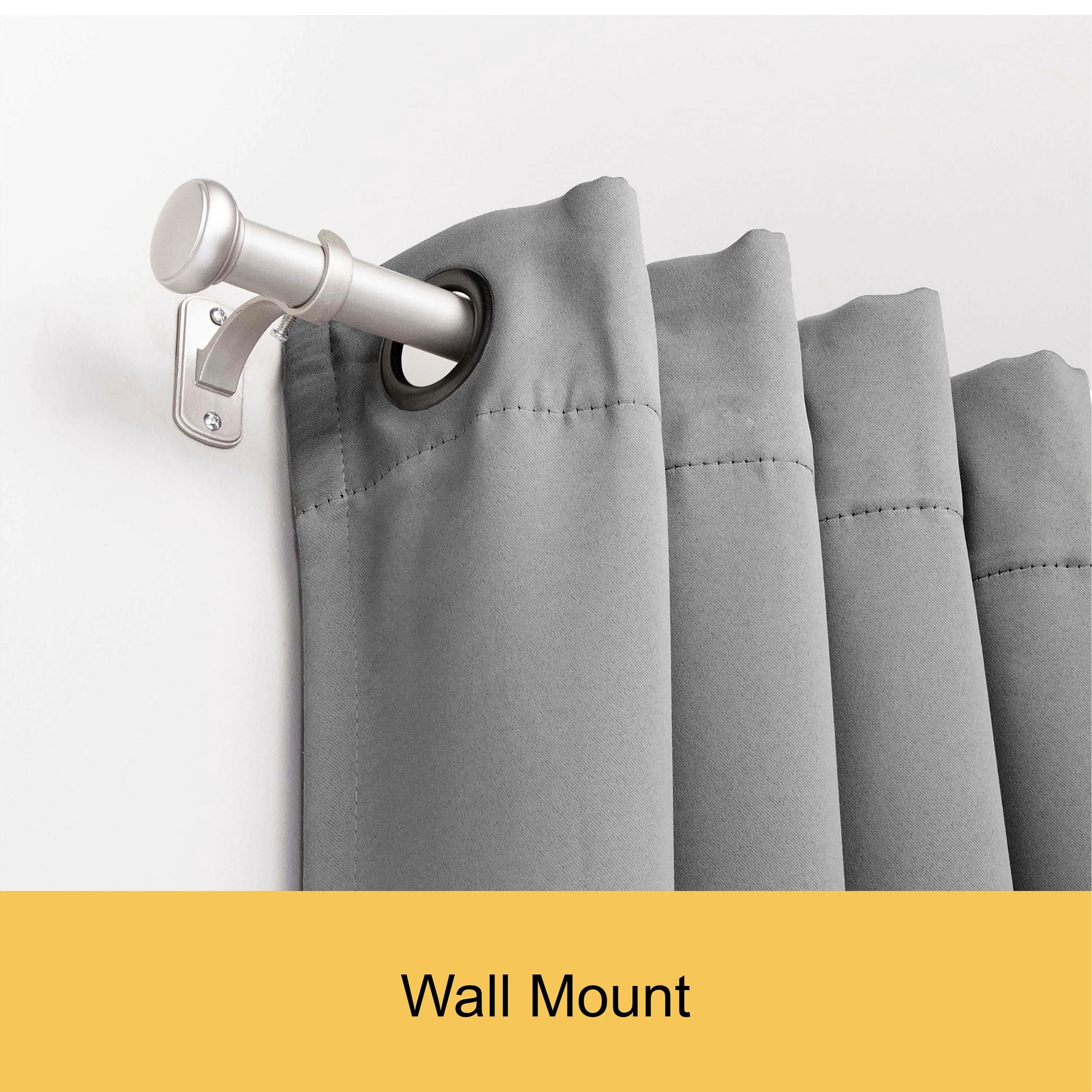 Add a touch of style inside or outside of your home with the Weaver Indoor/Outdoor Rust-Resistant Curtain Rod by Kenney.The 1 inch diameter Weaver curtain rod has a rust-resistant coating and secure brackets, making this an ideal solution for inside or outside your home. Ceiling or wall mount this rod on larger windows, in larger rooms, on your deck, or in a pergola to hang light to heavyweight curtains. The telescoping rod adjusts to fit your window and projects 3.4 inches from the wall. It is ideal for hanging curtains with pockets, grommets, back tabs, and tab tops, but can also be used with clip rings. Available in two adjustable lengths of 37-72 inches and 72-144 inches. Available in two finishes black and brushed nickelDrapery Hardware Set Includes: one telescoping steel curtain rod with decorative metal finials (0.9" L x 1.74" W x 1.74" H), two mounting brackets, one center support, screws, drywall anchors, and installation instructions.