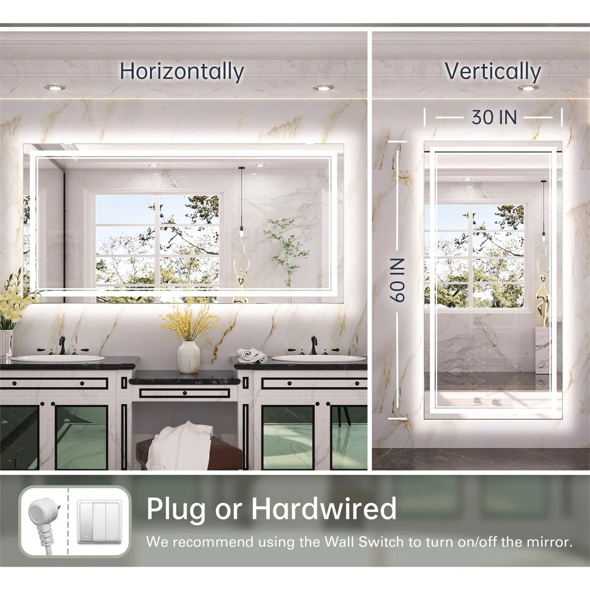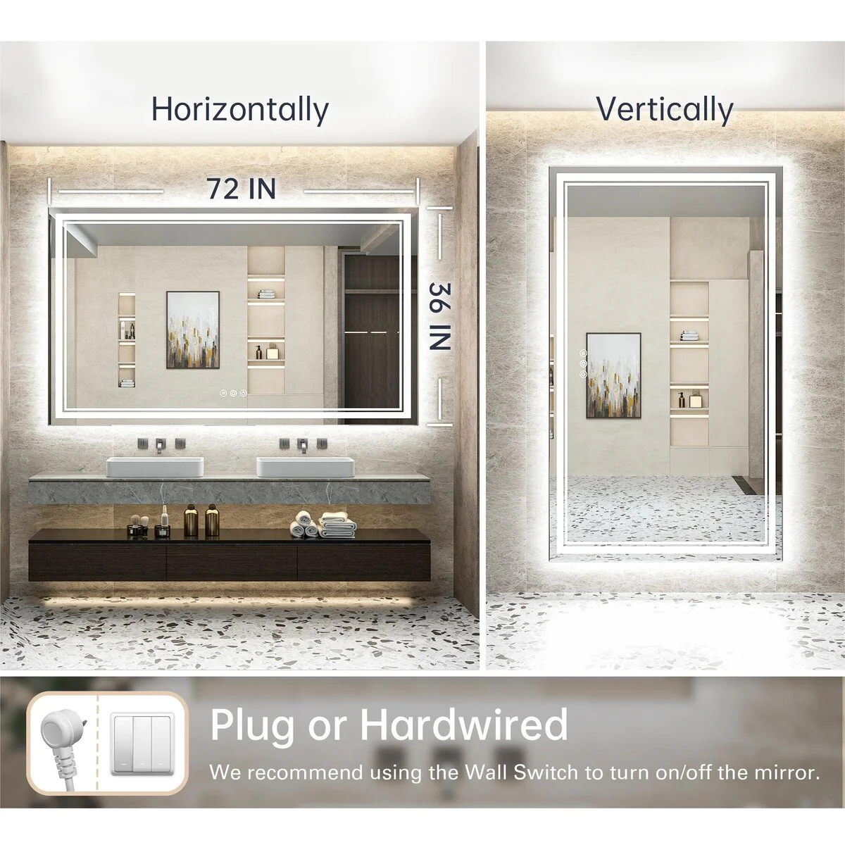 - [Meet Different Size Need] Various size option that can perfect match your plan. It can be hang horizontally or vertically. Suitable for bathroom, bedroom, or dressing room, which can enhance the functionality and aesthetics of the space.