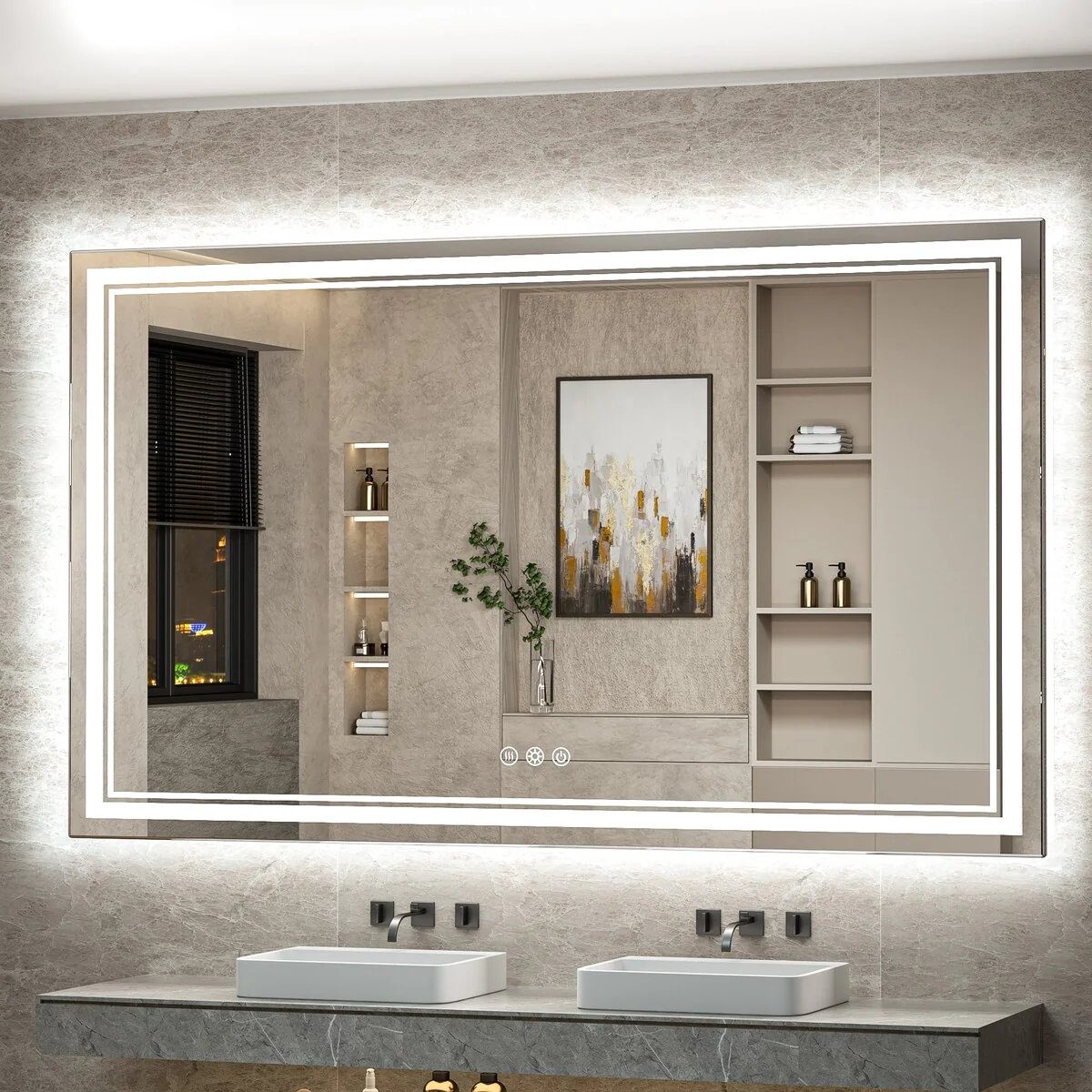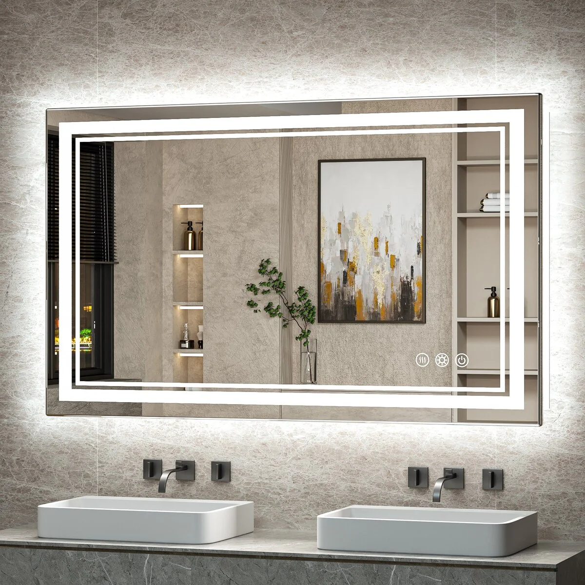 - [Backlit & Front light] With two high-density light strips, Keonjinn's upgraded LED bathroom mirror provides both ultra-bright front light and back light. With unique three light modes designed for UL/FCC certified LED drivers, you can turn on only the backlight independently as ambient light, or only the front light to save energy. Get three styles of mirrors at once.