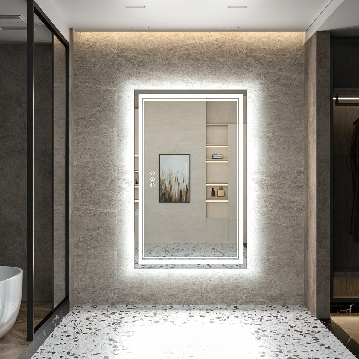 - [Adjustable 3 Color Tempetures & Brightness] LED mirror has three different light modes of 3000K/4500K/6000K, which can meet the lighting needs of different people.