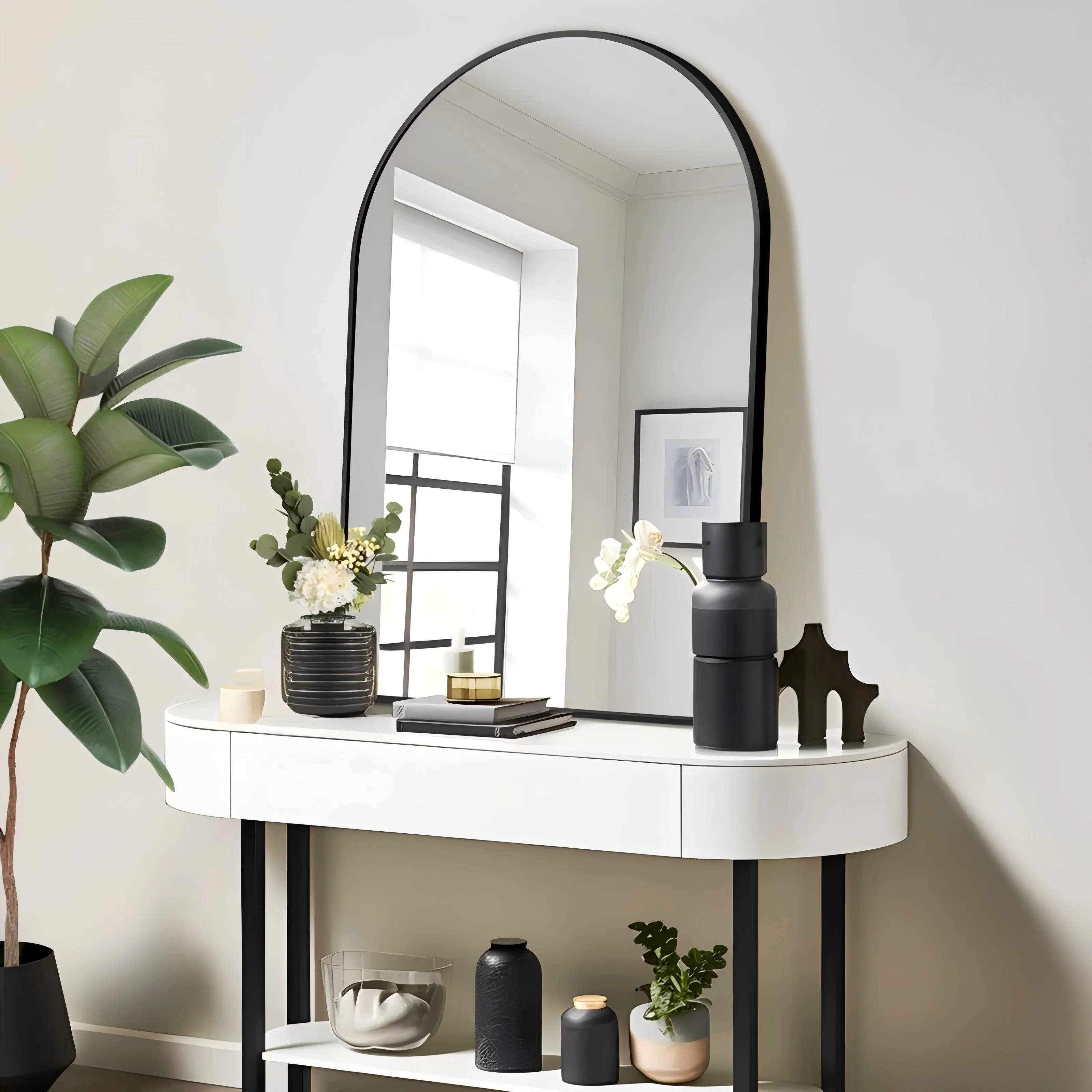 - Clear Reflection & NO Distortion: Our mirror is designed with high-definition float glass to ensure 1:1 restoration of the real image, delivering a clear reflection with no distortion. (Please remove the glass protective film before use.)