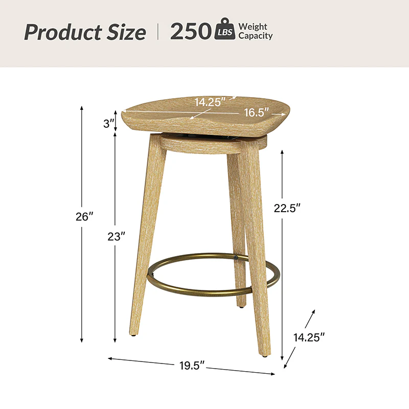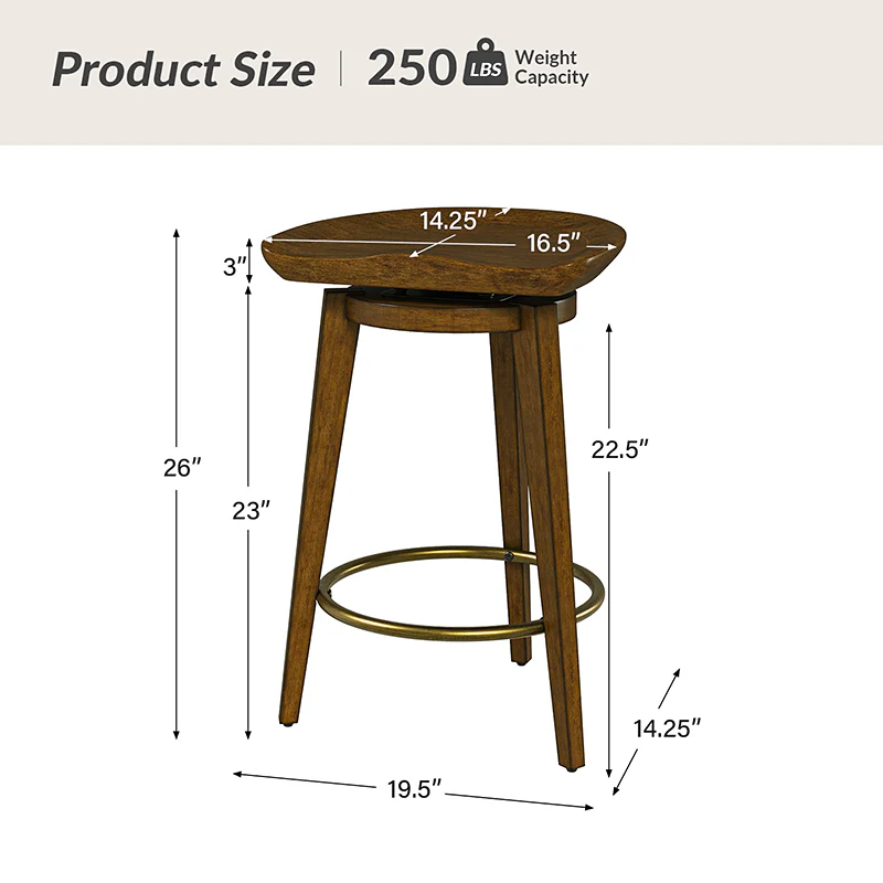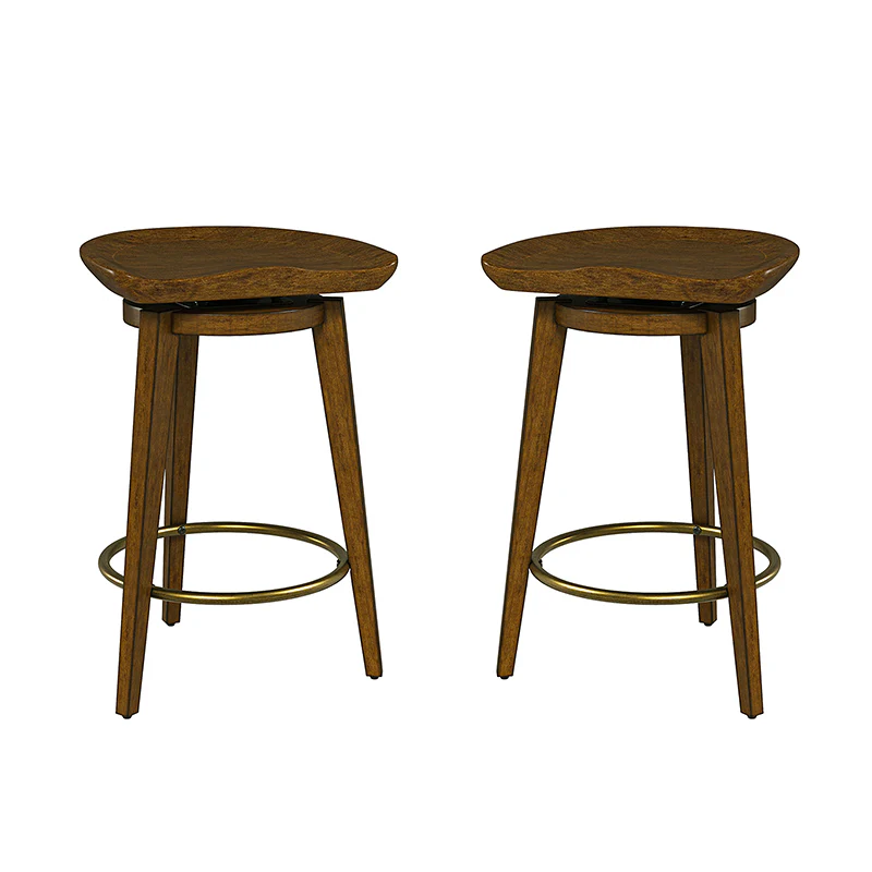 This mid-century modern swivel stool set of 2 seamlessly blends contemporary and mid-century design elements, making it an ideal addition to any dining room or bar counter. Featuring a sleek armless design, the stool set of 2 boasts solid wood legs and a comfortable solid wood seat. The fusion of traditional craftsmanship and modern aesthetics is evident in its construction. The stool set of 2 is further enhanced by a metal footrest, ensuring both style and functionality. With a swivel seat mechanism, it offers a dynamic seating experience, allowing easy movement and accessibility. Elevate your space with this versatile and stylish piece that marries the charm of the medieval era with the sophistication of mid-century modern design.