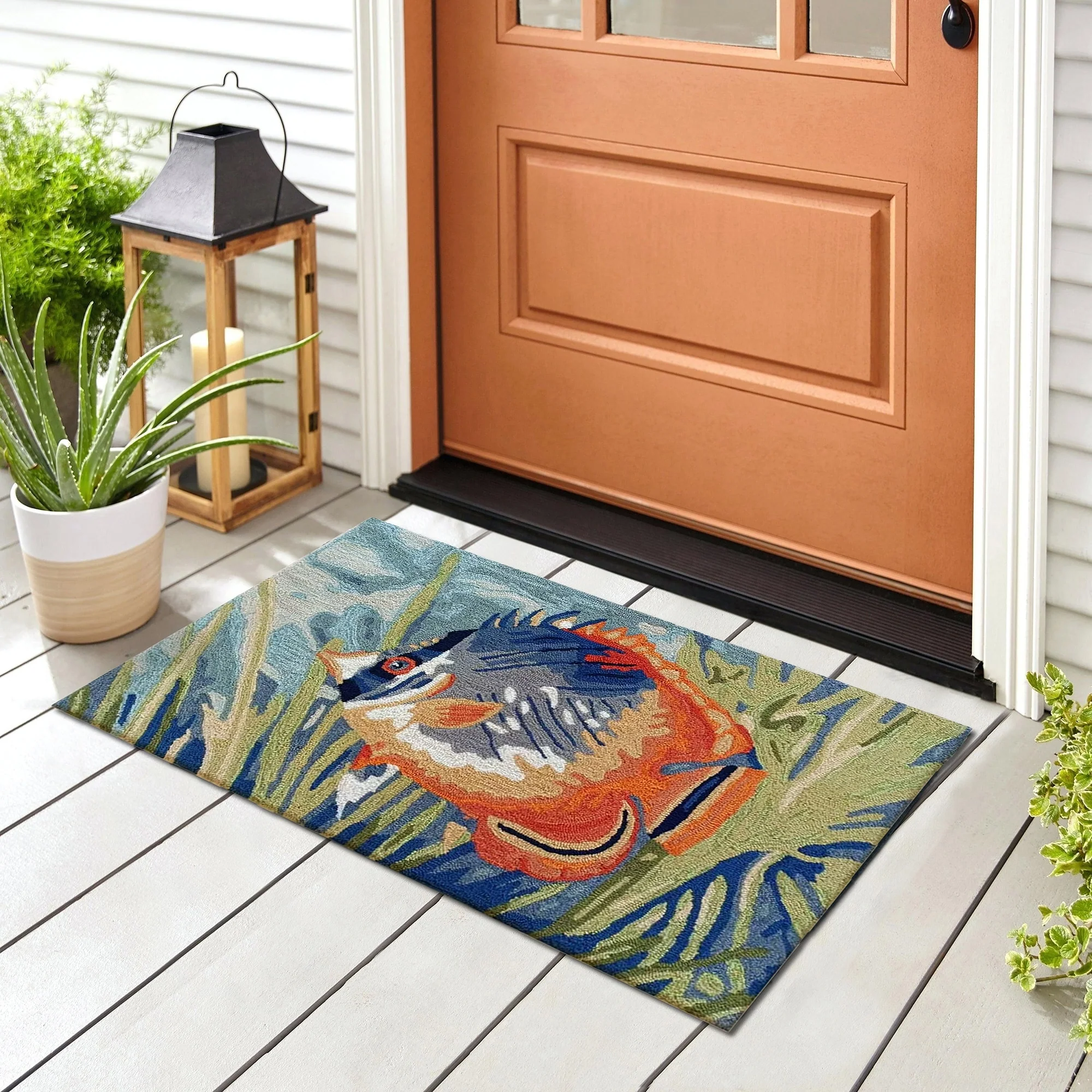 Bring the vibrant colors of the ocean to your indoor or outdoor space with the Liora Manne Ravella Tropical Fish Indoor/Outdoor Rug. Hand-hooked in China from a durable polyester acrylic blend, this flatwoven rug features intricate shading to bring a snapshot of tropical fish in their natural habitat to life. With weather and fade resistance, this rug is perfect for high traffic areas like your kitchen, living room, or patio. Add a touch of nature-inspired design to your home with this expertly hand-tufted area rug.