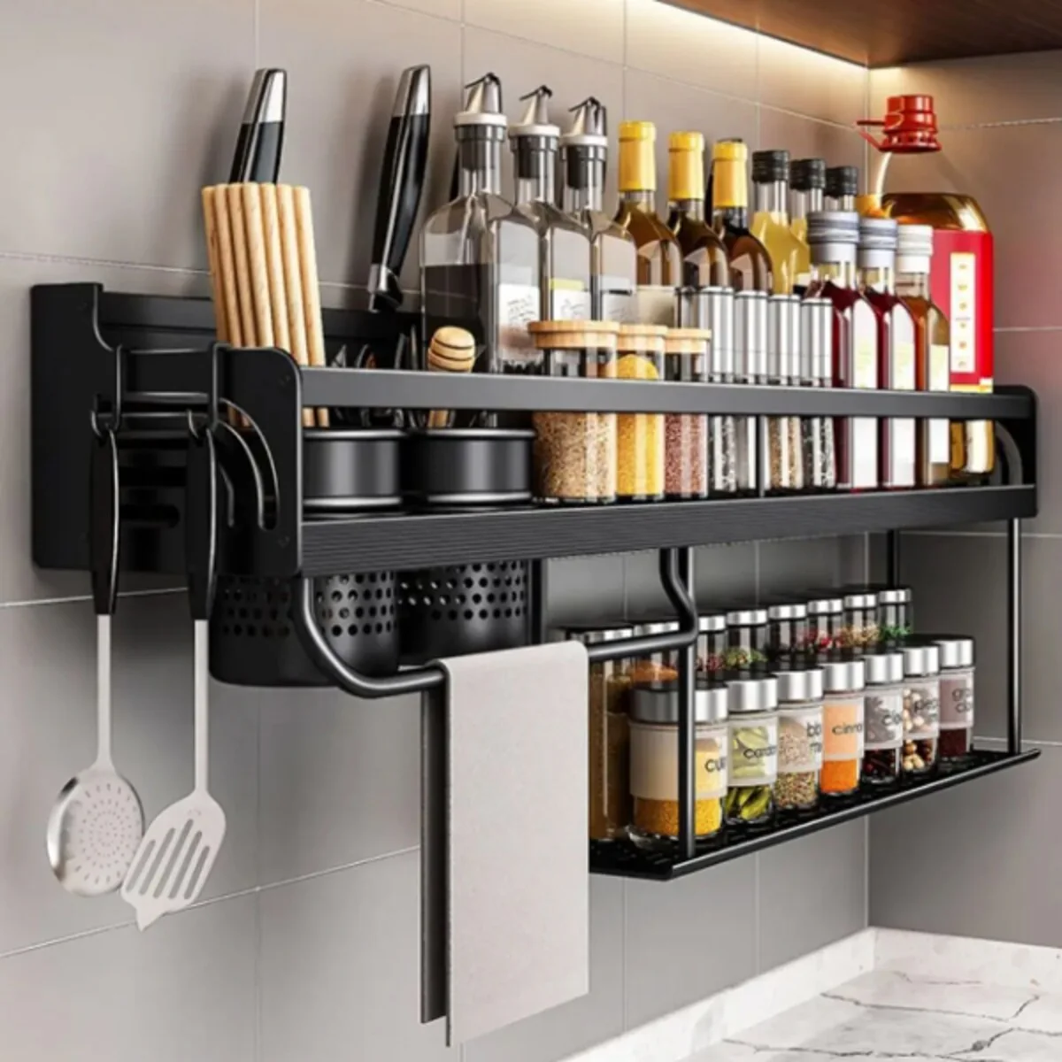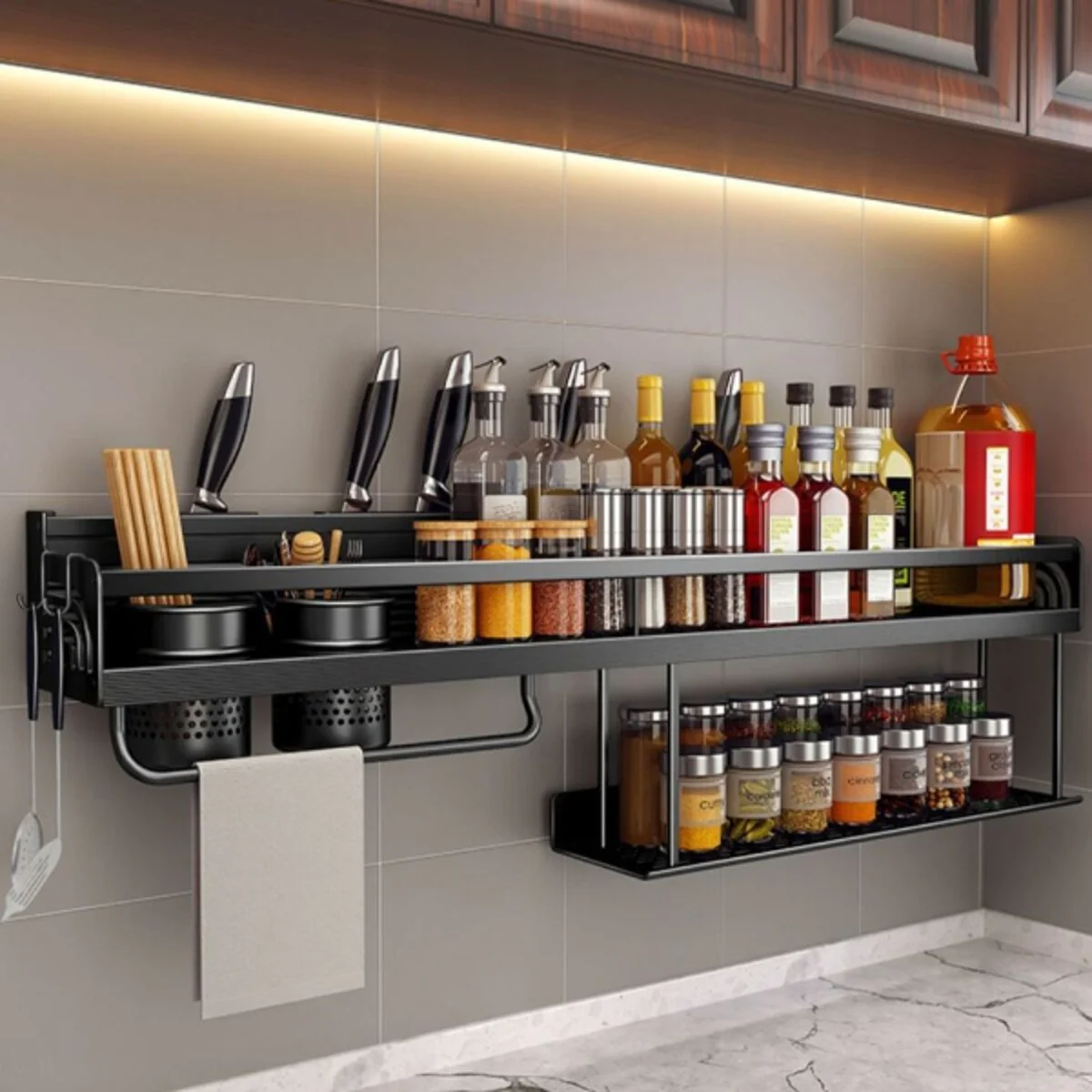 Keep your kitchen organized Access the required item quickly Widened & durable design Non-slip & strong load-bearing Perfect for holding all your kitchen appliances Equipped with a drying pole & multiple hooks Simple two step installation method