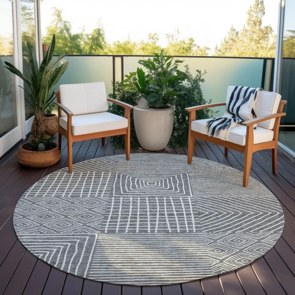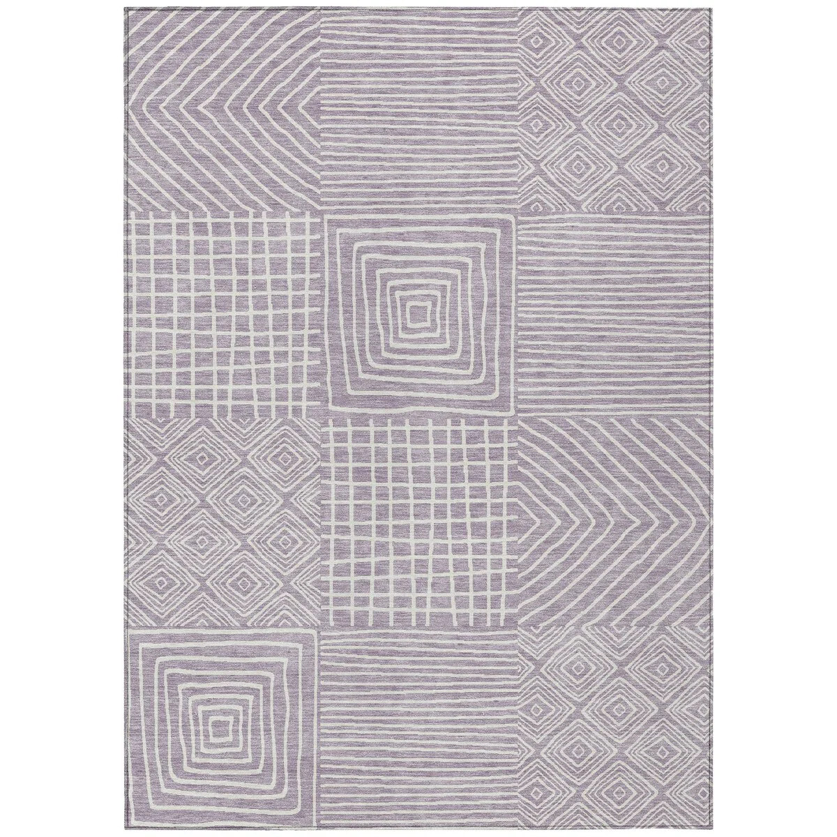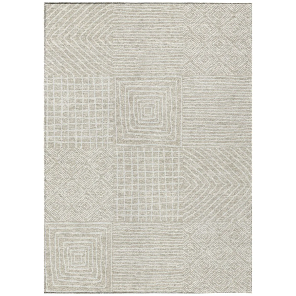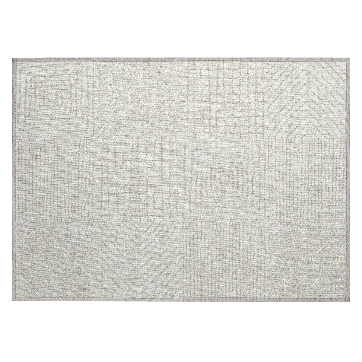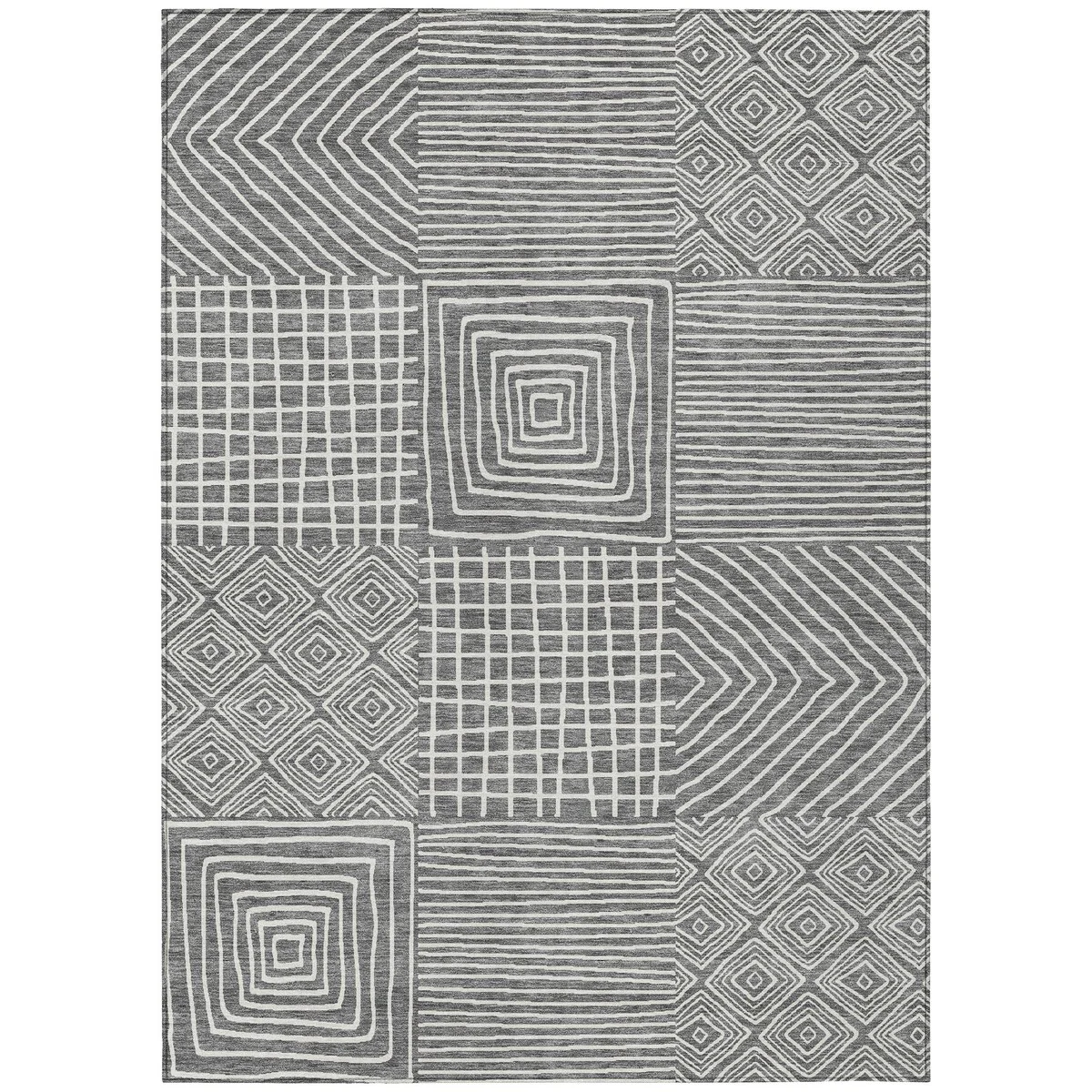 Delight in the geometric diversity of our transitional area rug, where each square features a distinct motif, blending harmoniously into a stylish whole. This rug is designed to be a functional centerpiece in any setting, with UV stabilization for environmental versatility, ultra-thin construction for underfoot comfort, machine-washable fabric for no-hassle cleaning, and a robust build thats both family and pet friendly. All rugs exposed to long periods of intense and direct sunlight can experience loss of color over time. Our rugs perform best in covered outdoor areas and uncovered areas with lower hours of direct sunlight. The ultra thin profile allows for fast drying after rainfall or outdoor cleaning. Larger rug sizes may not fit into a residential washing machine. They may be washed in a commercial size washing machine or hosed-off outside with mild soap and water. Air-dry, do not machine dry. While each rug already has a non-skid backing, the necessity for additional cushion or room settings with high traction areas, may require an additional rug pad.