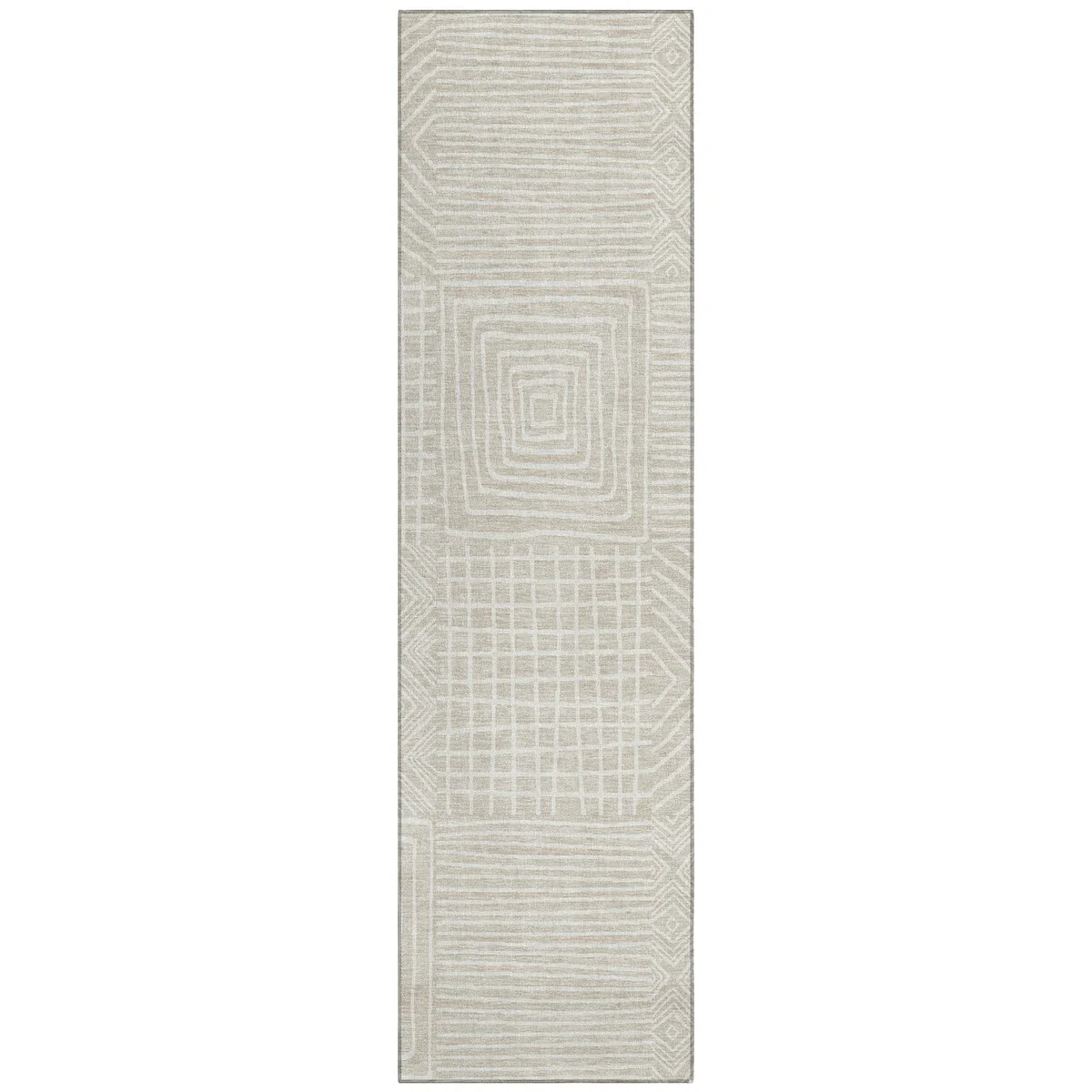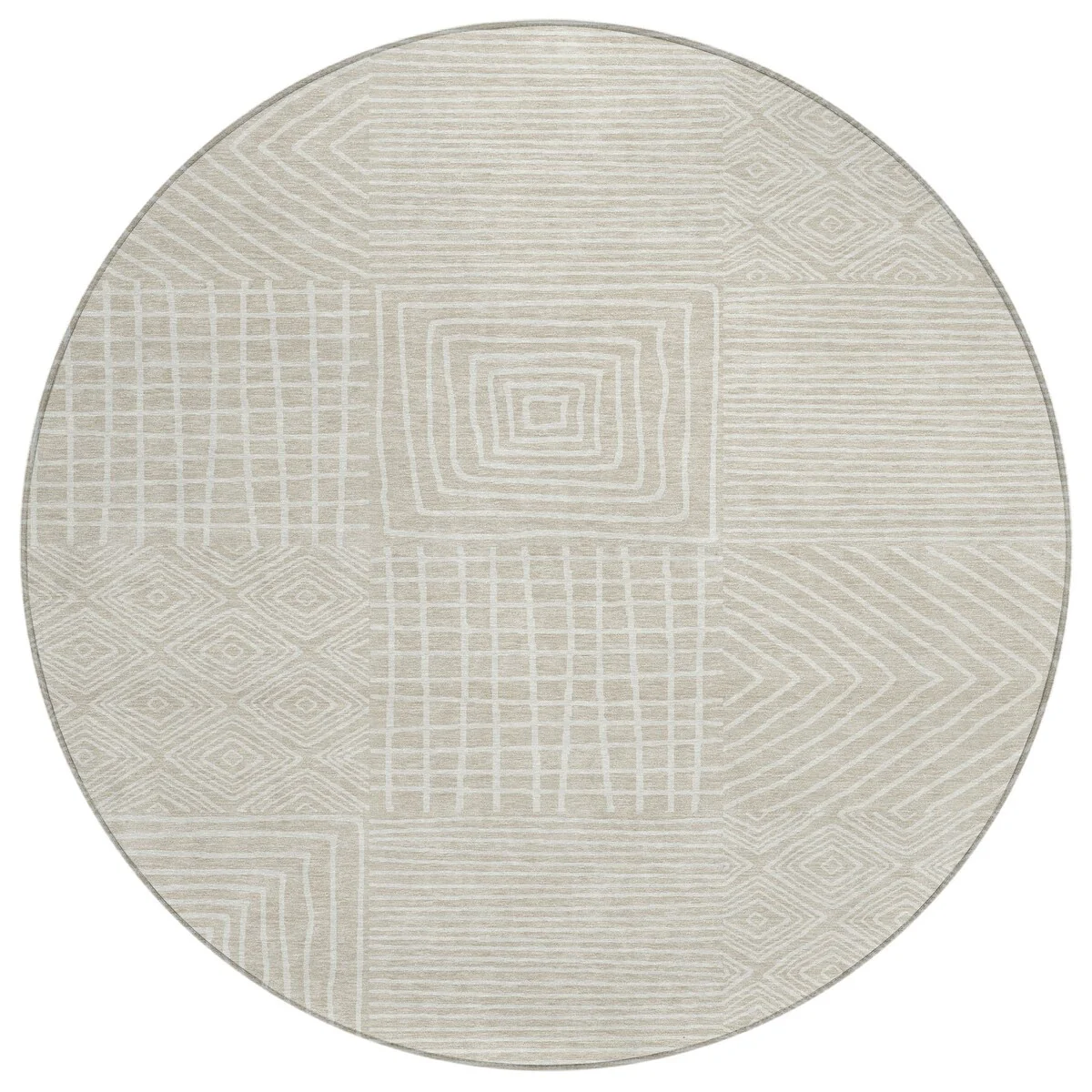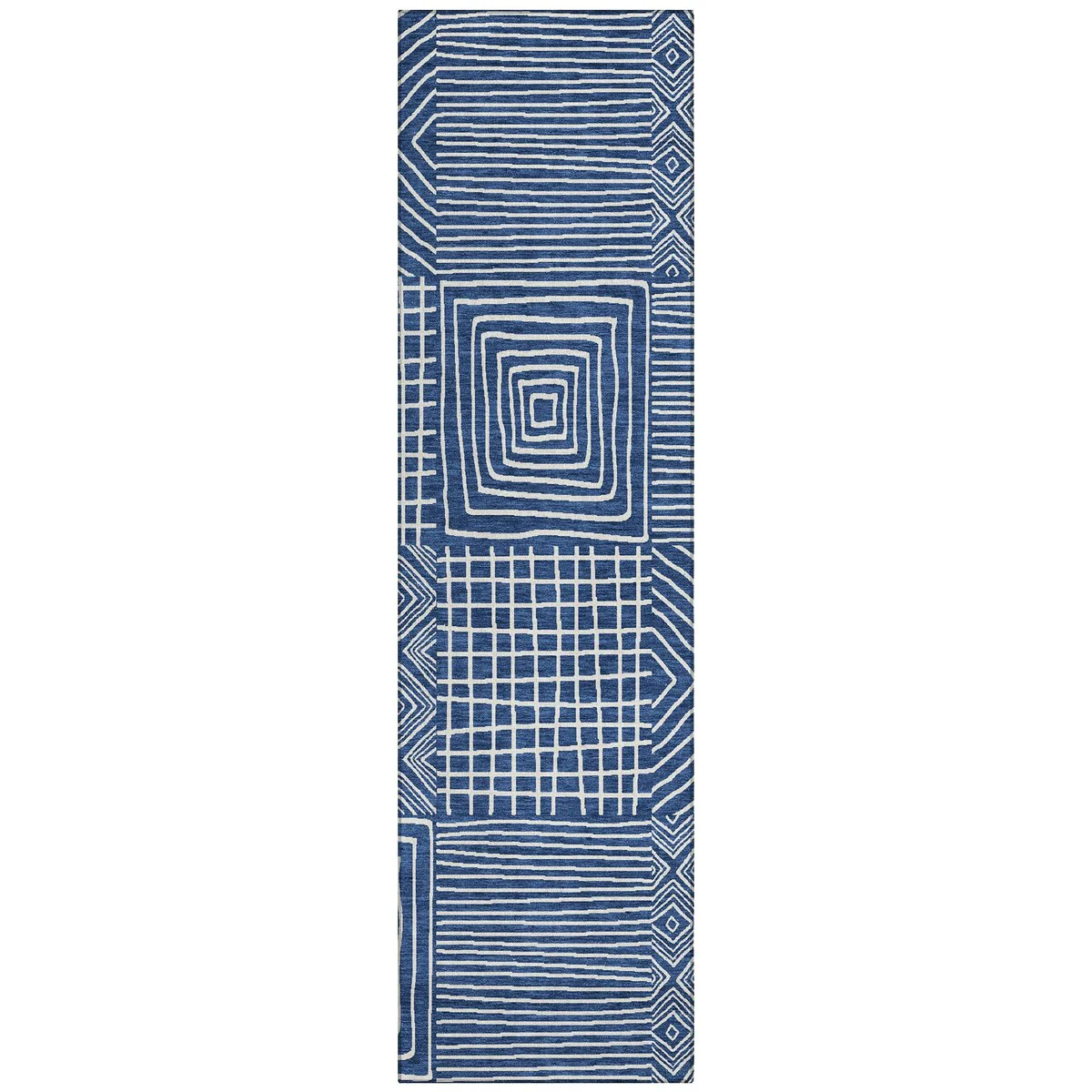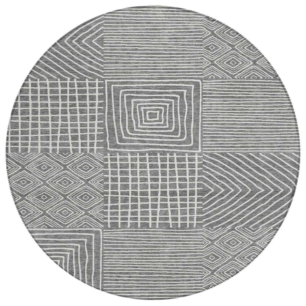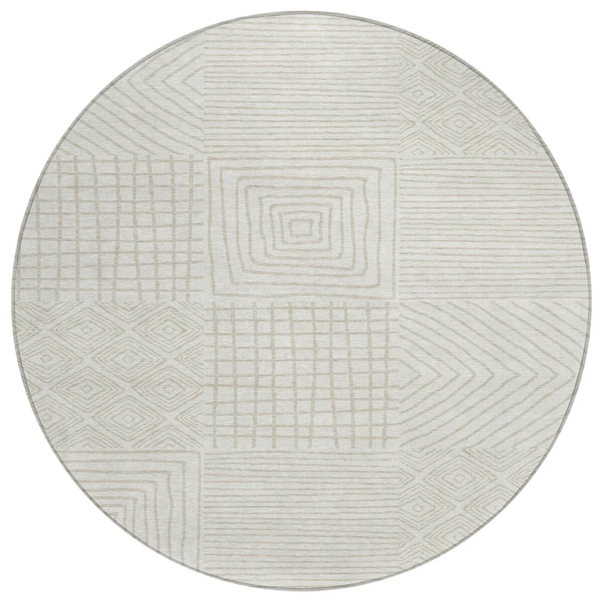 Delight in the geometric diversity of our transitional area rug, where each square features a distinct motif, blending harmoniously into a stylish whole. This rug is designed to be a functional centerpiece in any setting, with UV stabilization for environmental versatility, ultra-thin construction for underfoot comfort, machine-washable fabric for no-hassle cleaning, and a robust build thats both family and pet friendly. All rugs exposed to long periods of intense and direct sunlight can experience loss of color over time. Our rugs perform best in covered outdoor areas and uncovered areas with lower hours of direct sunlight. The ultra thin profile allows for fast drying after rainfall or outdoor cleaning. Larger rug sizes may not fit into a residential washing machine. They may be washed in a commercial size washing machine or hosed-off outside with mild soap and water. Air-dry, do not machine dry. While each rug already has a non-skid backing, the necessity for additional cushion or room settings with high traction areas, may require an additional rug pad.