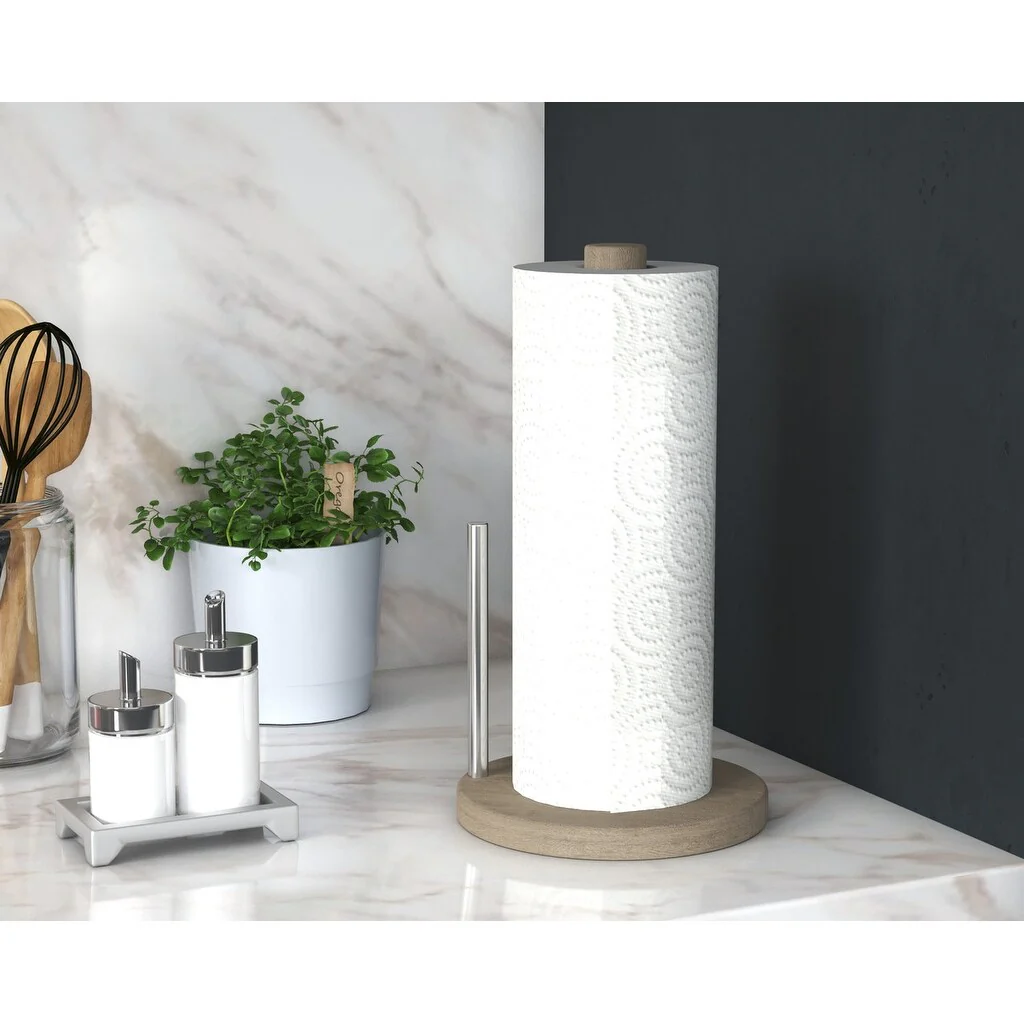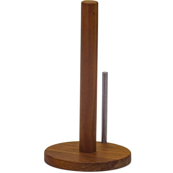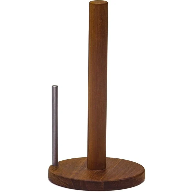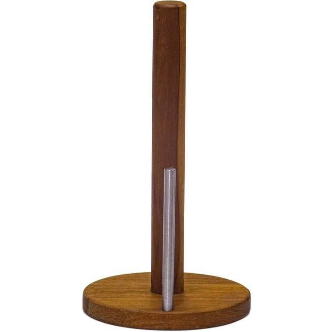 Indulge in a paper towel holder crafted from teak that is water-wicking and resists mold! The natural medium-dark color goes with most kitchen aesthetics and is universal in the paper towels it holds.