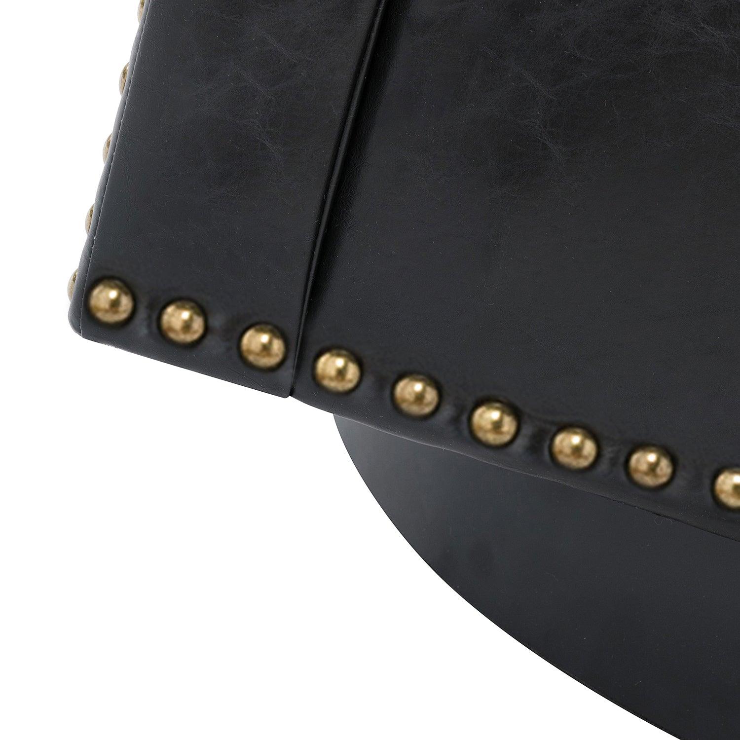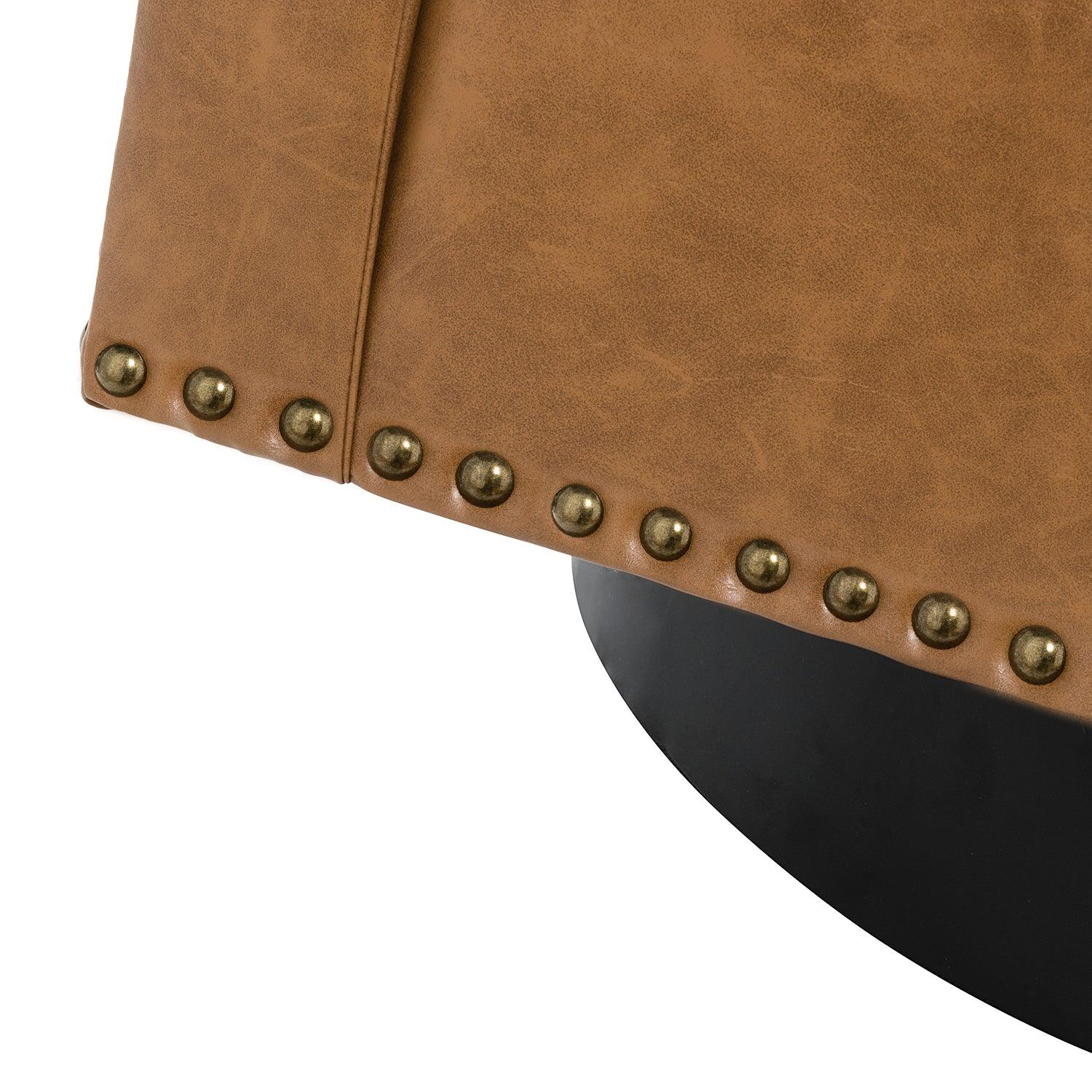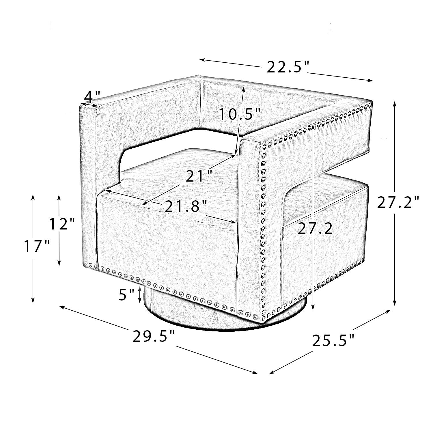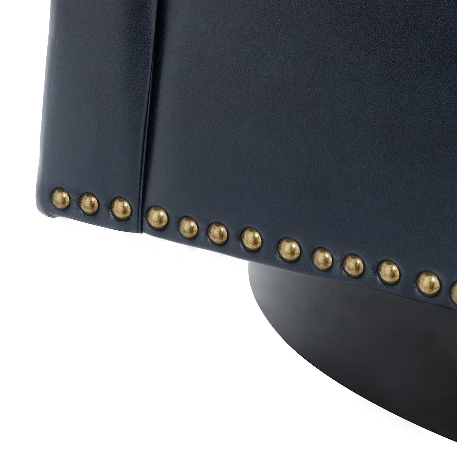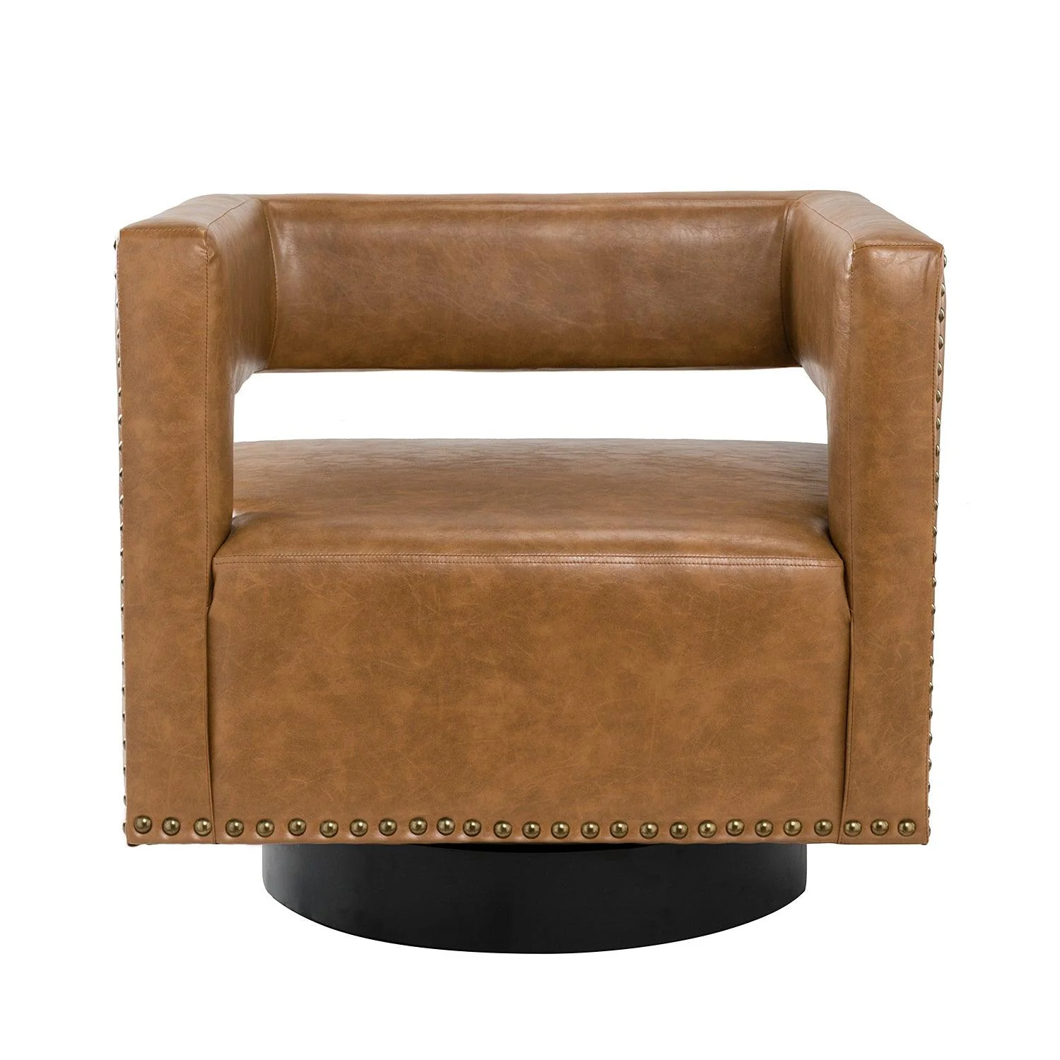 Whether you need a spot to curl up with a good book or somewhere to lay out clothes for the next day, this attractive barrel chair is a versatile addition to your space. A curvaceous cut-out back wraps around the sides to act as square arms. Made from a blend of polyurethane and polyvinyl chloride with nailhead trim, comfortable for skin touch, and features an on-trend solid hue that's bound to blend in with your color scheme. High-quality foam filling with a manufactured wood frame provides comfort and support. The black metal base adds to the timeless fashion of this piece. Even better, it's a swivel base so you can turn to others or in the direction of your TV with ease. It's the perfect pick for the living room, office room, and bedroom.