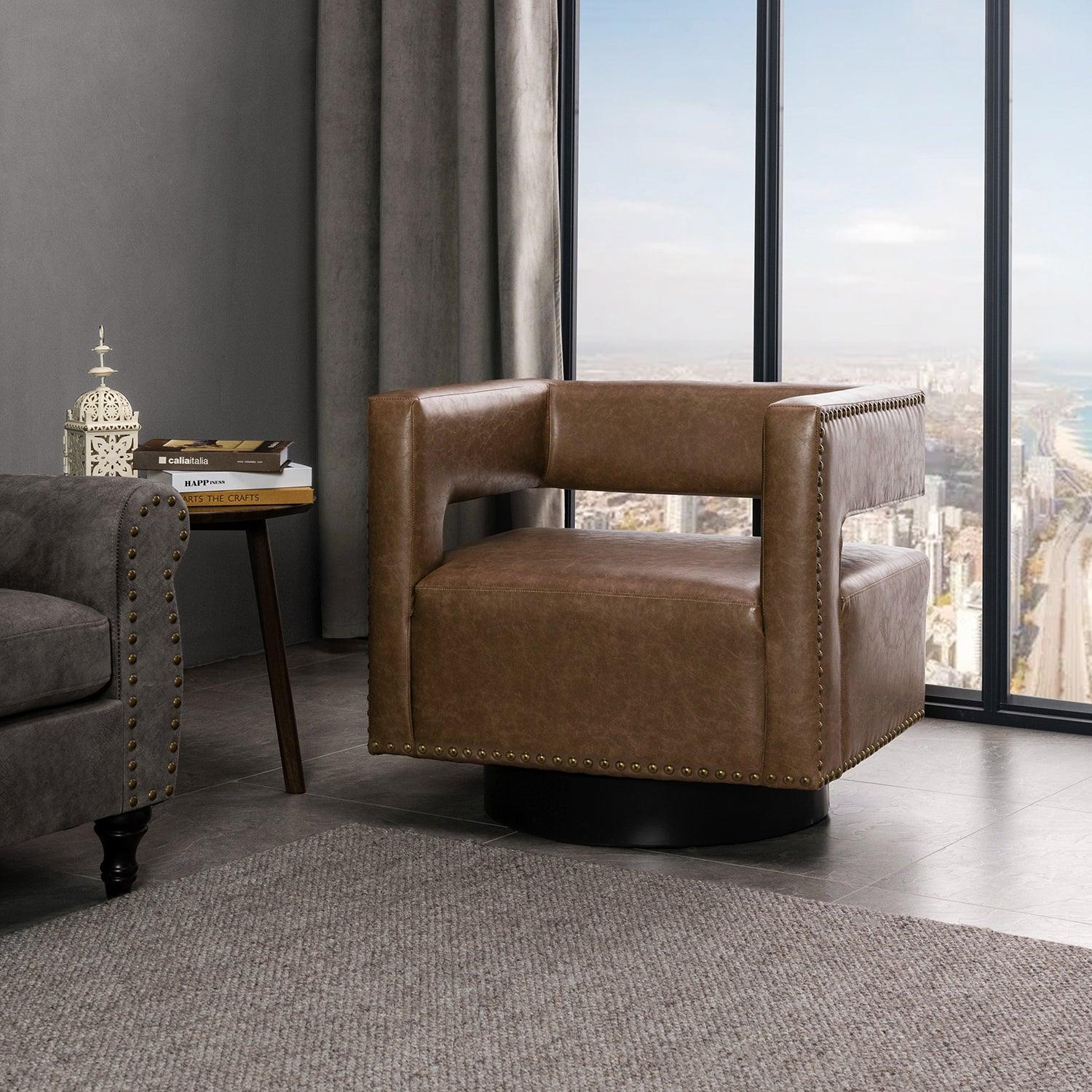 Martaci Vegan Leather Swivel Barrel Armchair
