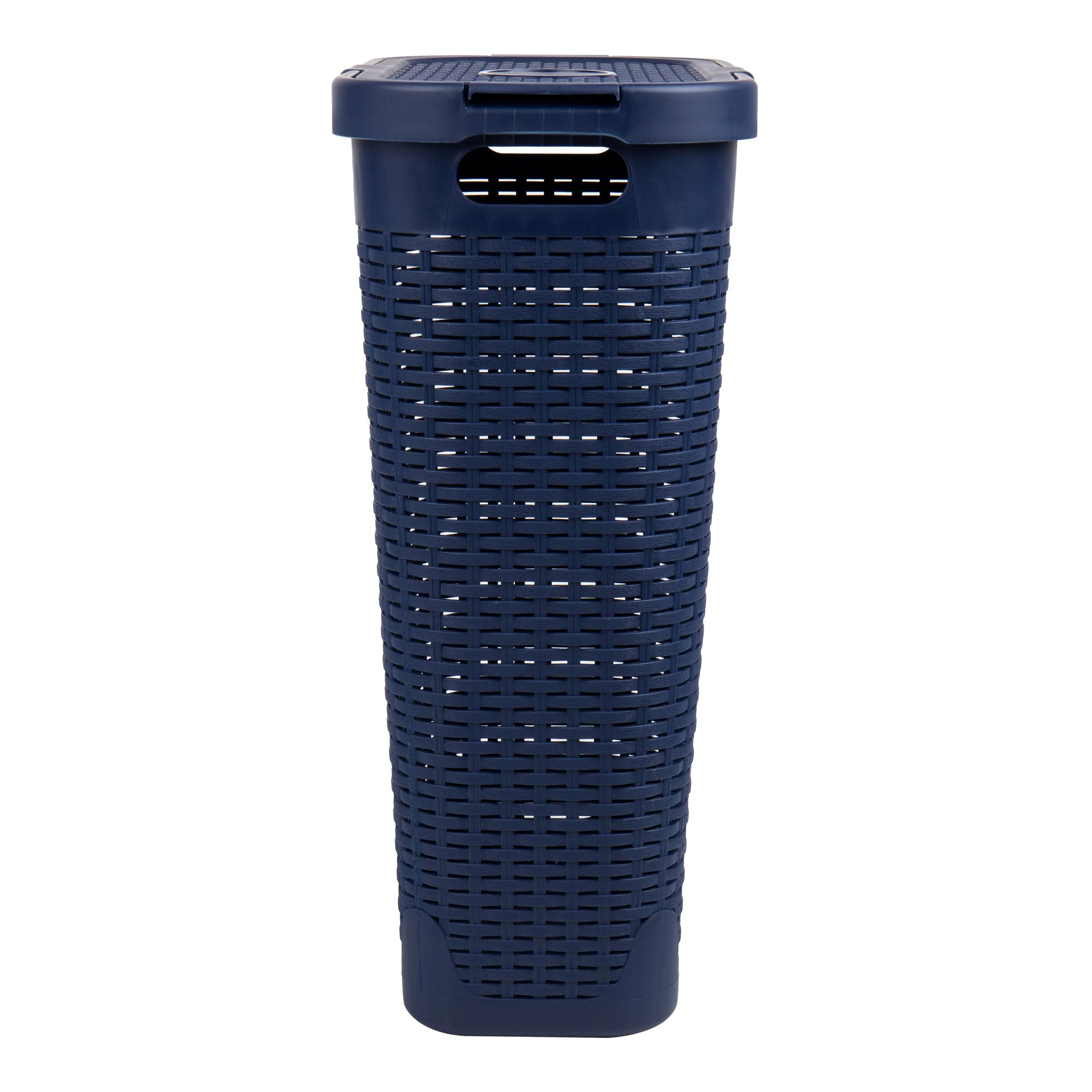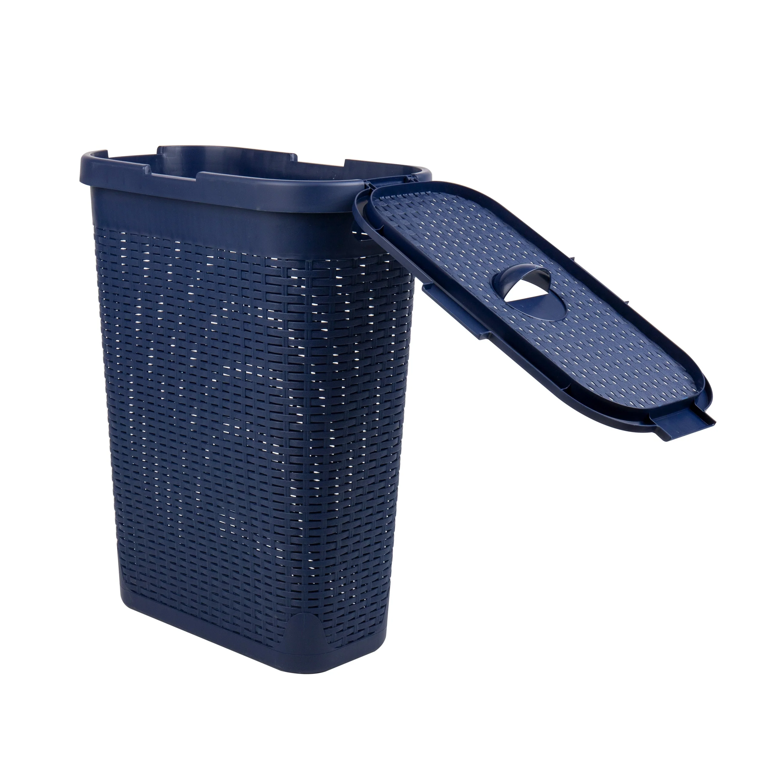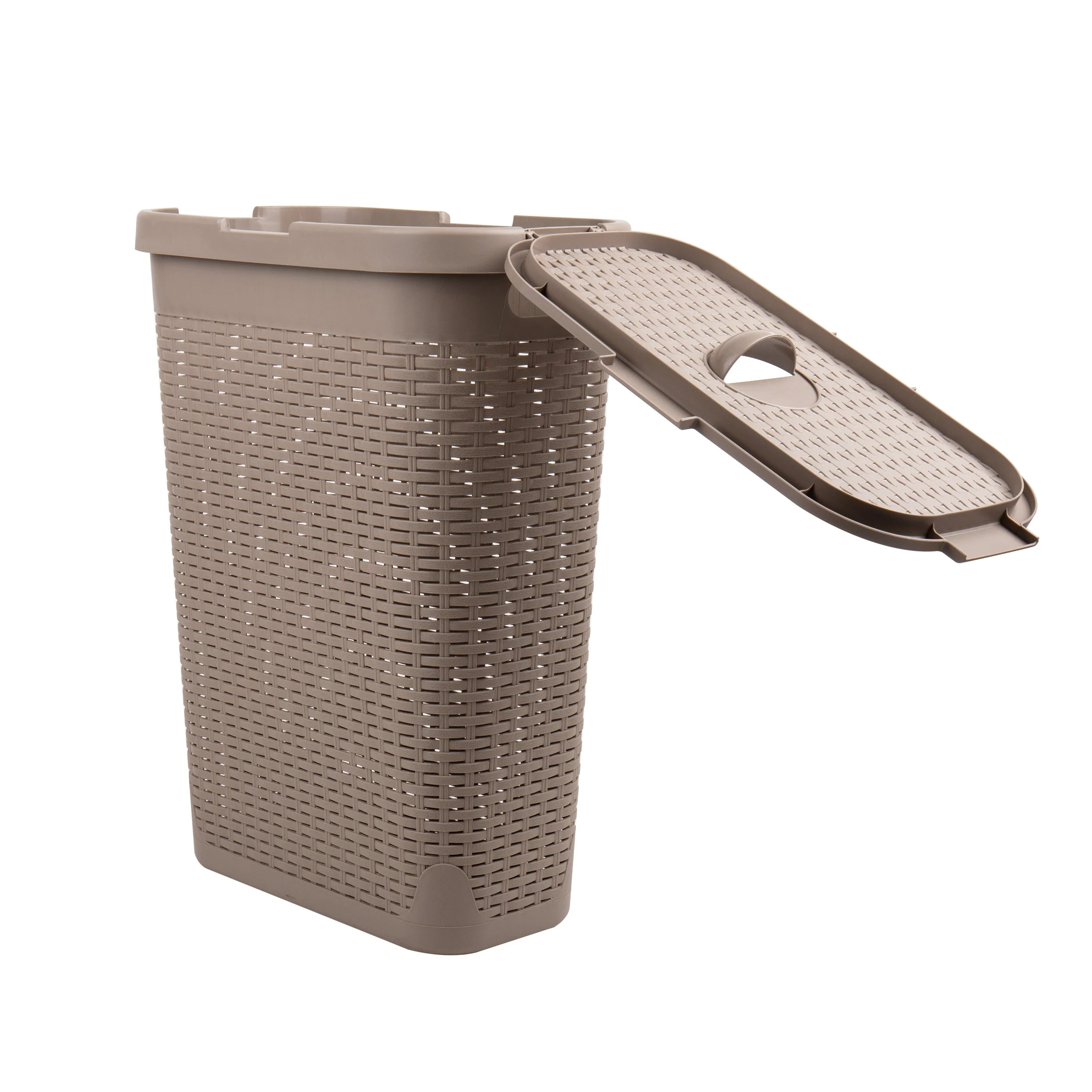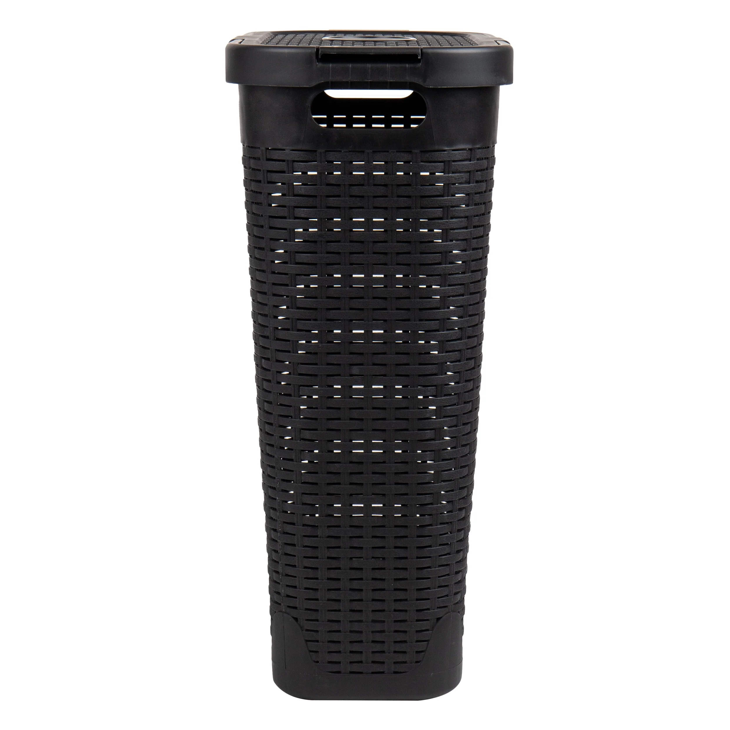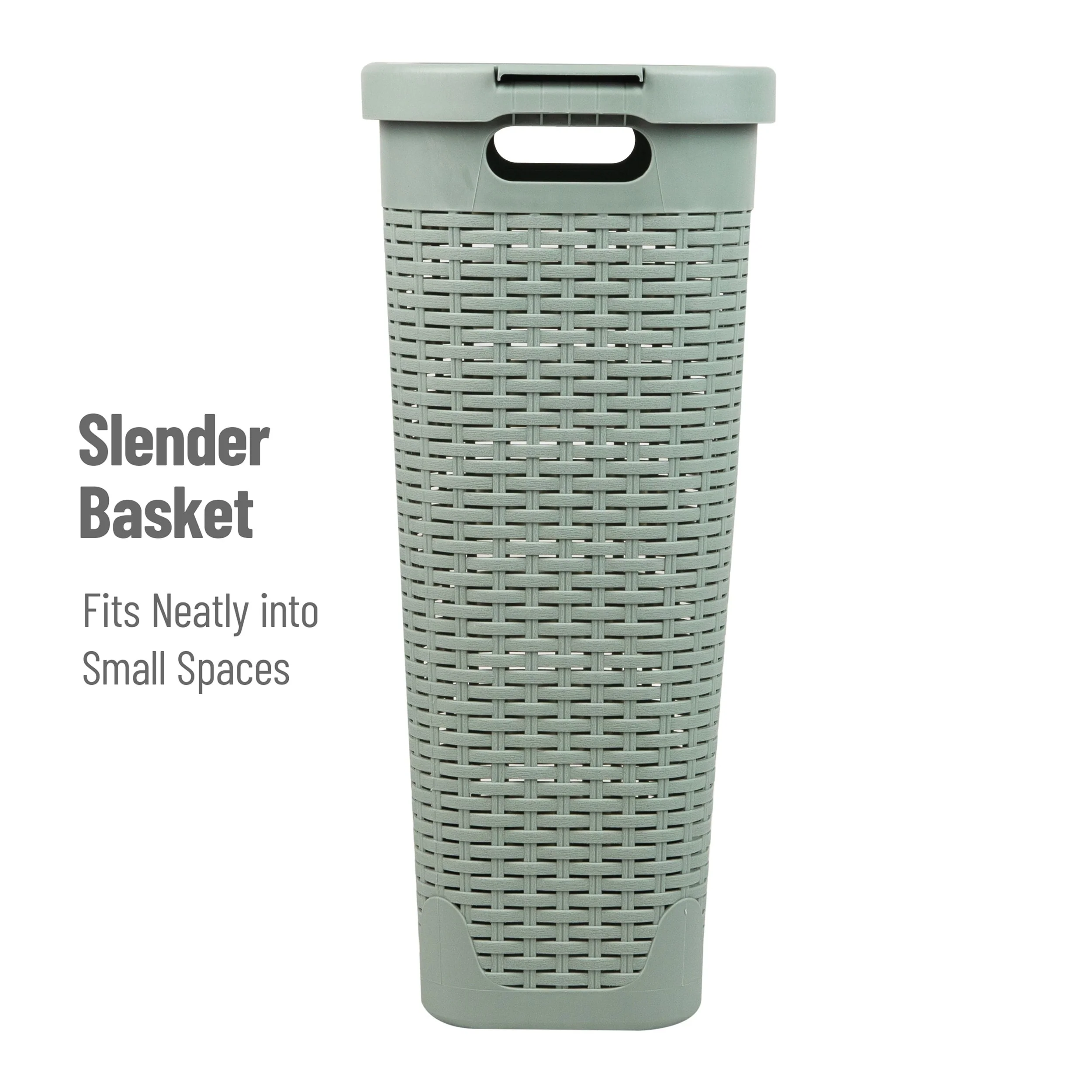 • Mind Reader 40L Slim Laundry Hamper, Clothes Basket, Lid, Wicker Design, Plastic, 18"L x 10.4"W x 23.5"H