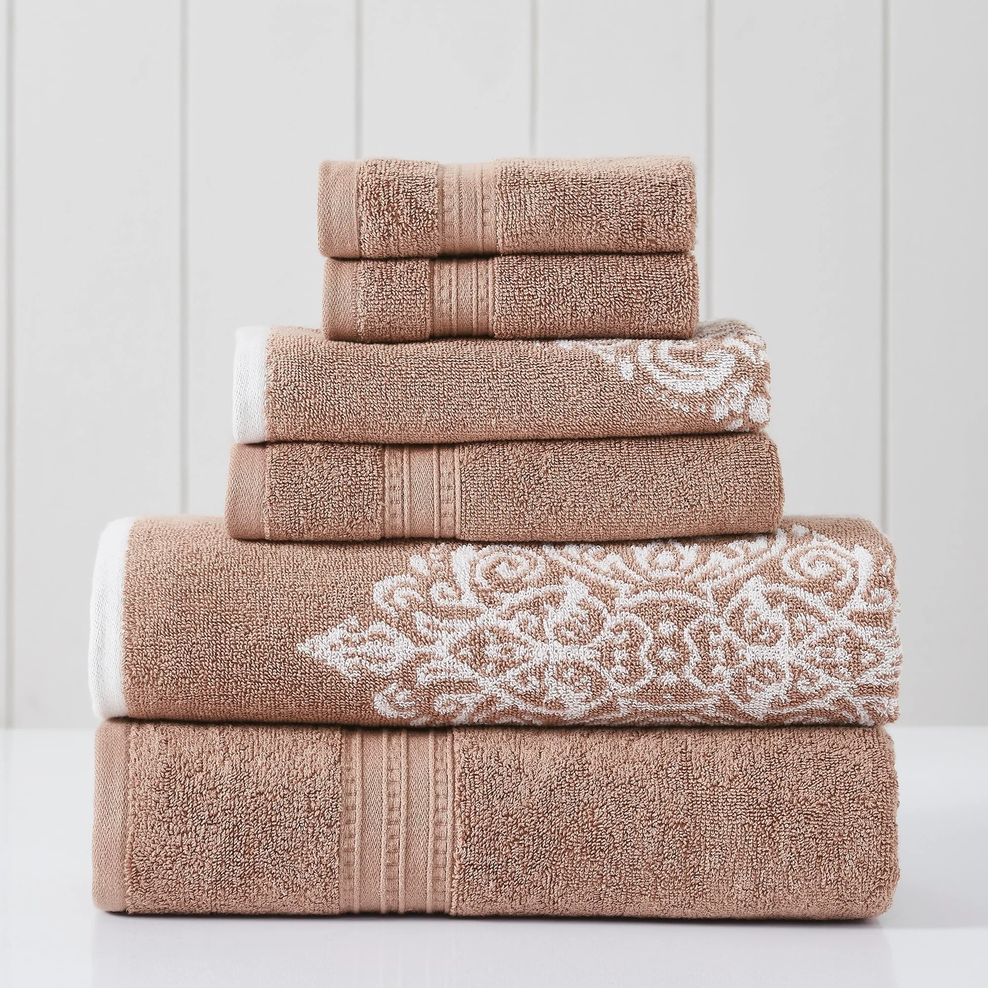 Upgrade your bathroom experience with this luxurious Modern Threads Artesia Damask 6 Piece Yarn Dyed Jacquard Towel Set. Made of 100% combed cotton, these towels are ultra-soft and become even softer with each wash. The zero-twist weave quickly absorbs water, while the stylish geometric jacquard design adds a touch of elegance to your decor.
