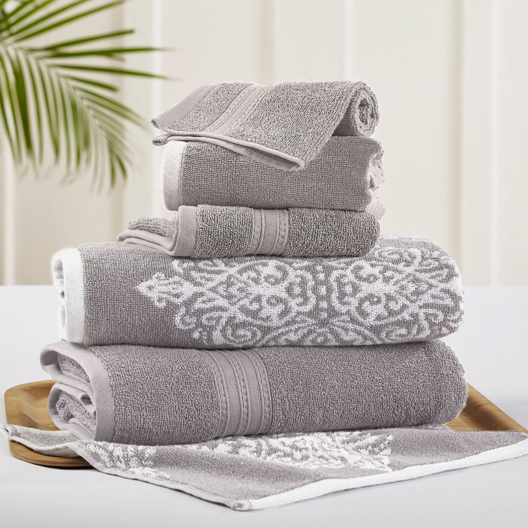 - Set Includes: (2) Bath towel, (2) Hand towel, (2) Washcloth