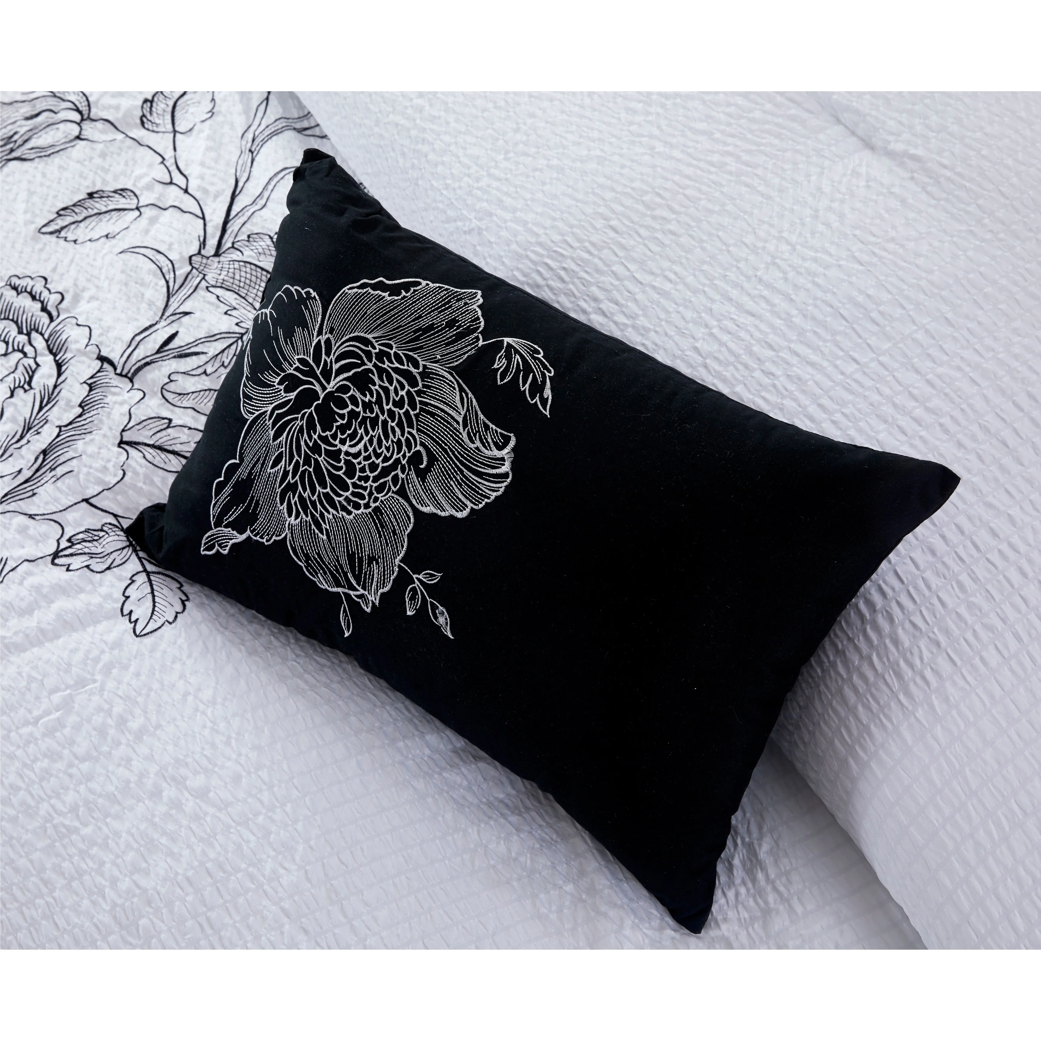 Transform your bedroom into a sanctuary of comfort and elegance with the Simone Embroidered 8 Piece Comforter Set. The silky brushed microfiber material is crafted using advanced techniques, resulting in a durable and luxuriously soft bedding set. The comforter's polyester filling provides just the right fluffiness, while the bar tacking details add a touch of formality to this exquisite set. With its stylish seersucker embroidery and reversible design, this set is the perfect solution to your decorative and comfort needs.