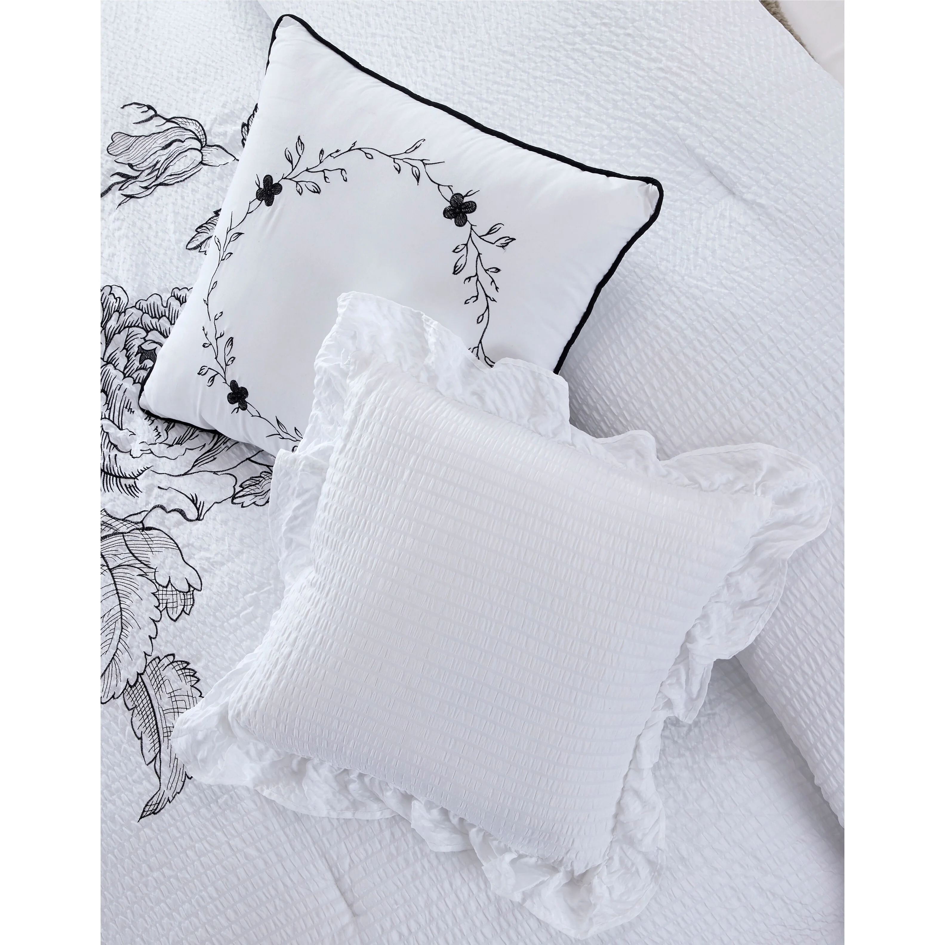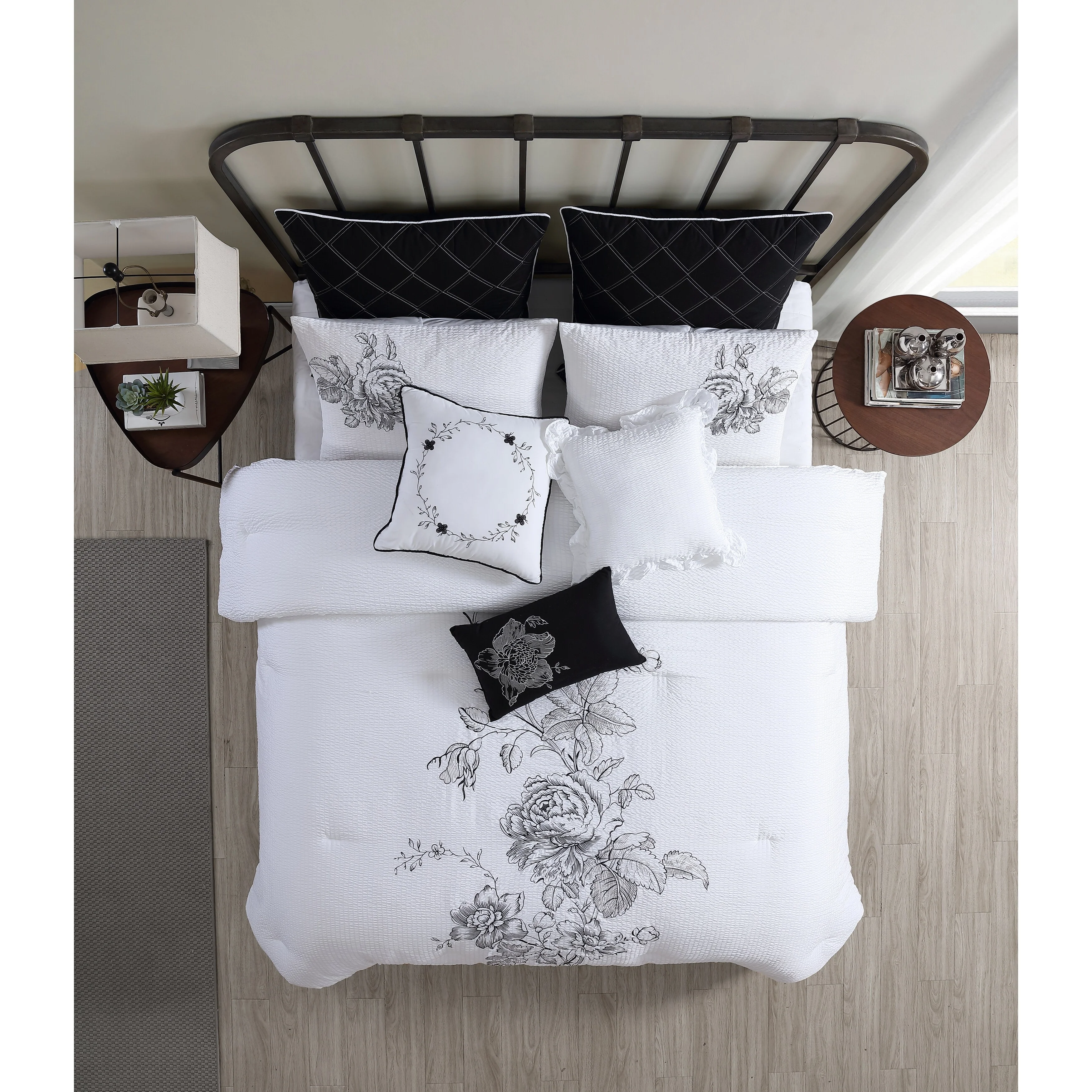 • Set includes: 1 Comforter, 2 Shams, 2 Euro Shams, 3 Decorative Pillows