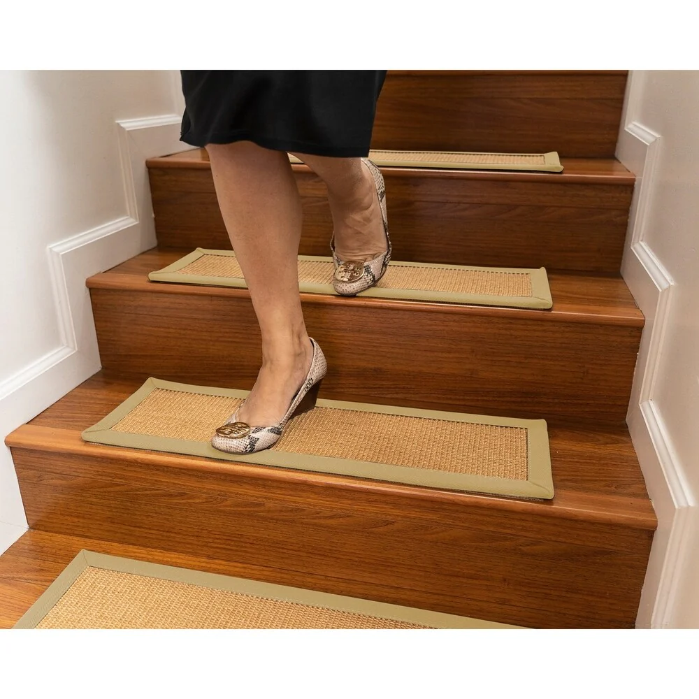 Natural Area Rugs 100% Natural Fiber Catalina, Sisal Gold/Multi, Handmade Custom Stair Treads Carpet Set Of 4 Sand Border