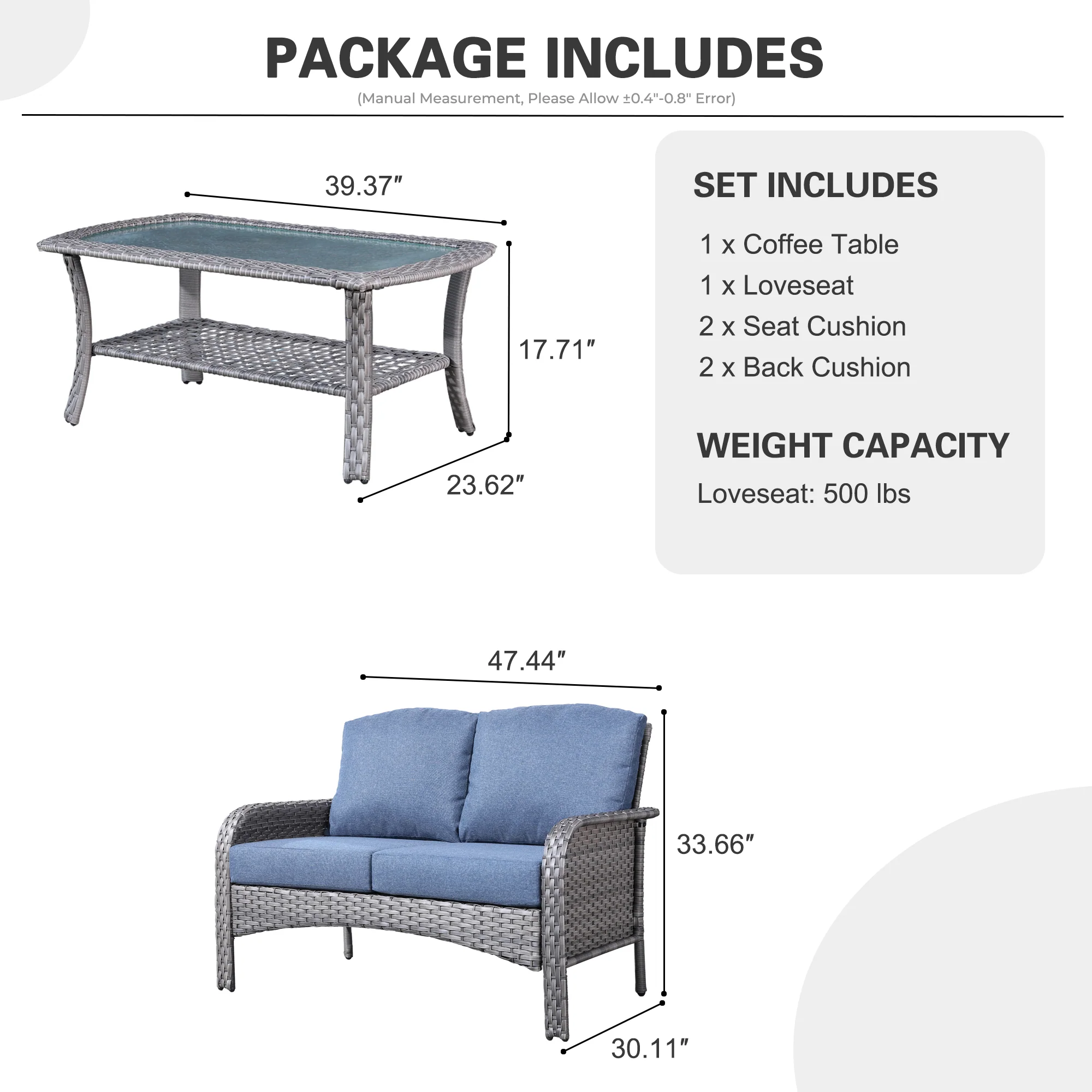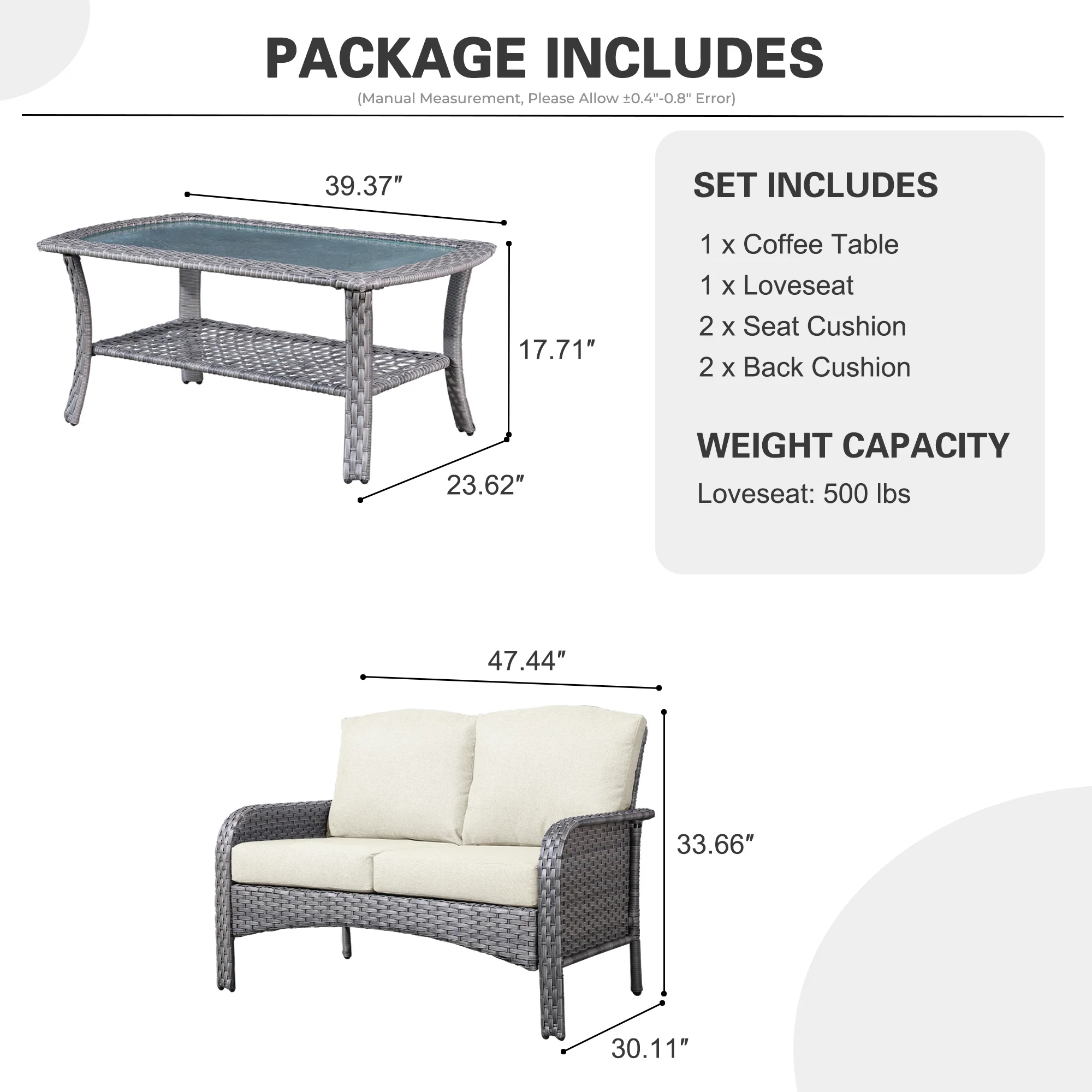 | Loveseat | 33.68"H x 47.46"W x 30.13"D |